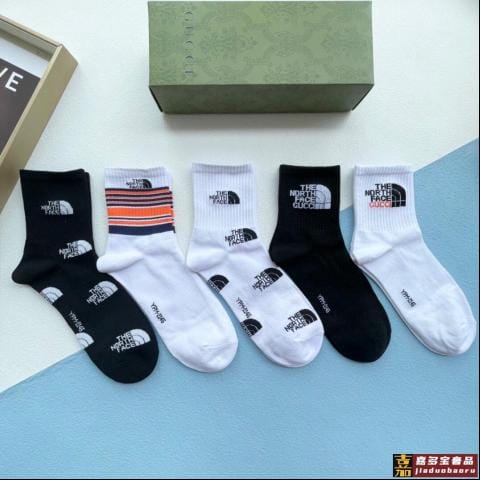 配包装一盒五双北面古奇联名经典中筒袜子袜身提花经典品牌全称标
