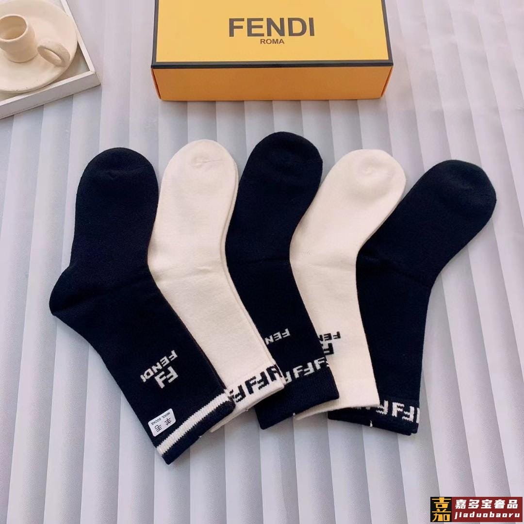 配包装一盒双芬迪字母双爆款中筒袜纯棉面料专柜同款纯棉面料实用