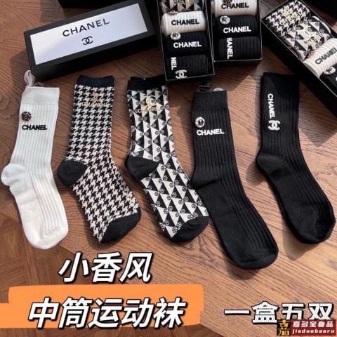 配包装一盒五双香奈儿火爆全网小香中筒袜小香风中古风永恒的经典