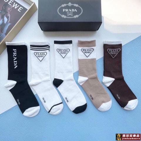 配包装一盒五双普拉达爆款高筒袜高版本好看到爆炸欧美大牌高筒袜