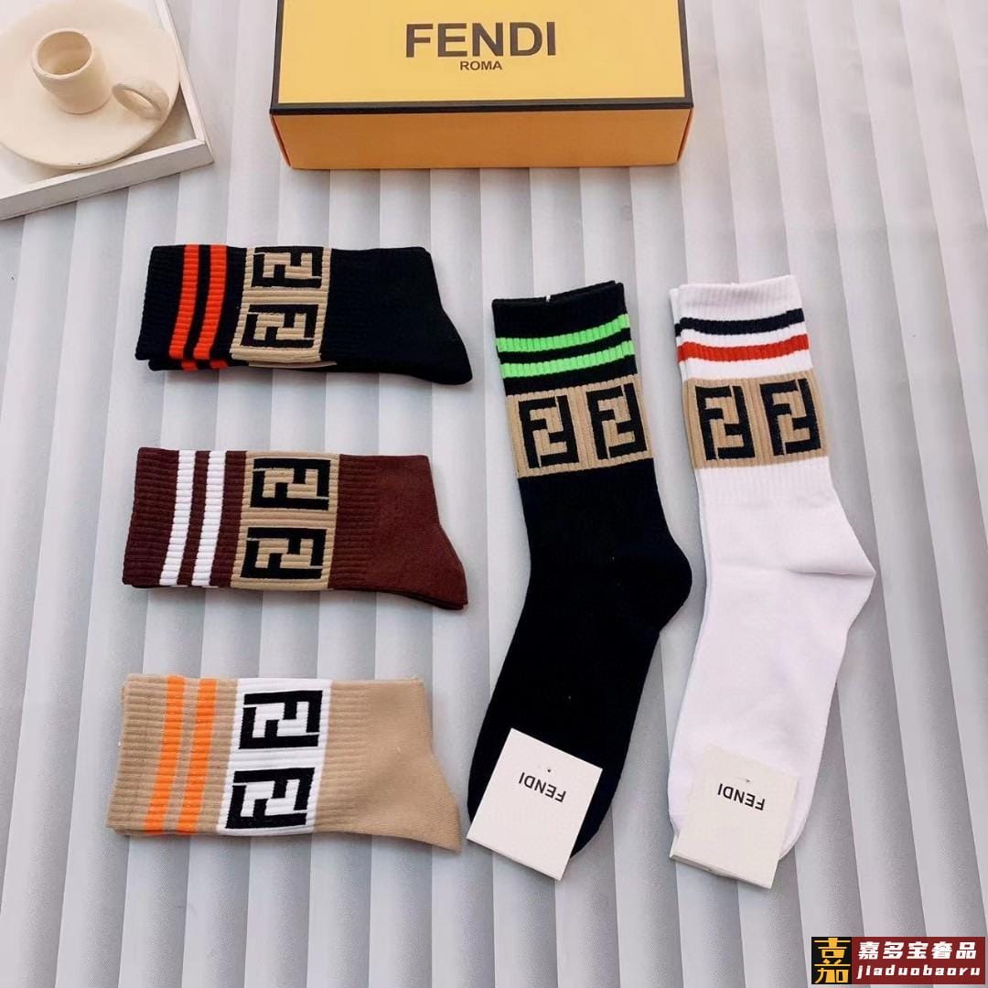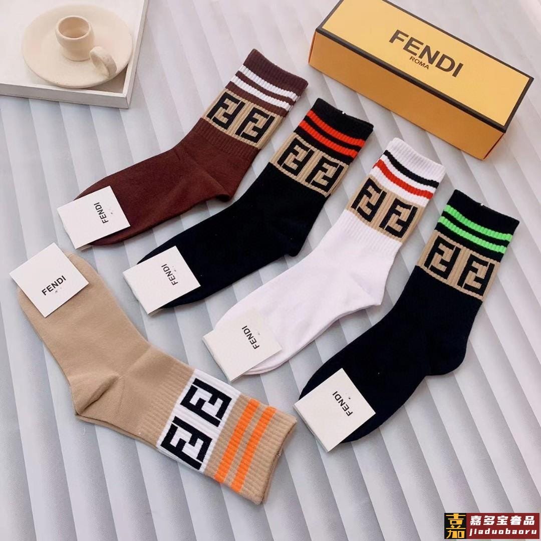 配包装一盒双芬迪字母双爆款中筒袜纯棉面料专柜同款纯棉面料实用
