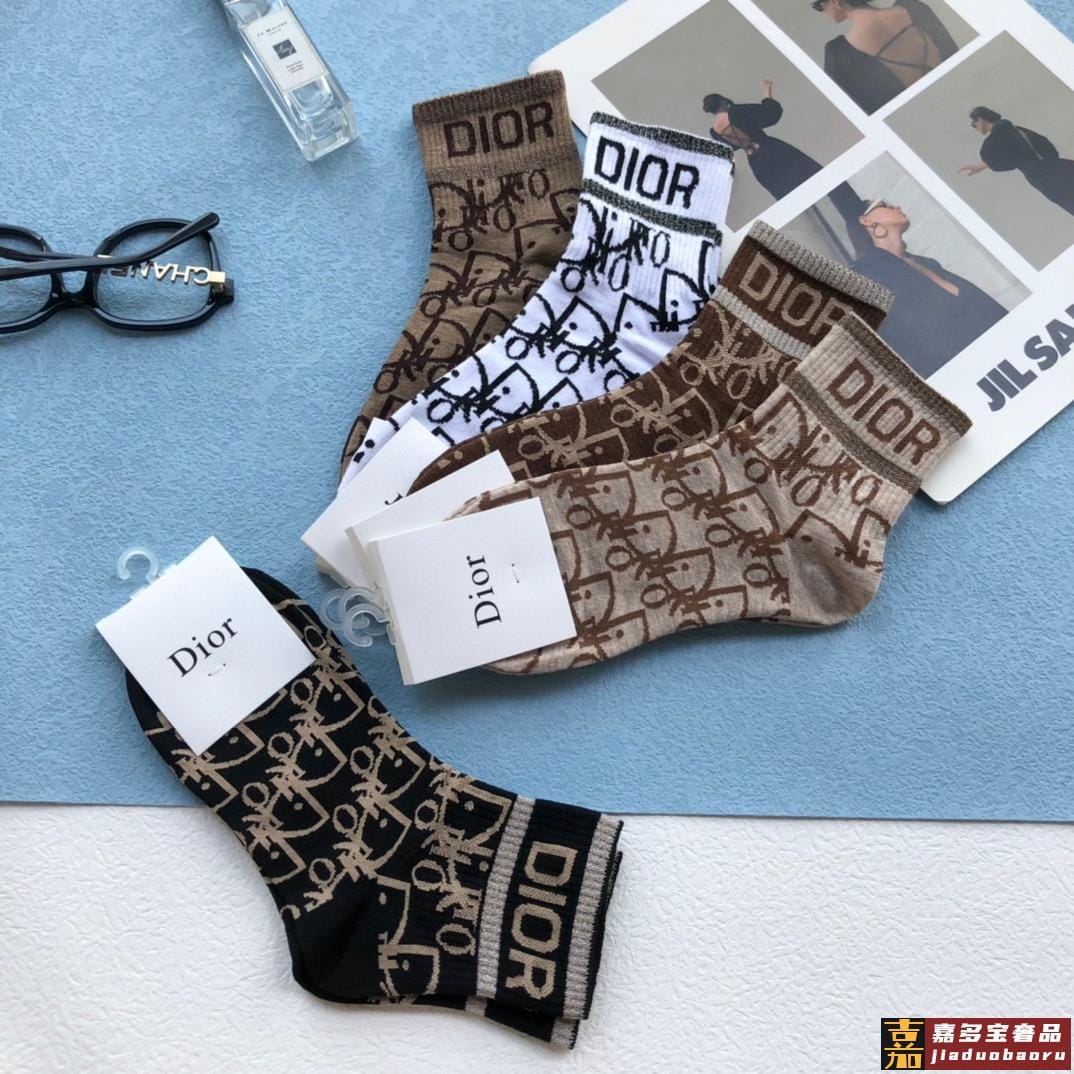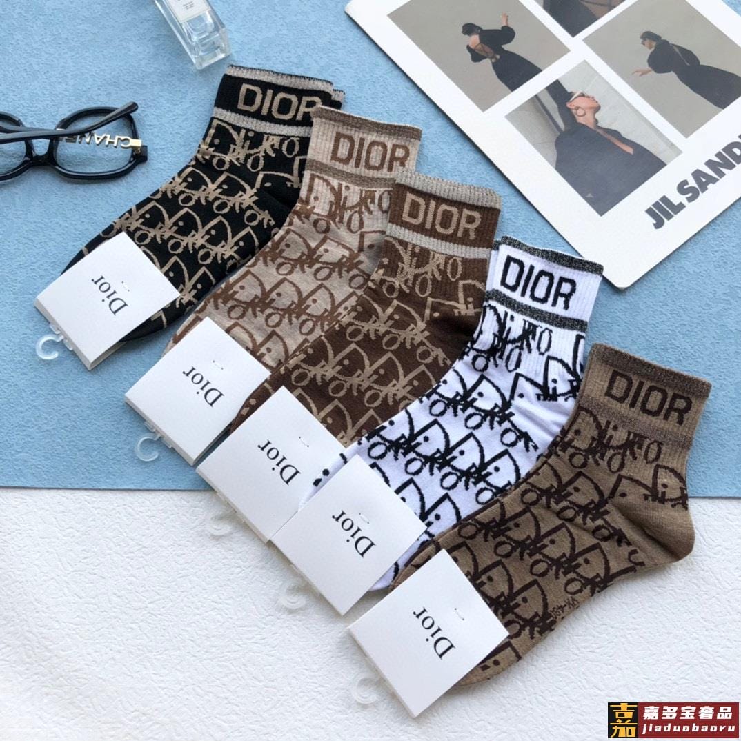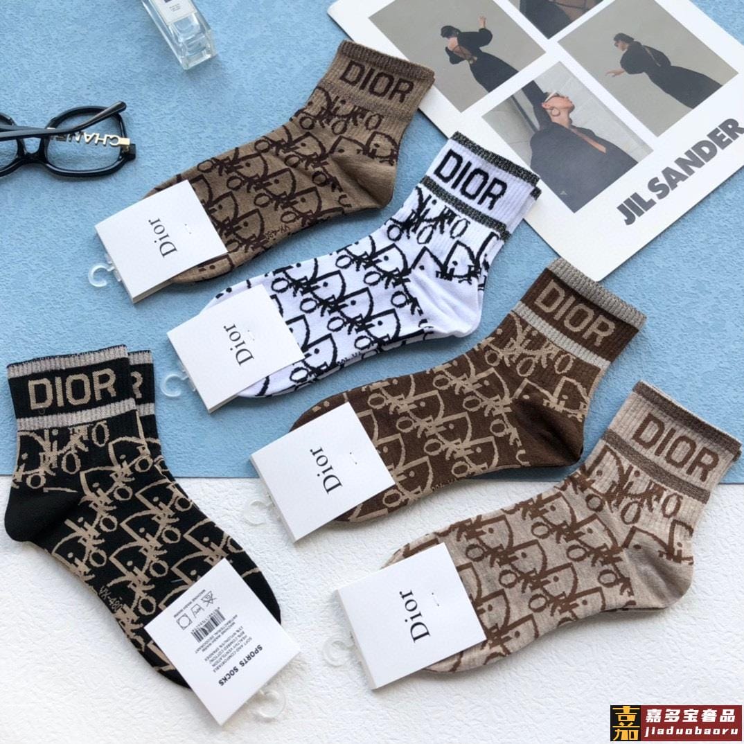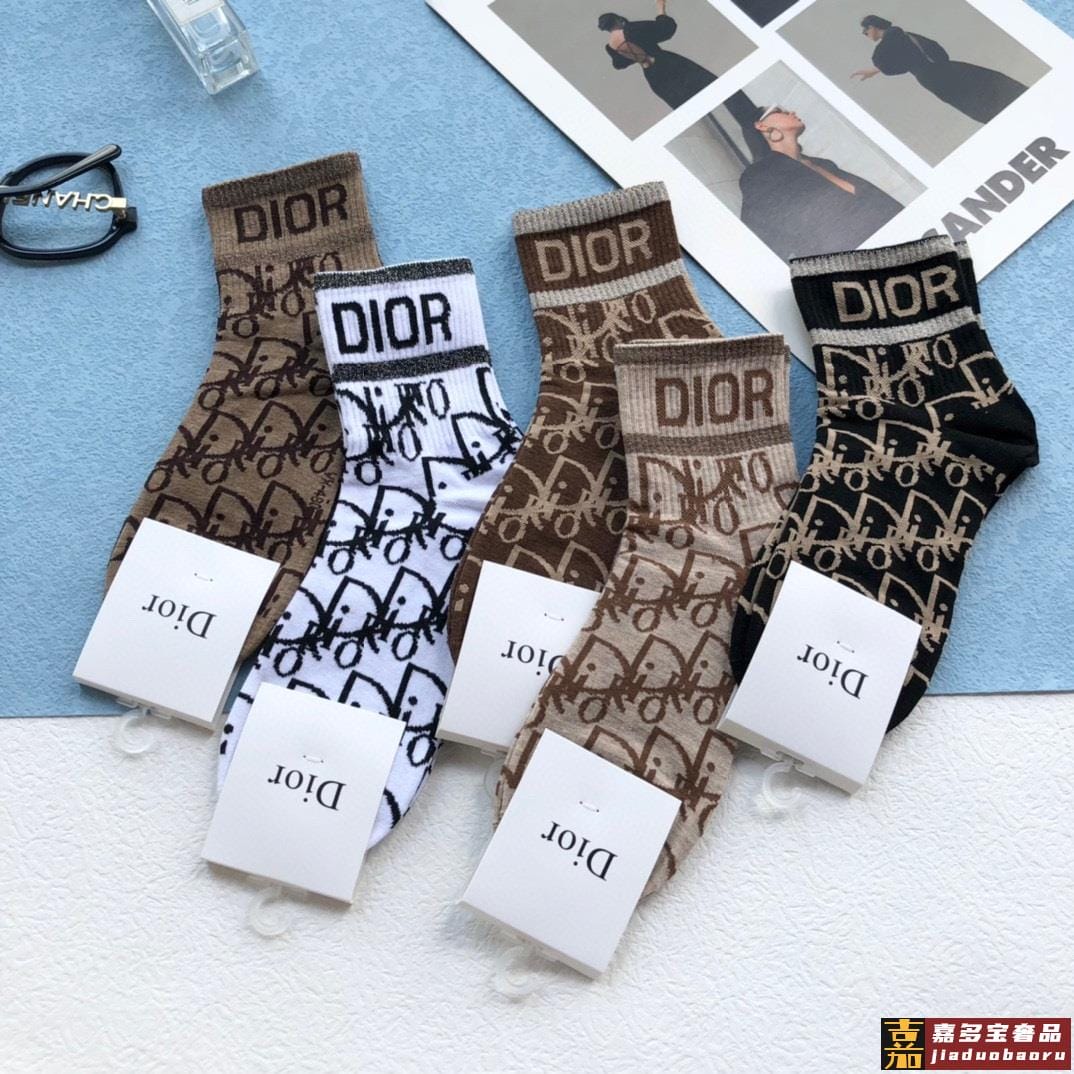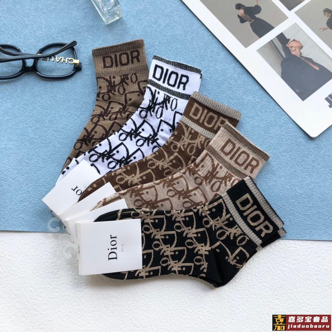 配包装一盒五双迪奥家新品中筒女款袜子专柜同步长袜超级经典的家