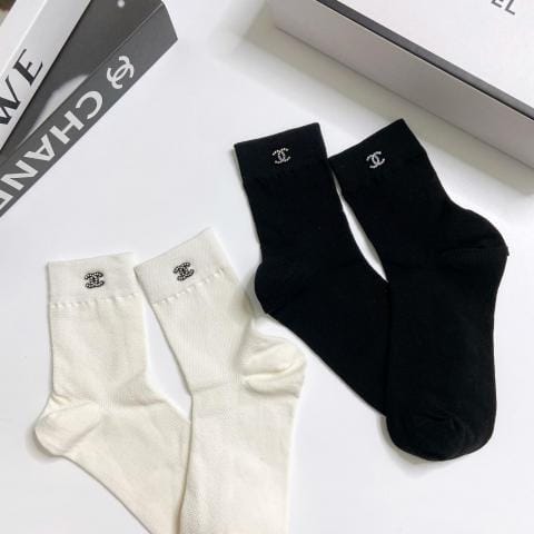 配包装一盒双香奈儿经典双字母透气网眼中筒袜重工装饰个性时尚爆