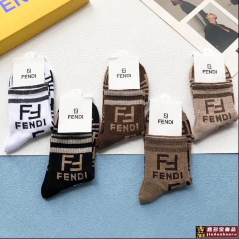 配包装一盒五双芬迪大新品男女款秋冬款中筒袜子超级经典的双标志