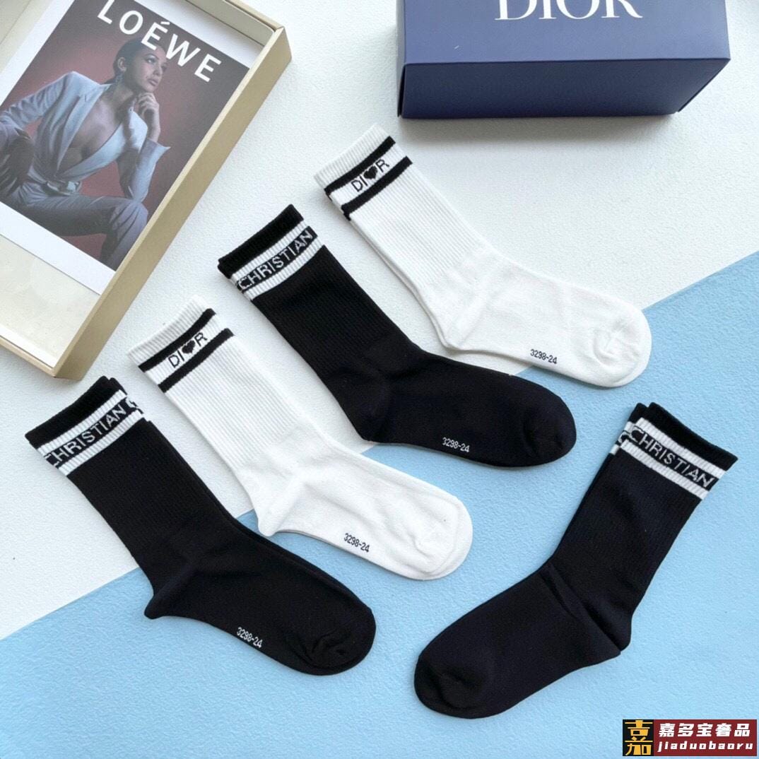 配包装一盒五双迪奥中筒堆堆袜袜子专柜同步筒袜袜子大牌出街潮人