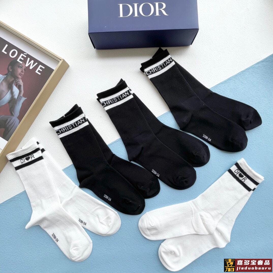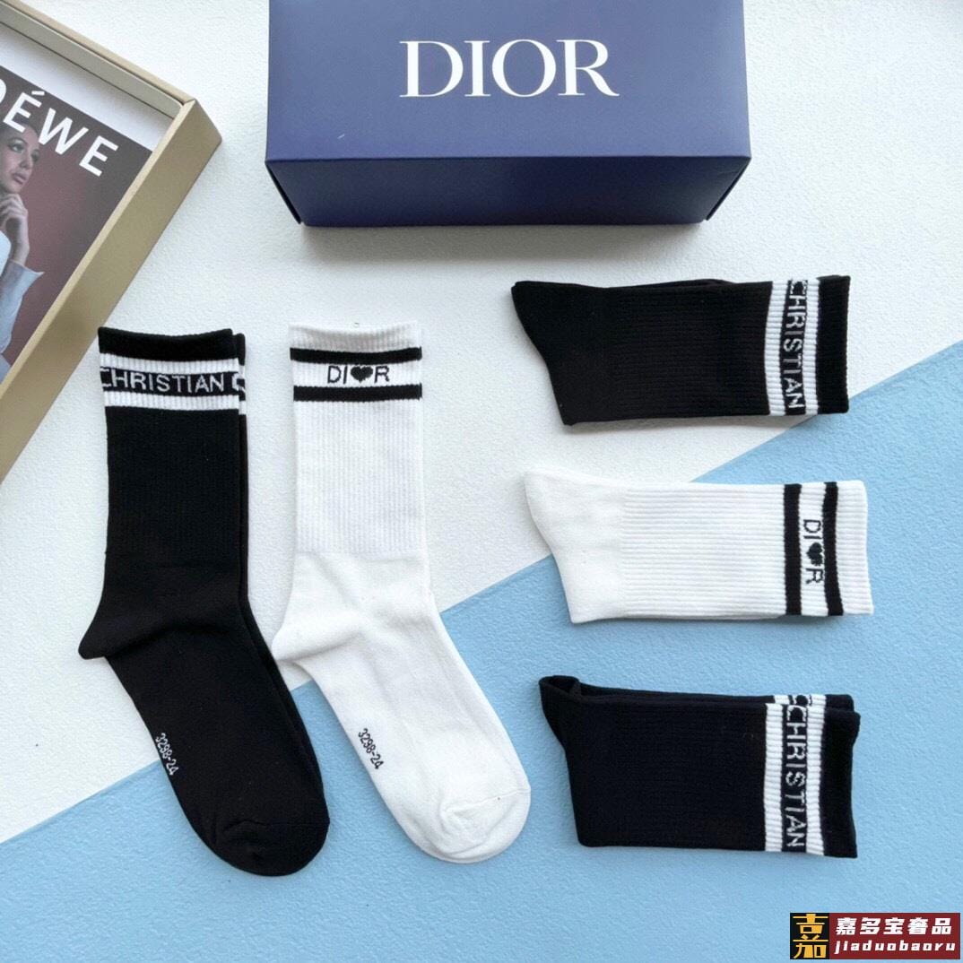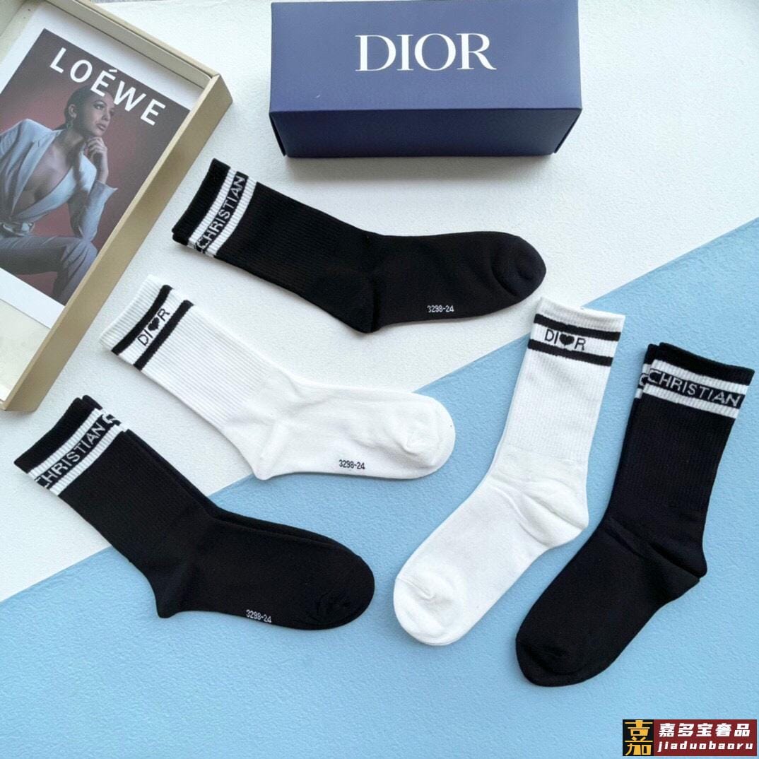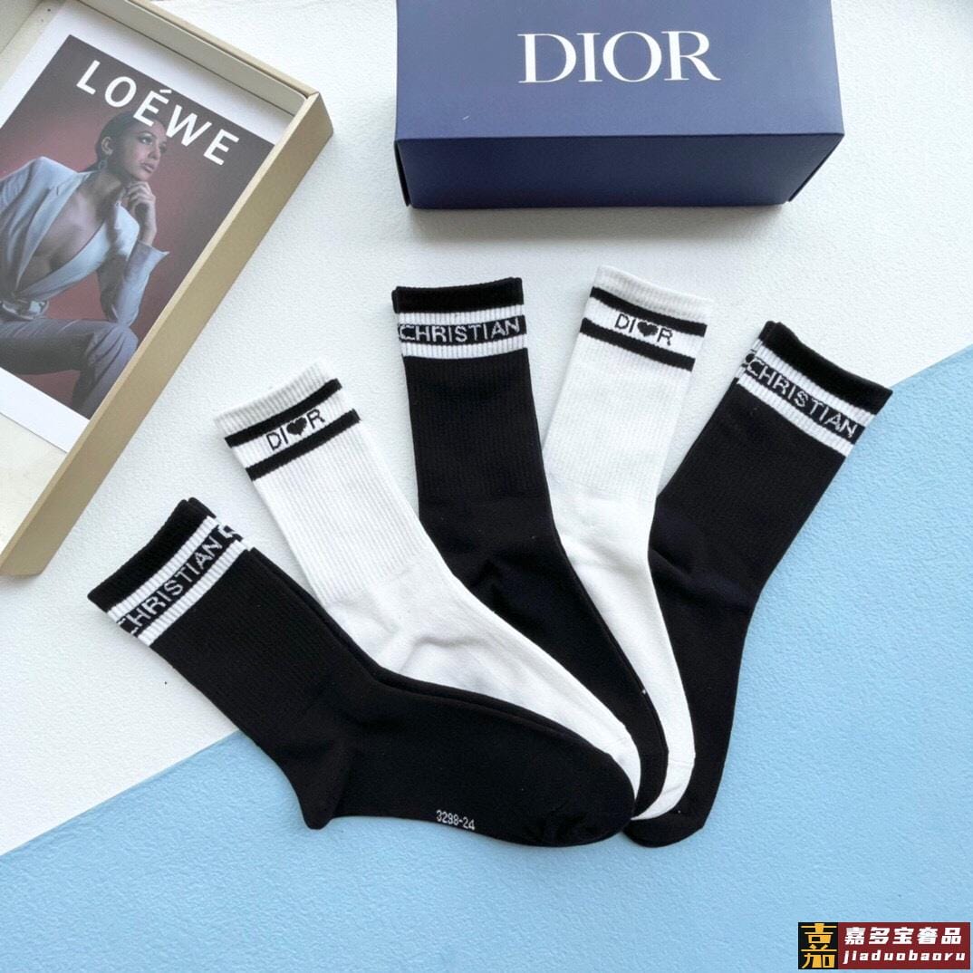 配包装一盒五双迪奥家新品中筒女款袜子专柜同步长袜超级经典的家