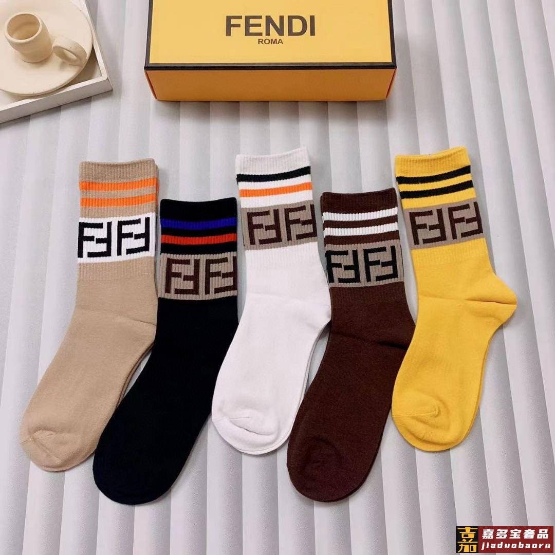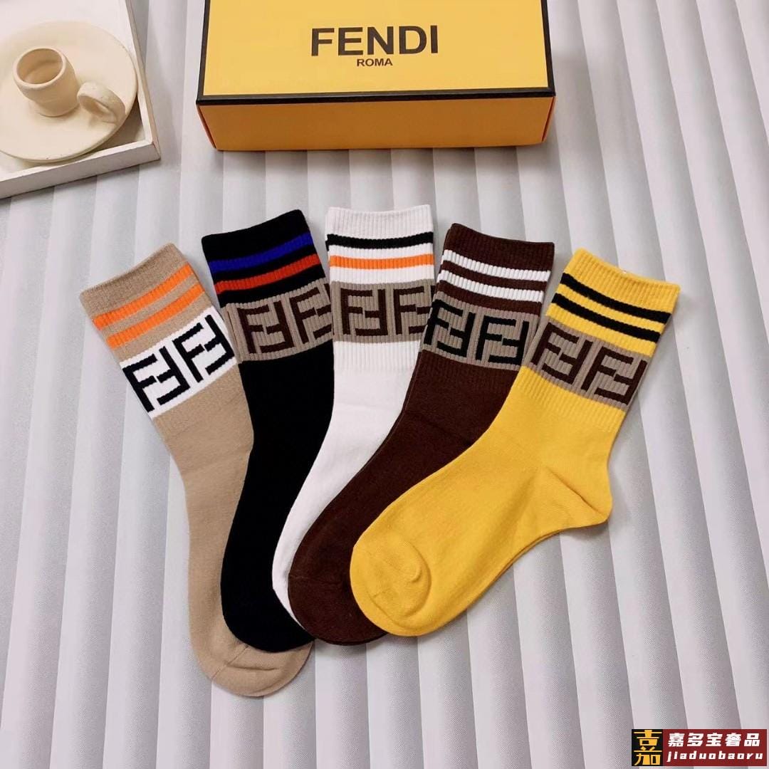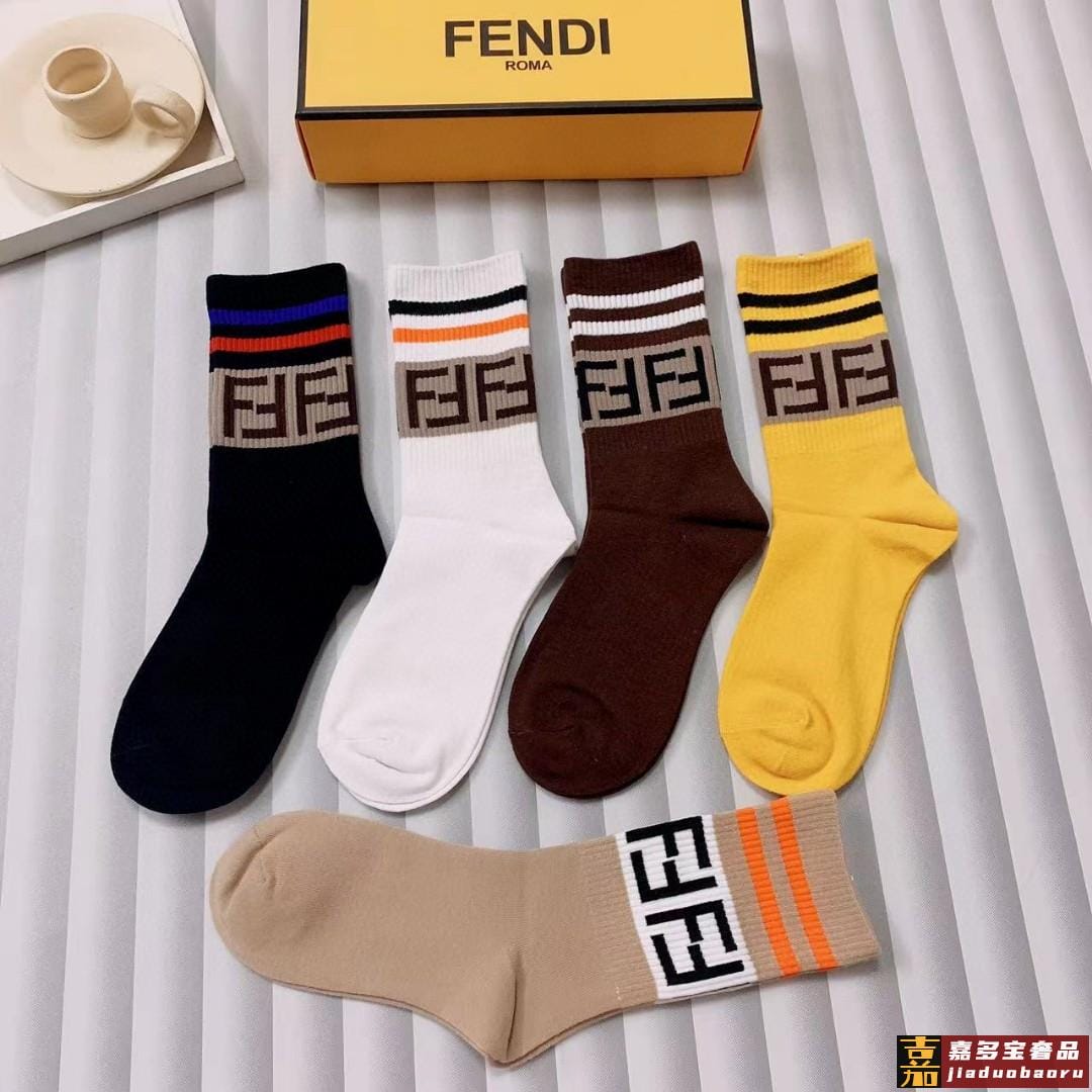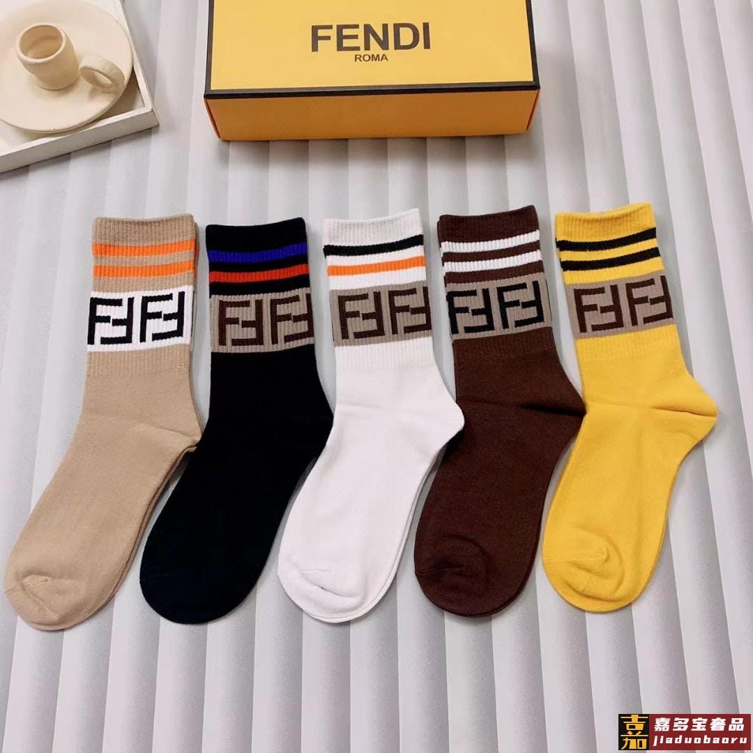配包装一盒五双芬迪大新品男女款秋冬款中筒袜子超级经典的双标志