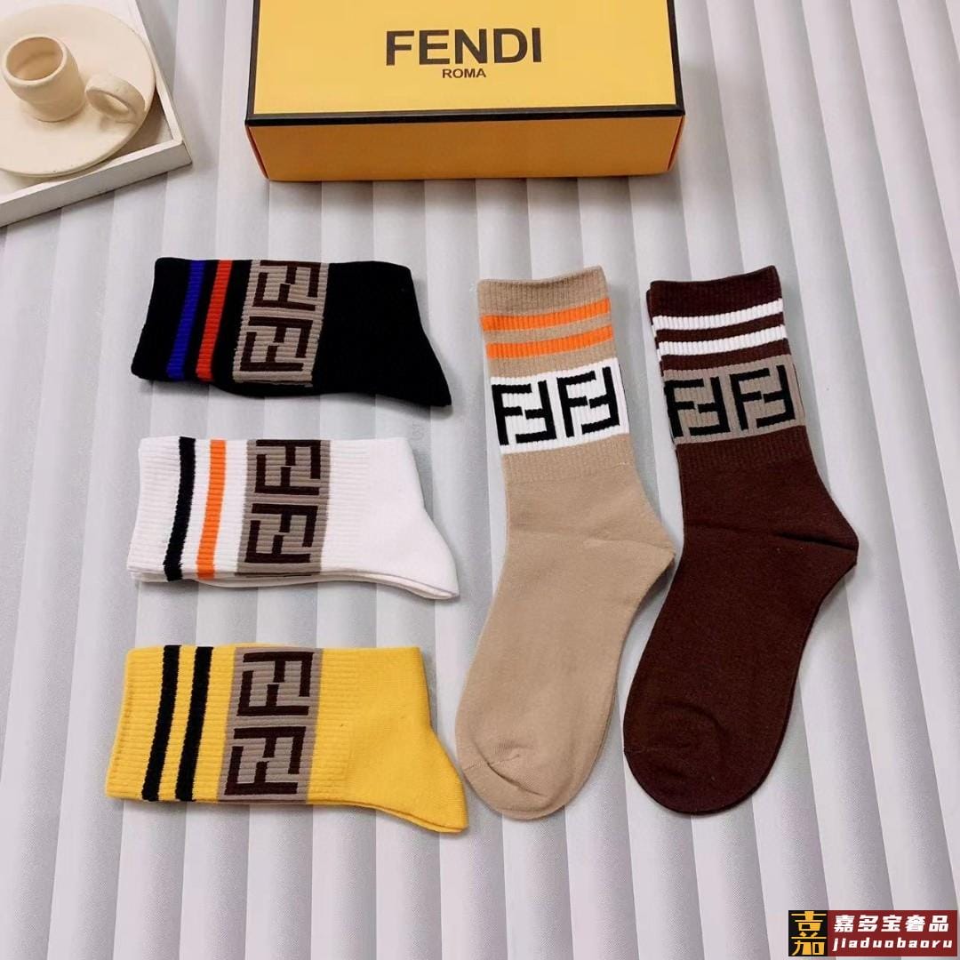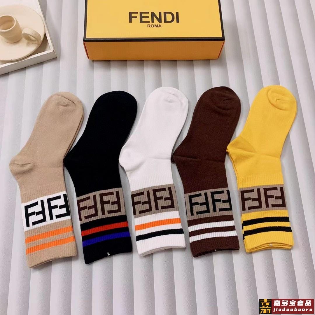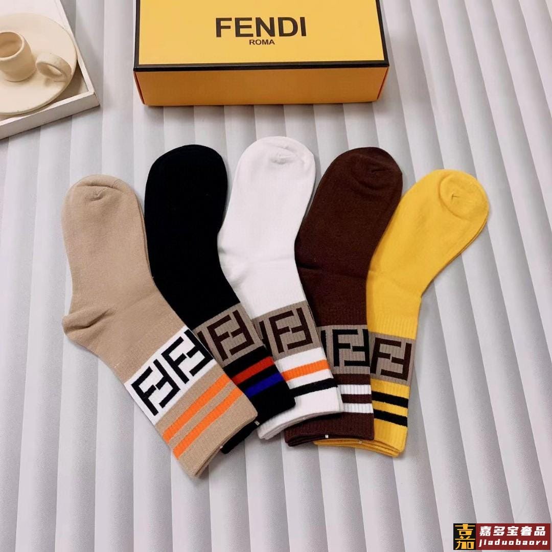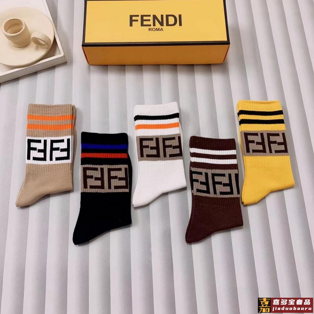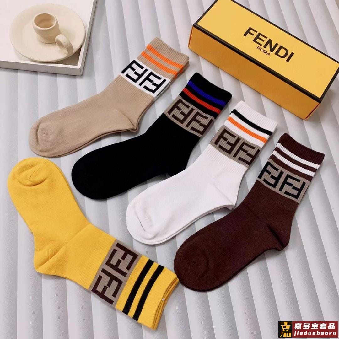 配包装一盒五双芬迪大新品男女款秋冬款中筒袜子超级经典的双标志