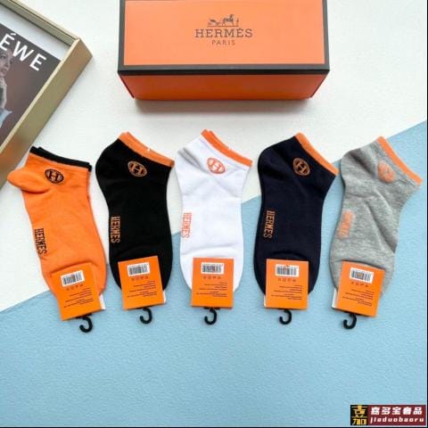 配包装一盒五双爱马仕经典短筒袜子纯棉面料专柜同步上新袜身提花