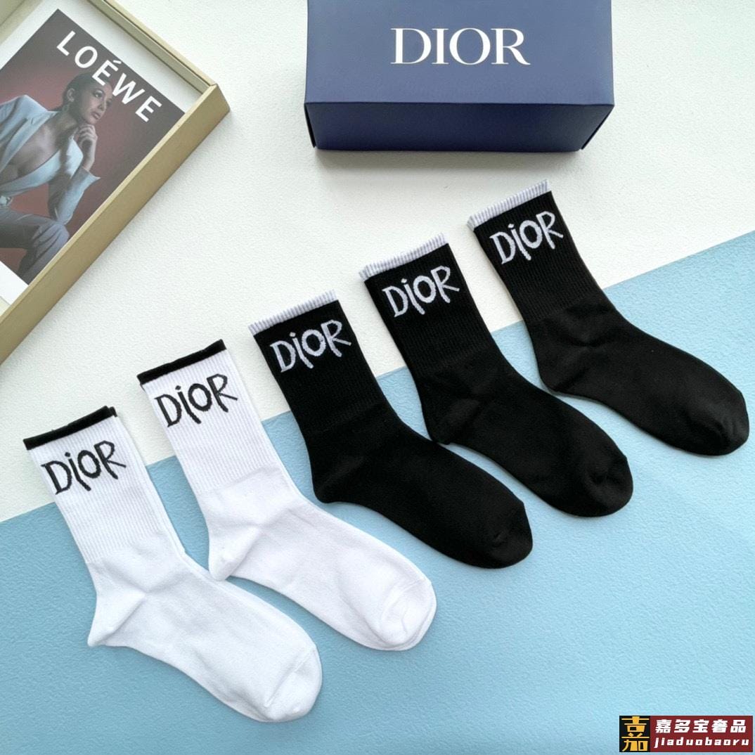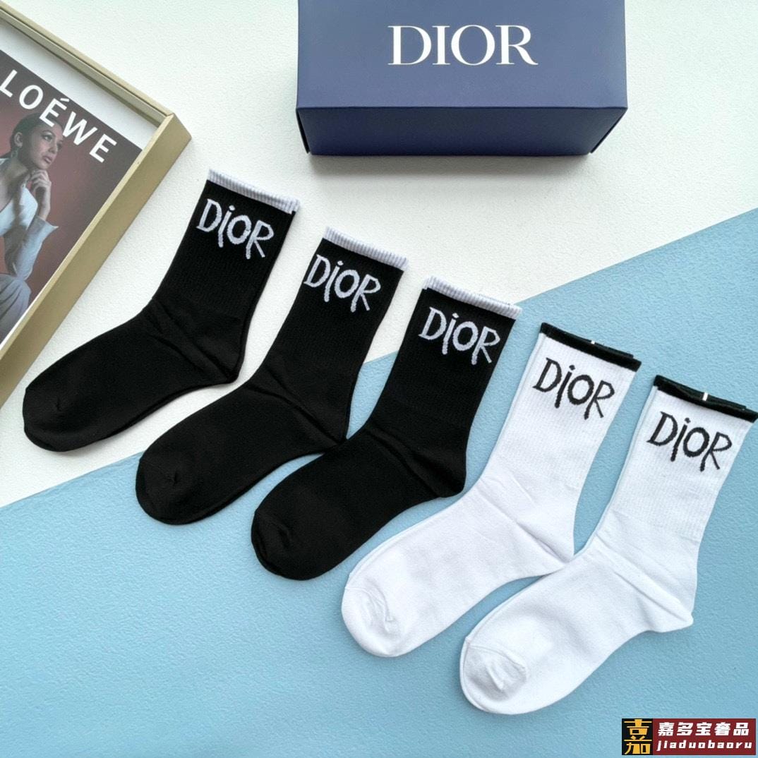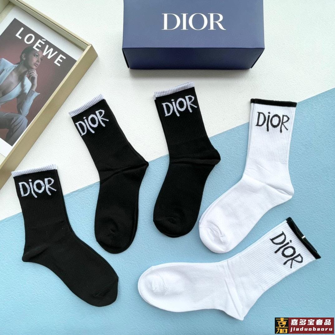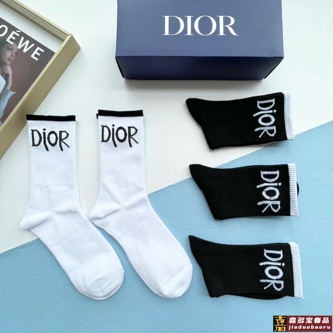 配包装一盒双迪奥新款小腿袜子纯棉面料火爆图案专柜同步中短筒袜