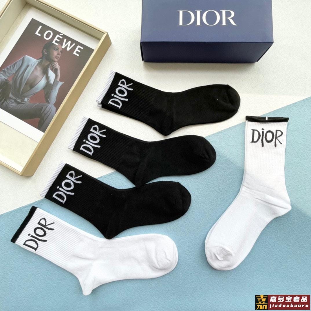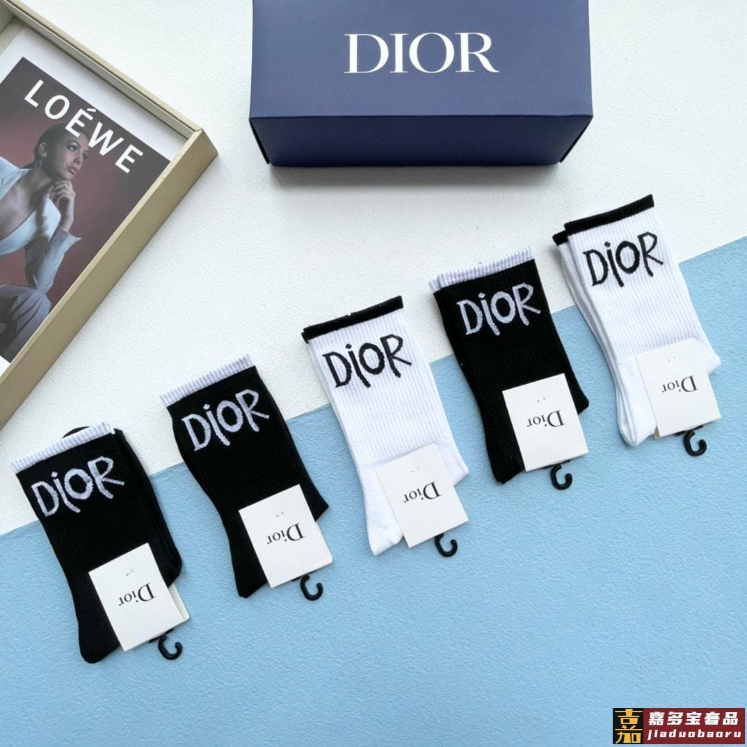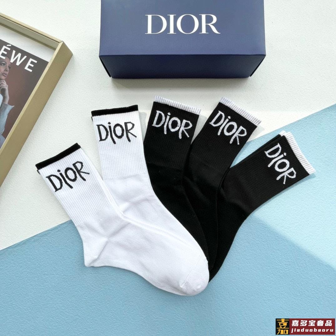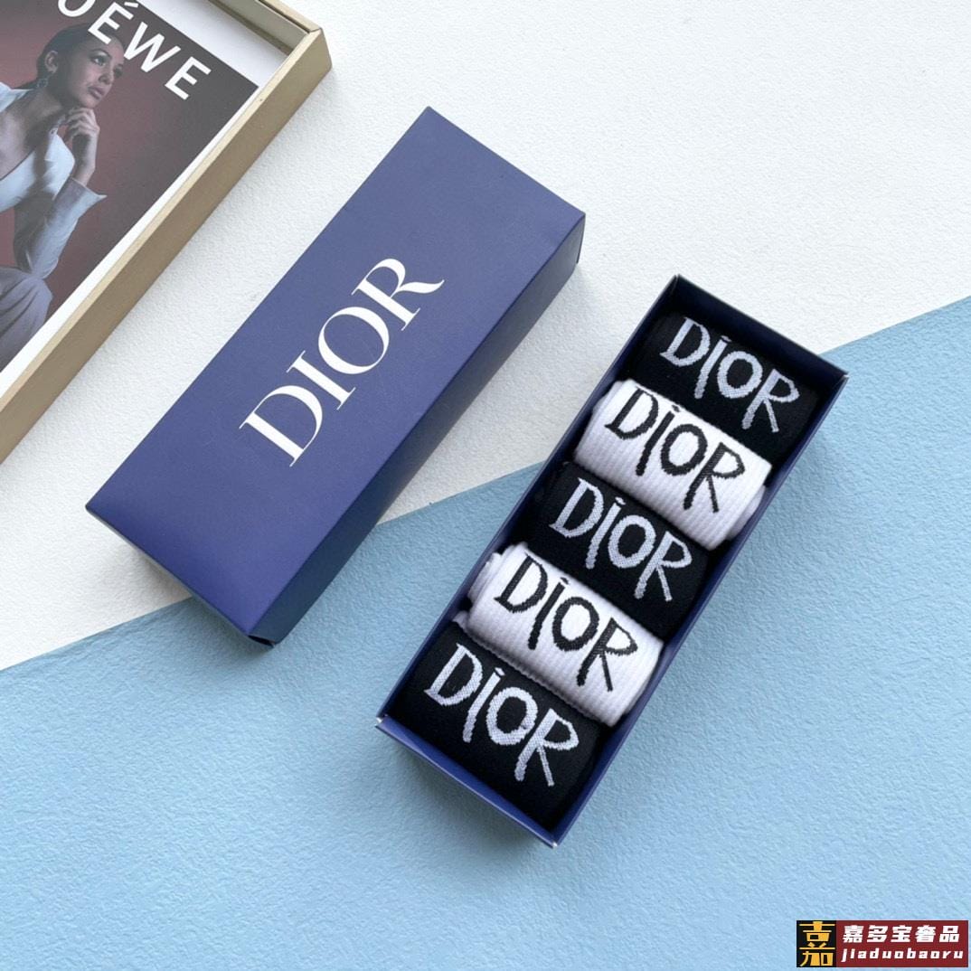 配包装一盒双迪奥新款小腿袜子纯棉面料火爆图案专柜同步中短筒袜
