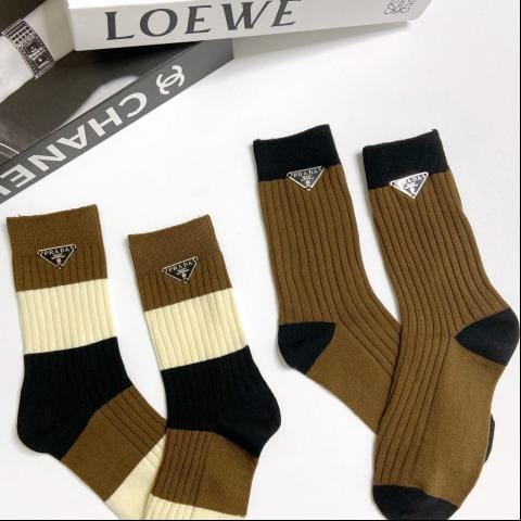 配包装一盒双普拉达经典字母纯棉中筒袜重工装饰个性时尚爆款专柜