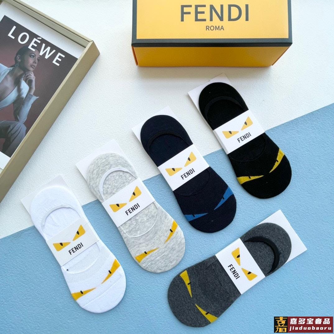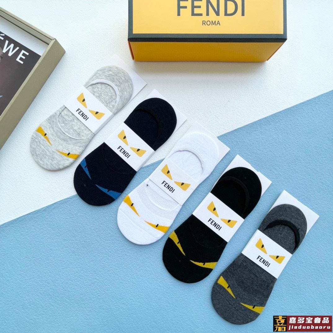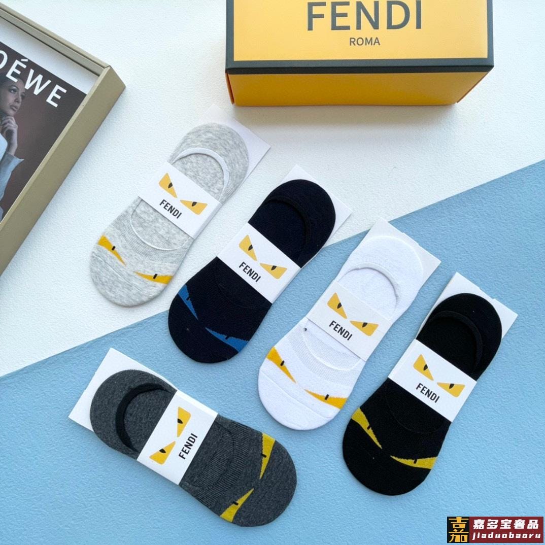 配包装一盒五双芬迪新款隐形男女款船形袜子专柜同步船袜小怪兽经