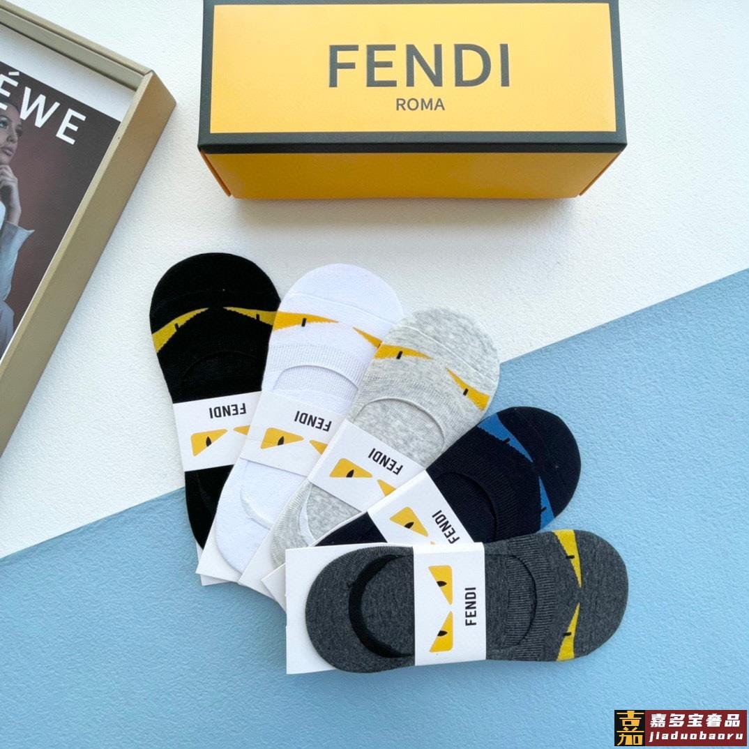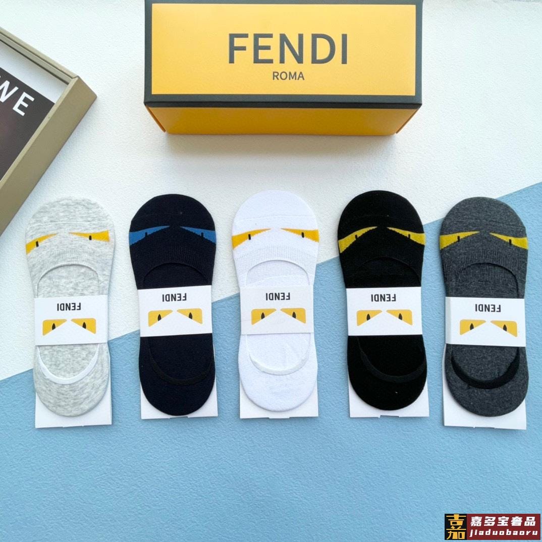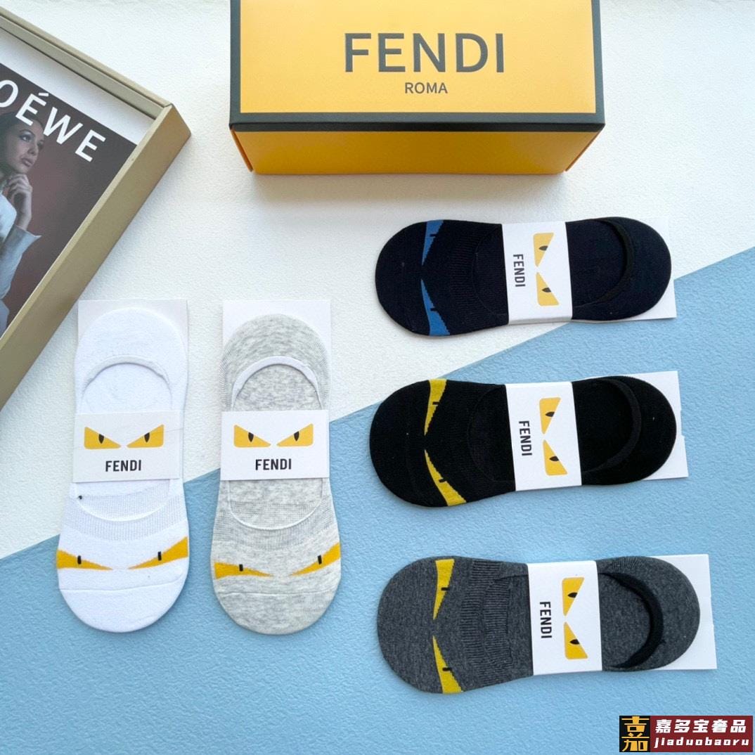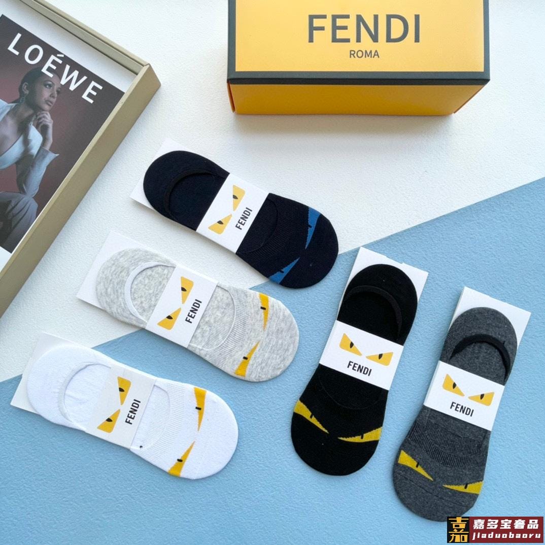 配包装一盒五双芬迪新款隐形男女款船形袜子专柜同步船袜小怪兽经