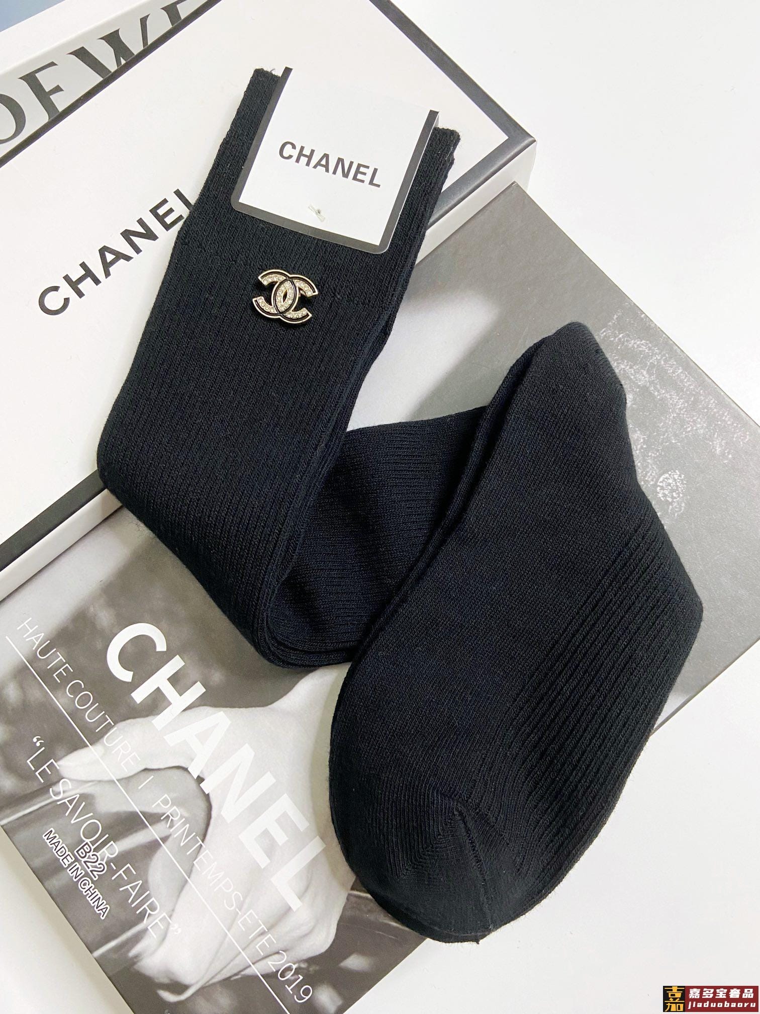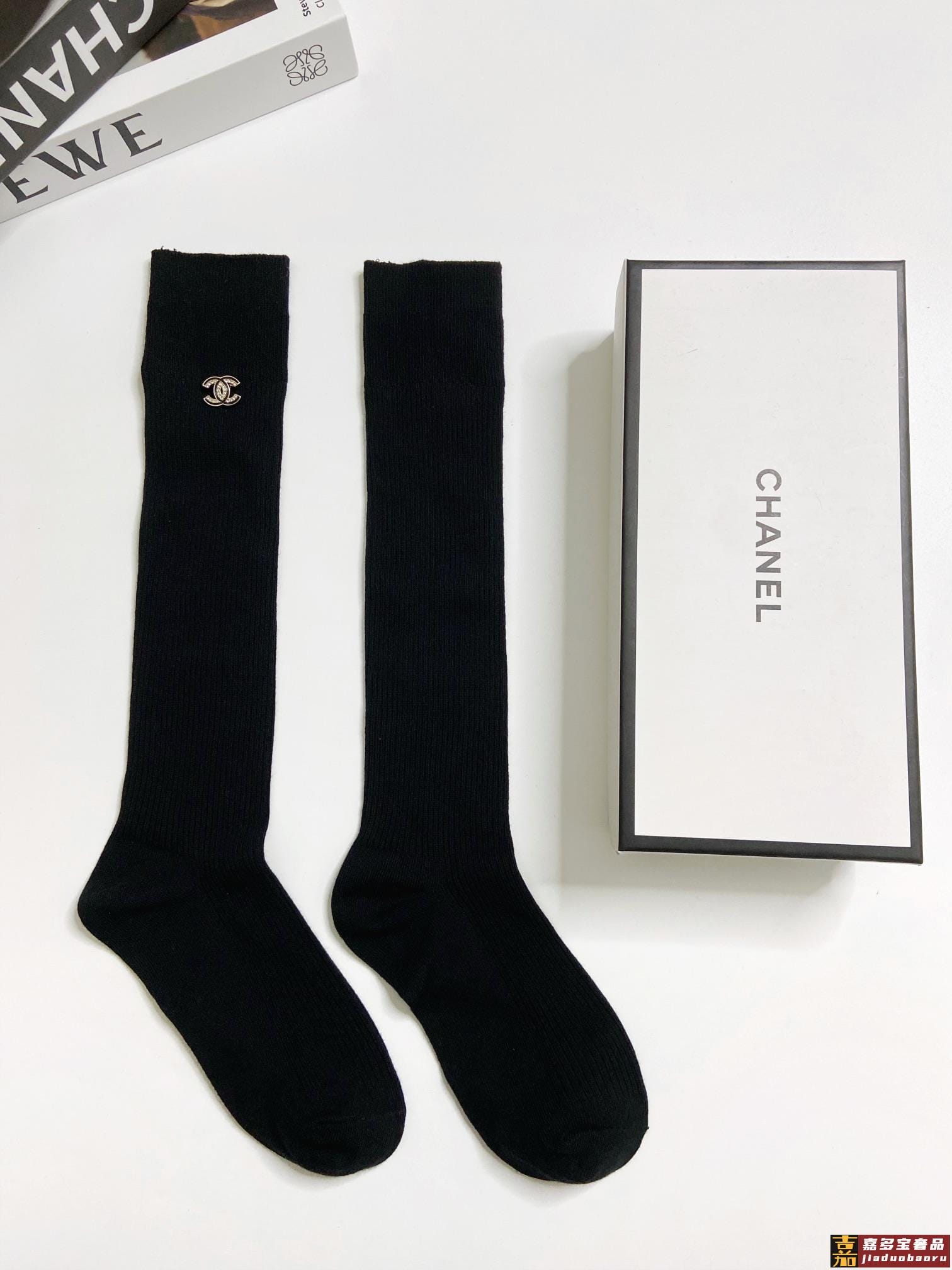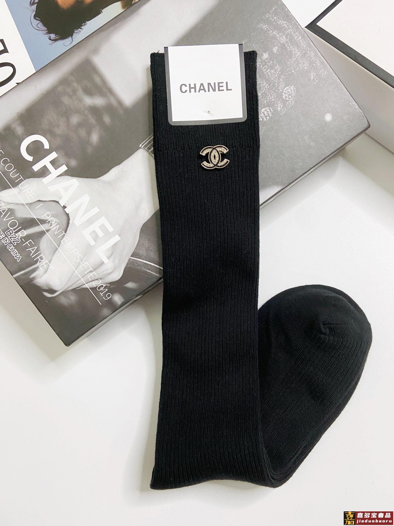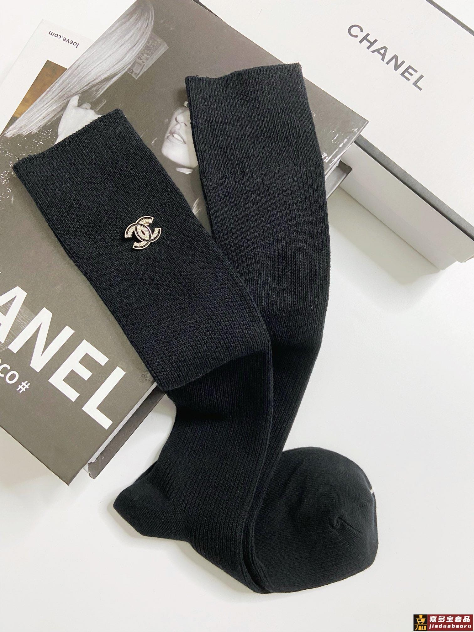 配包装一盒五双香奈儿香奶奶家新品女长款袜子袜身提花经典标志简