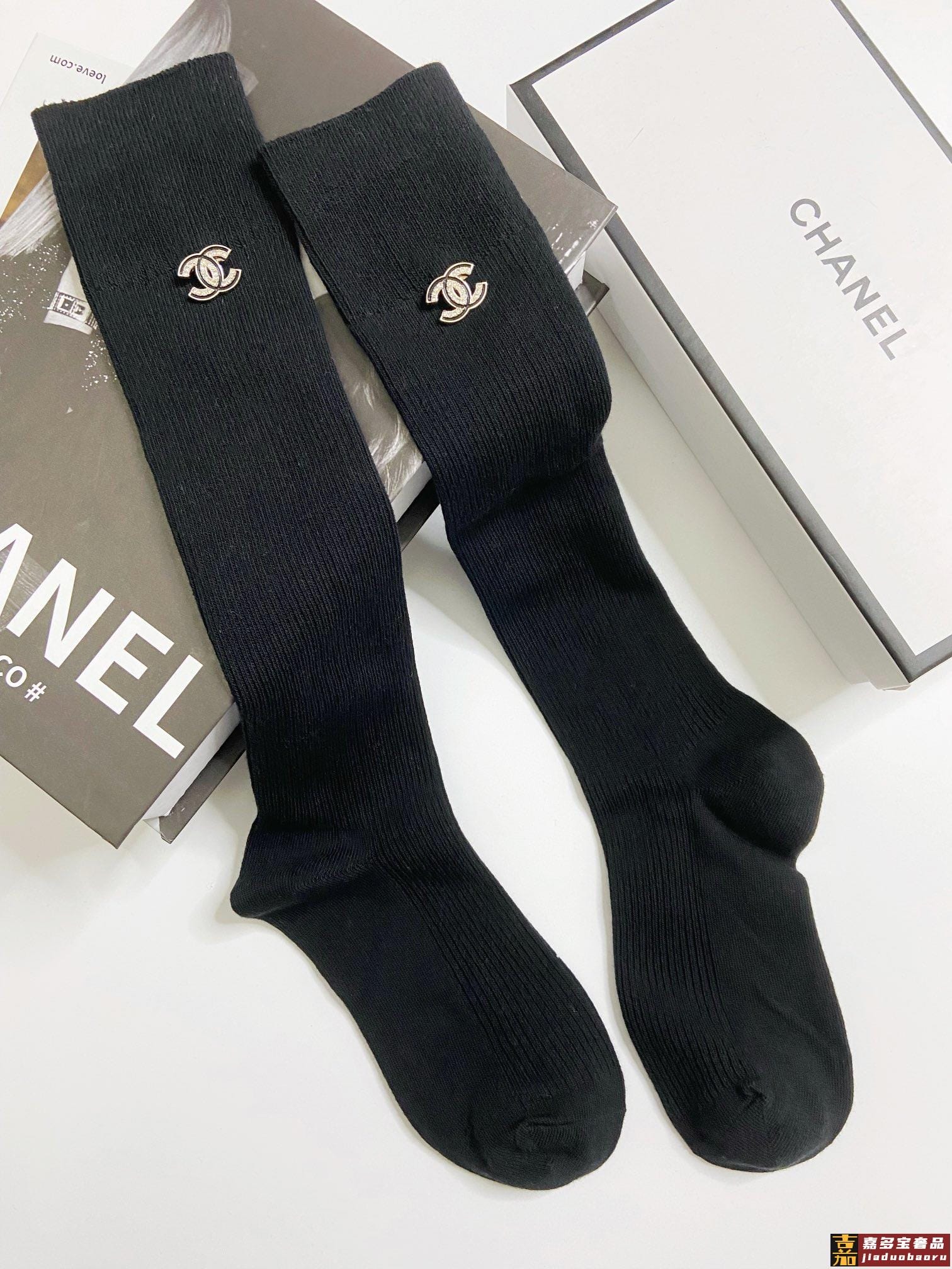配包装一盒一双香奈儿经典字母别针纯棉长筒袜小腿袜重工装饰个性