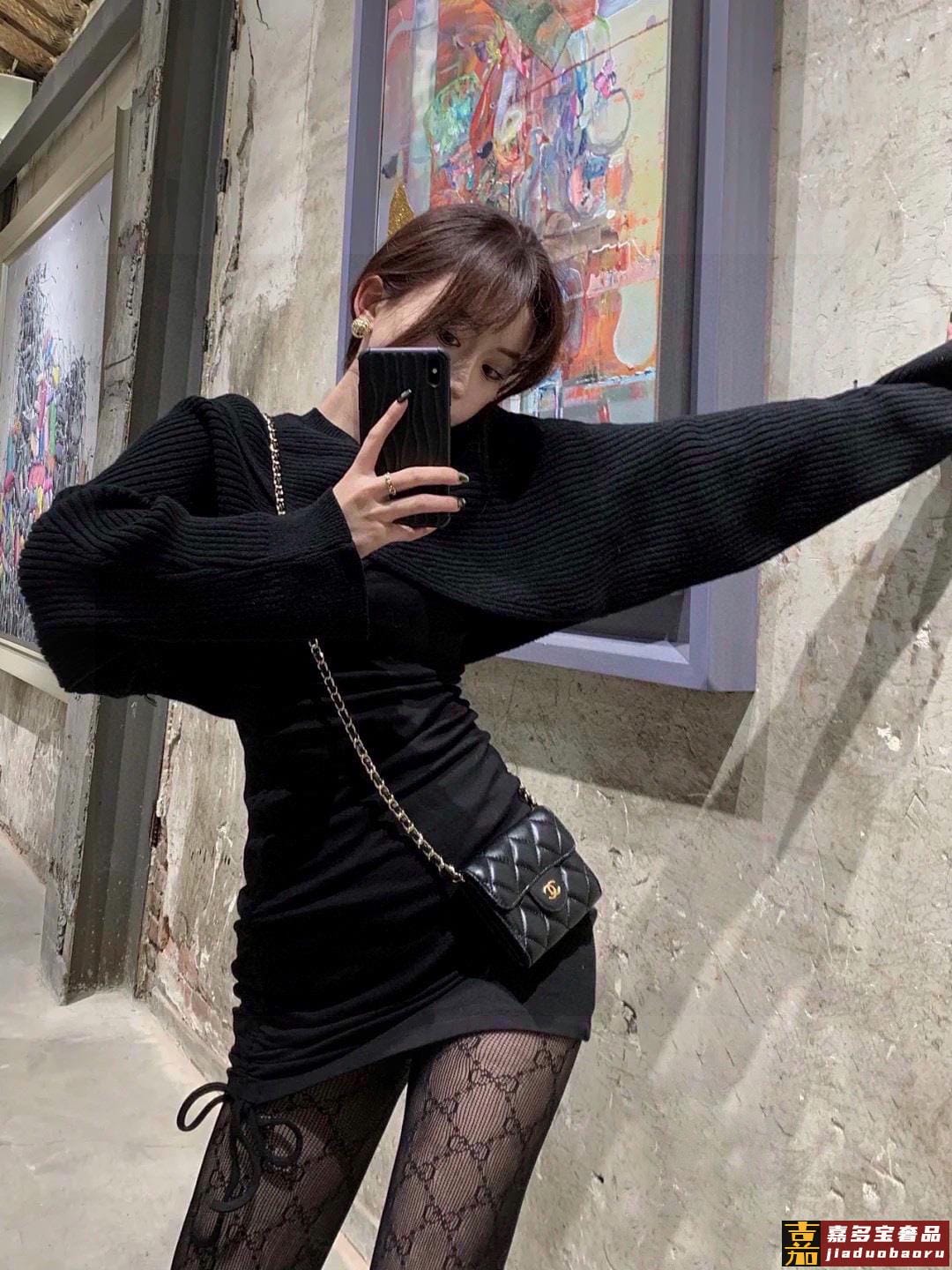配包装一盒五双香奈儿香奶奶家新品女长款袜子袜身提花经典标志简