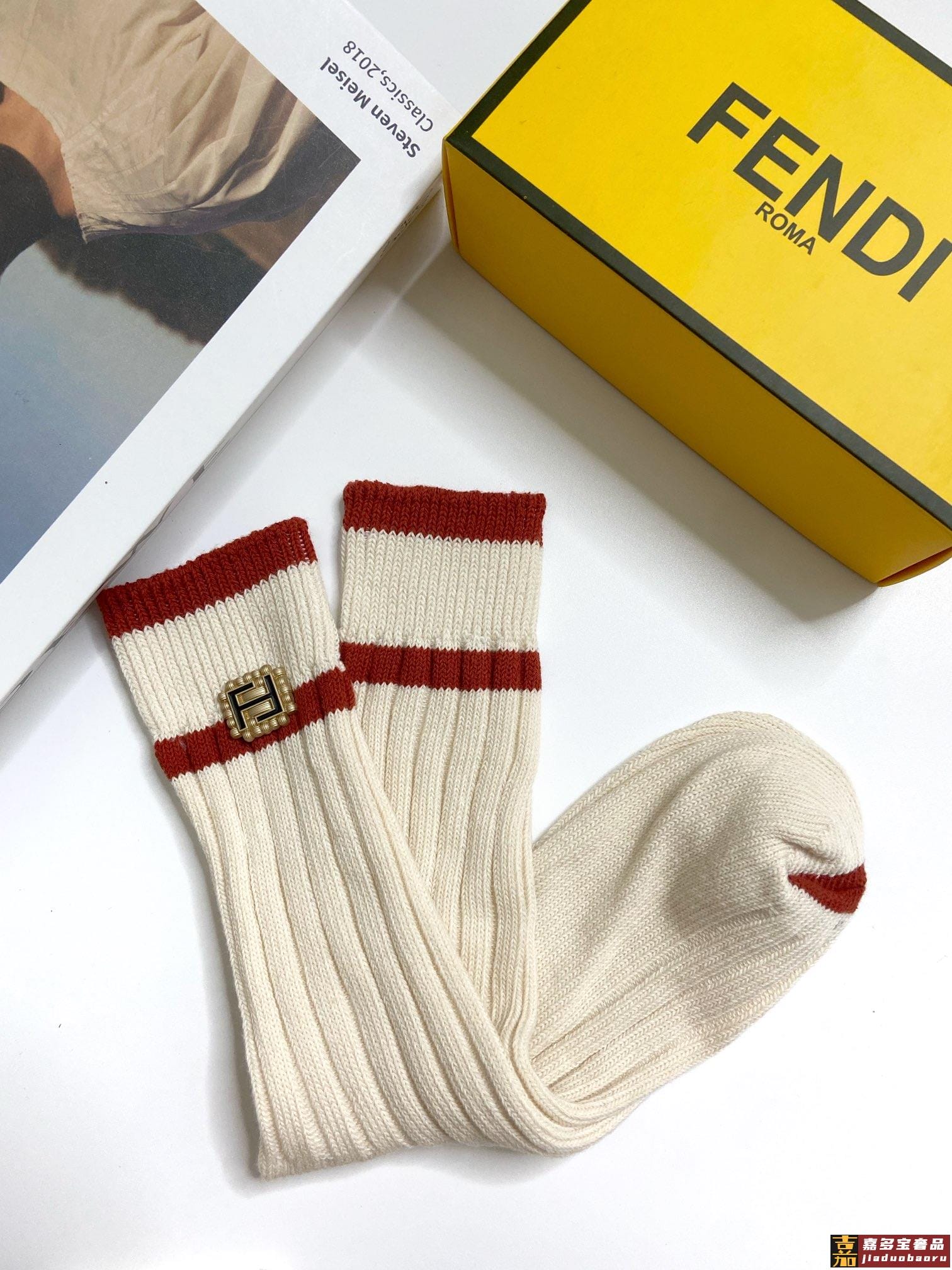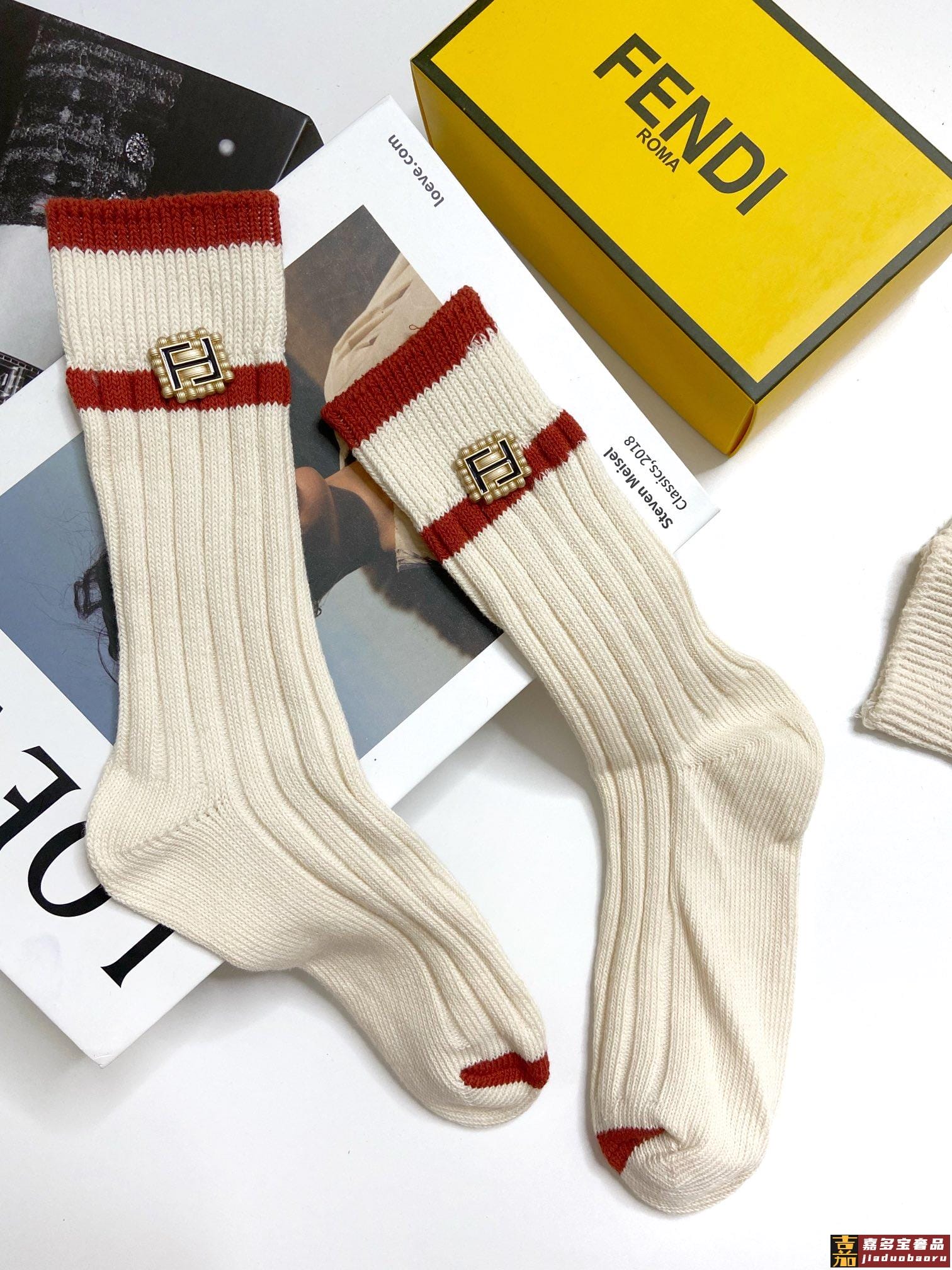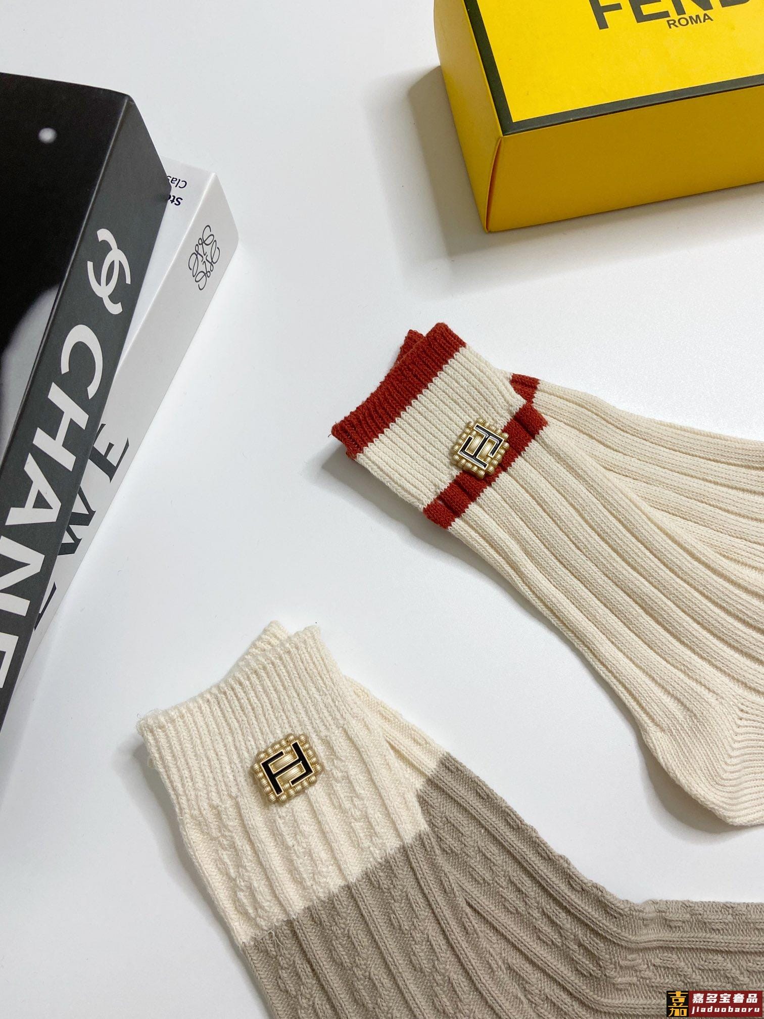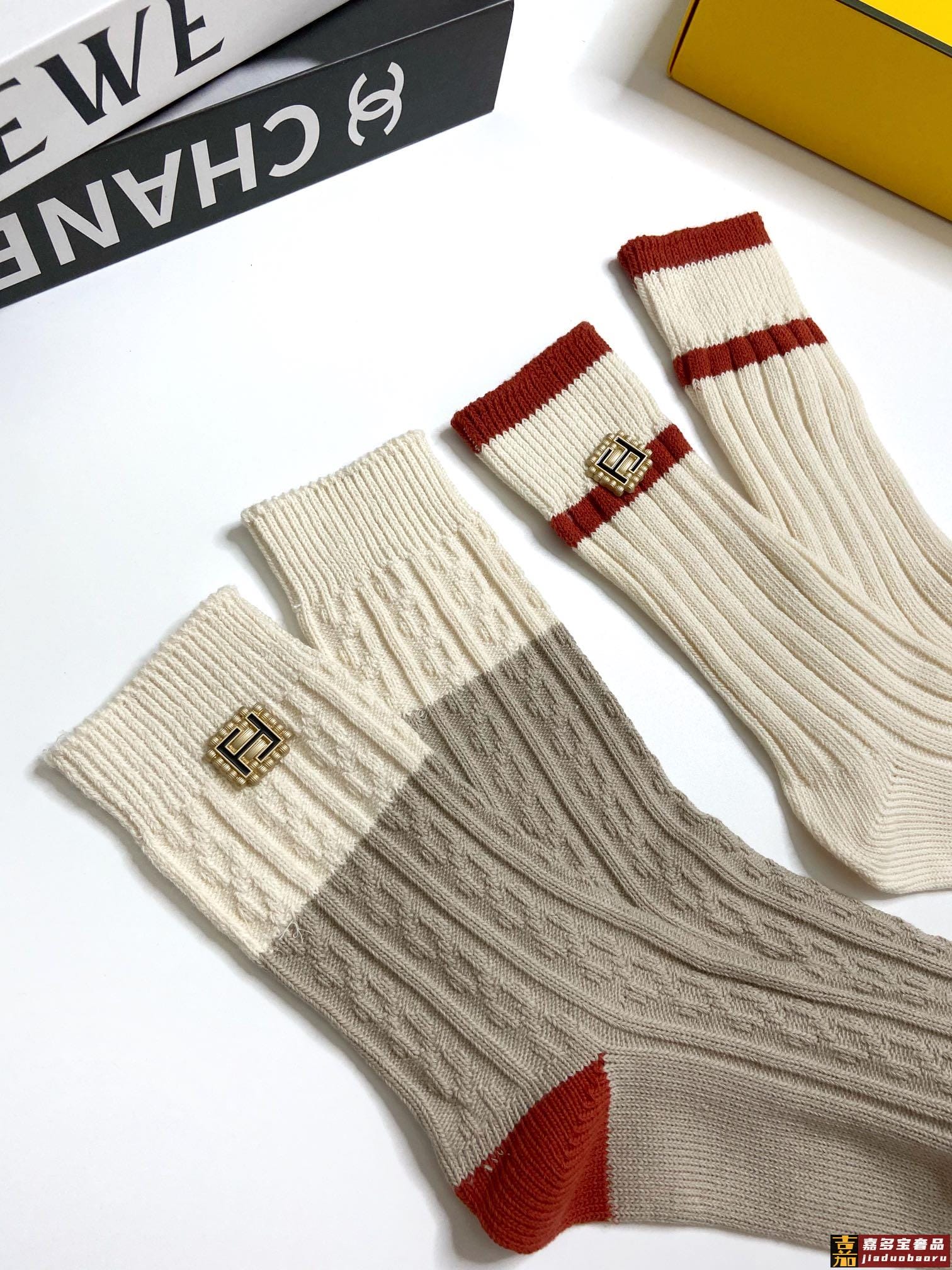 配包装一盒双芬迪经典字母粗线双针针织纯棉中筒袜重工装饰个性时