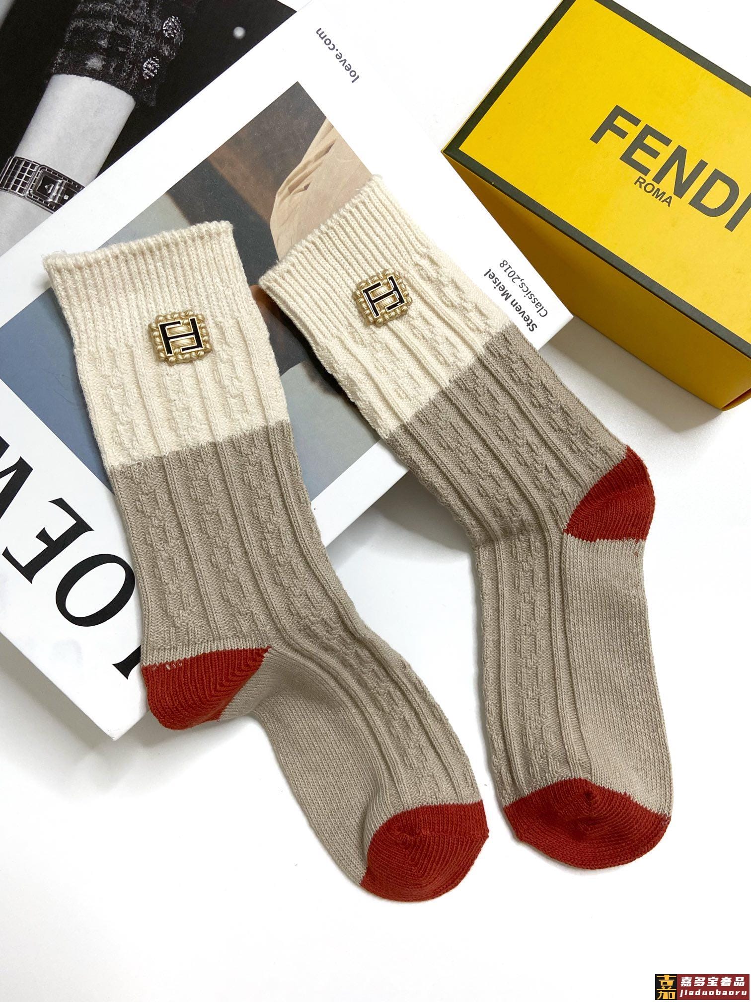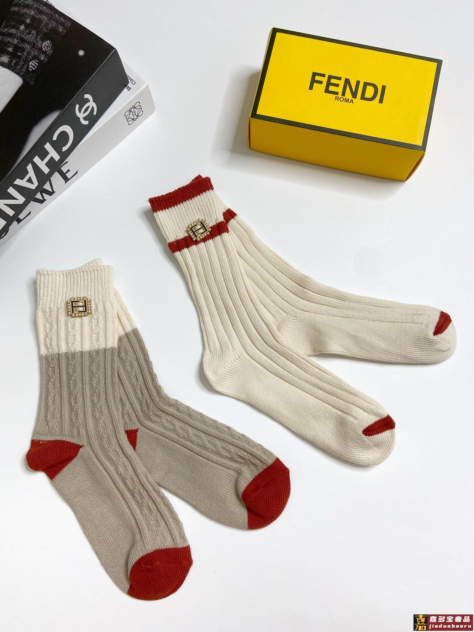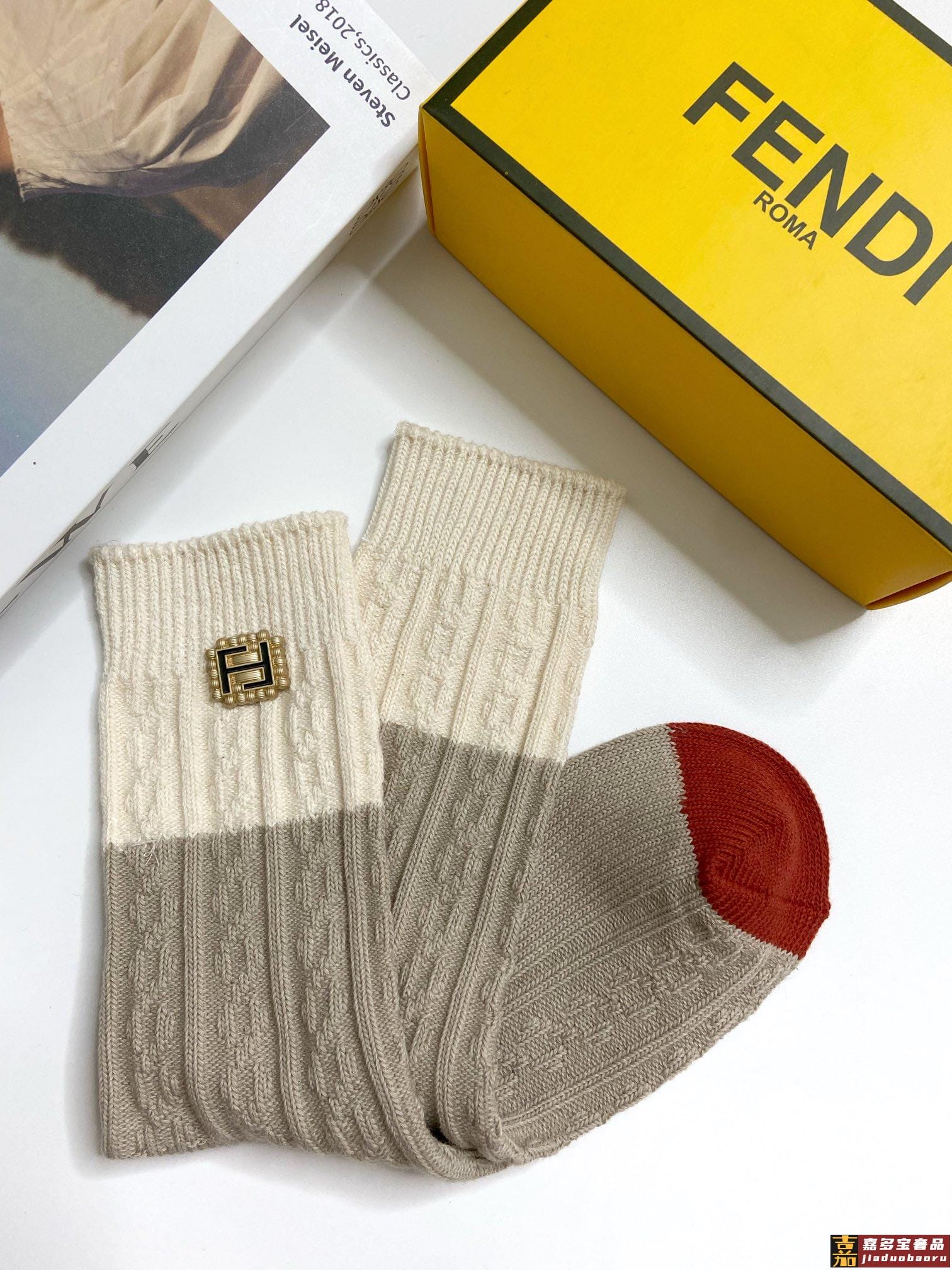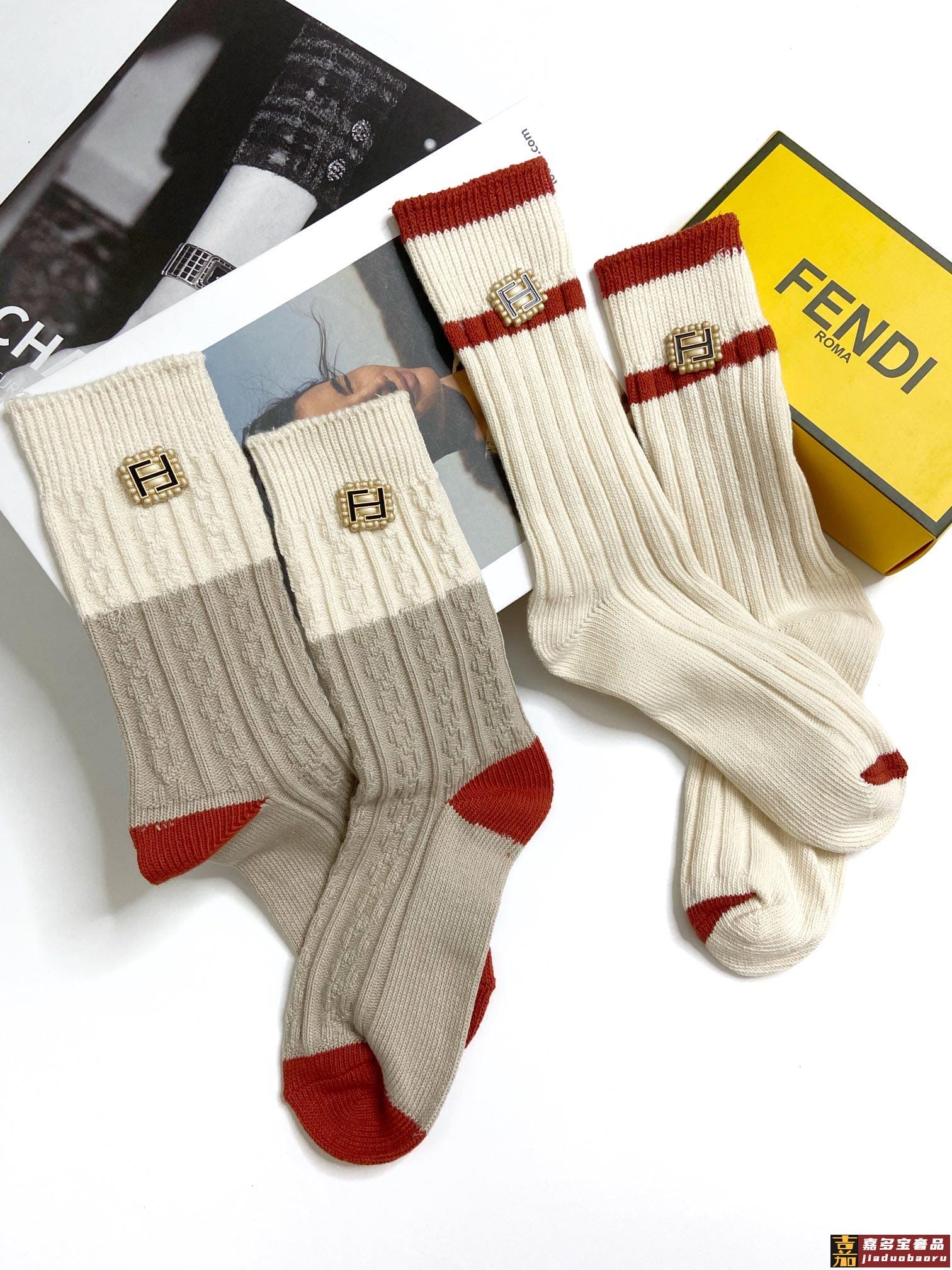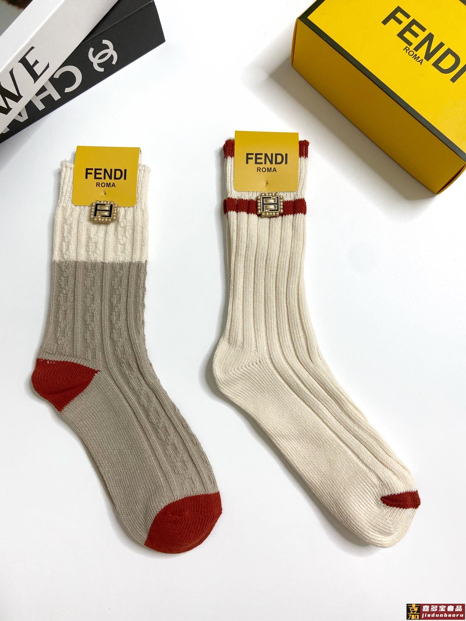 配包装一盒双芬迪经典字母粗线双针针织纯棉中筒袜重工装饰个性时