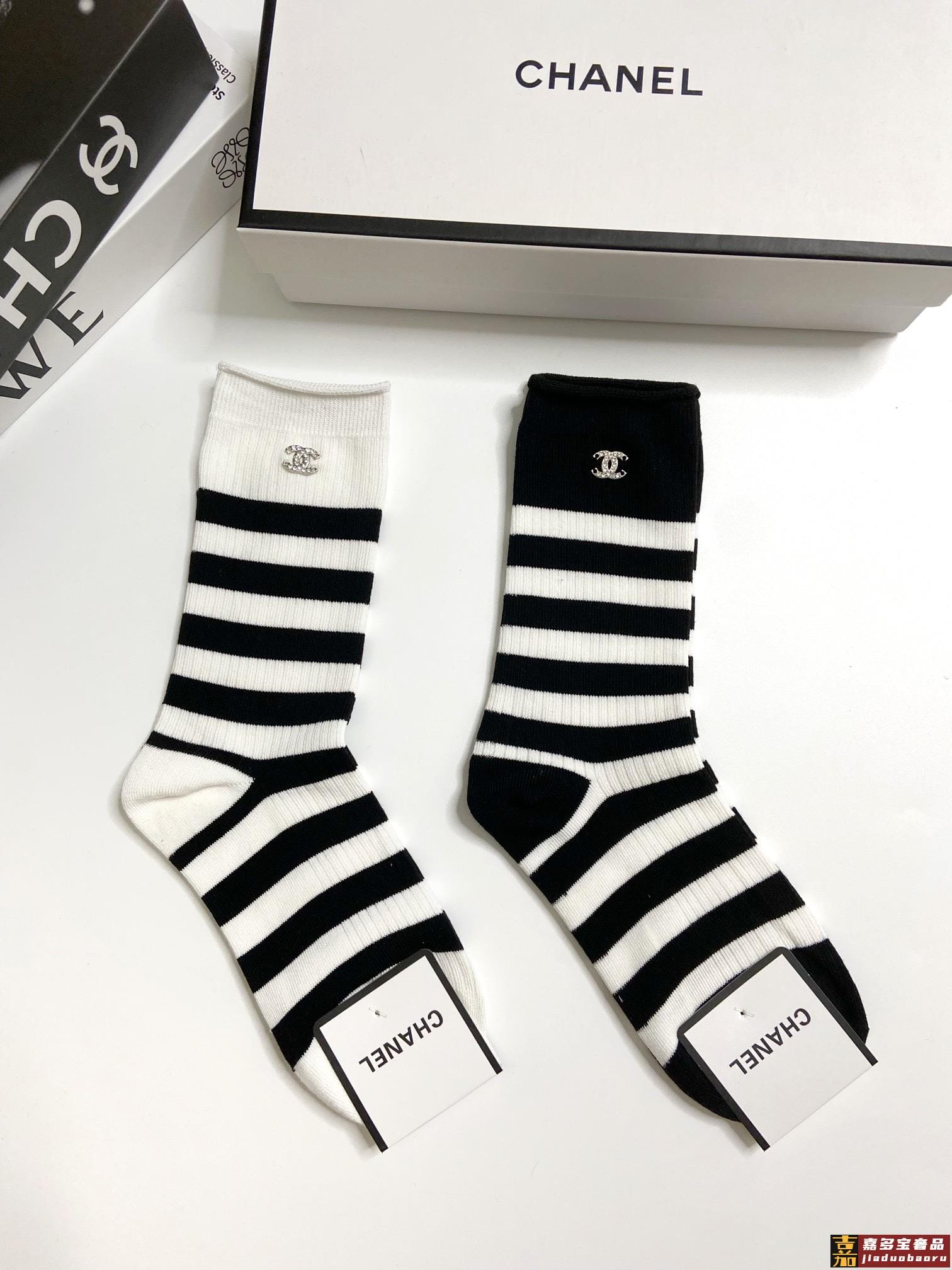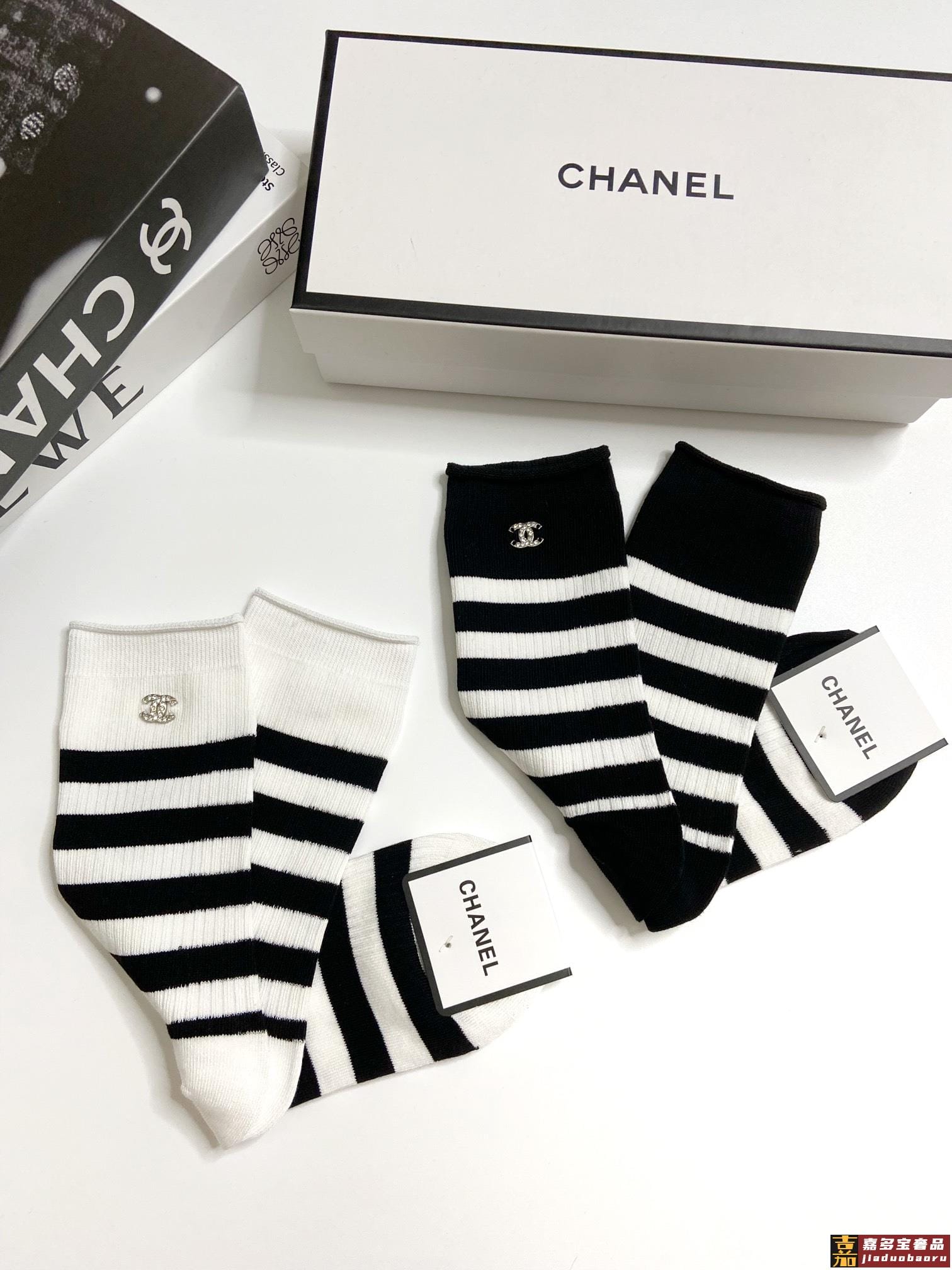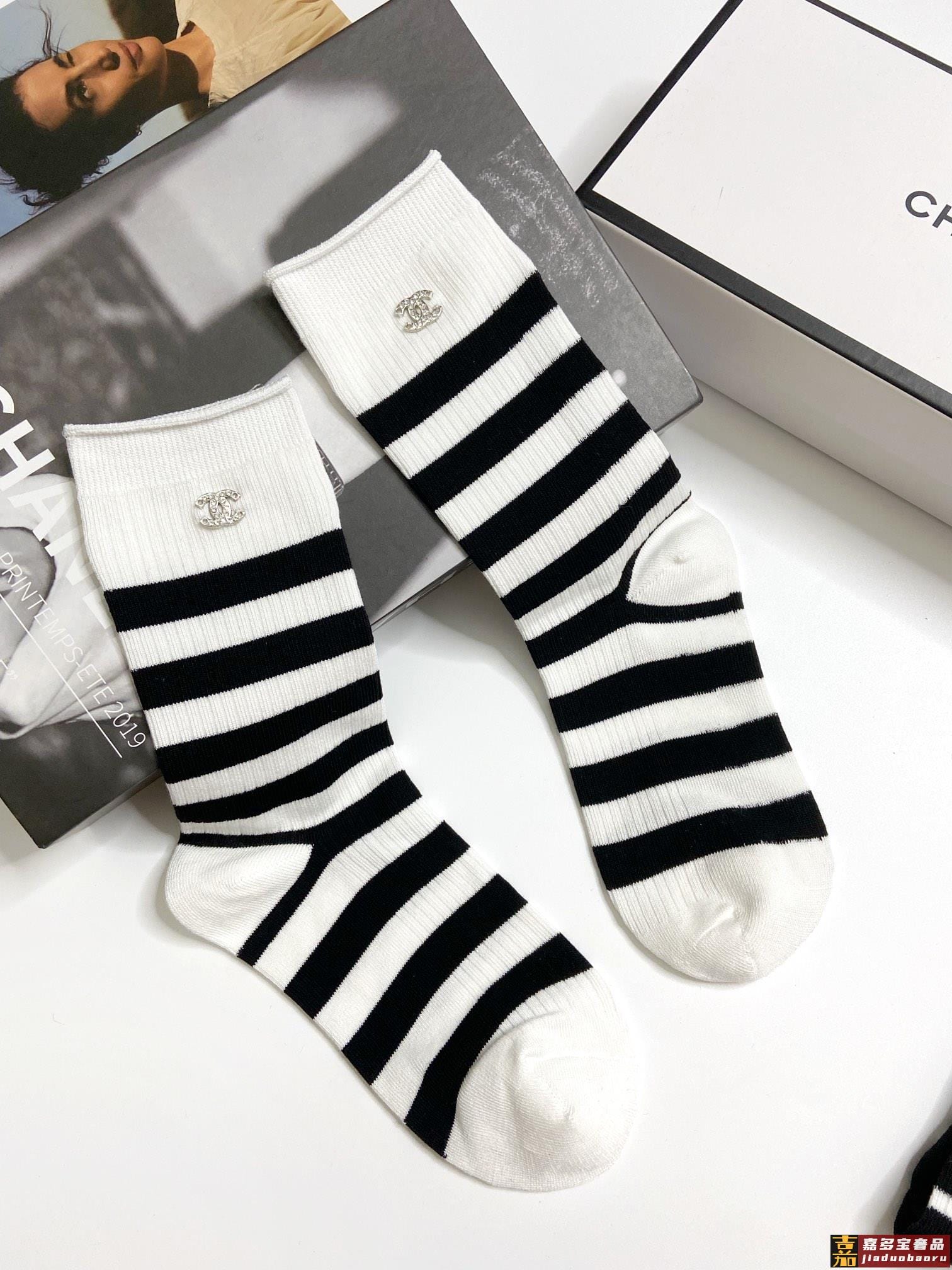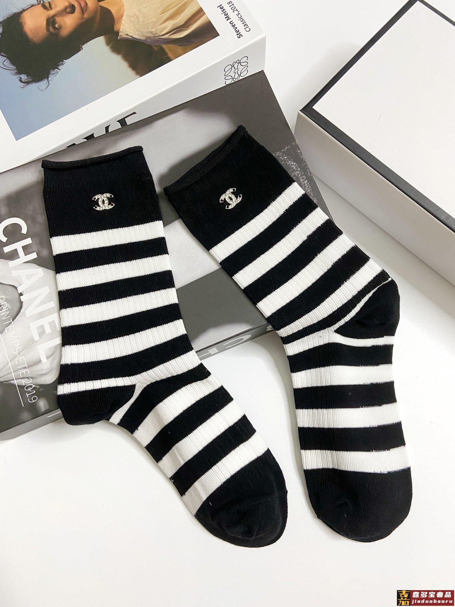 配包装一盒五双香奈儿香奶奶家新品女长款袜子袜身提花经典标志简