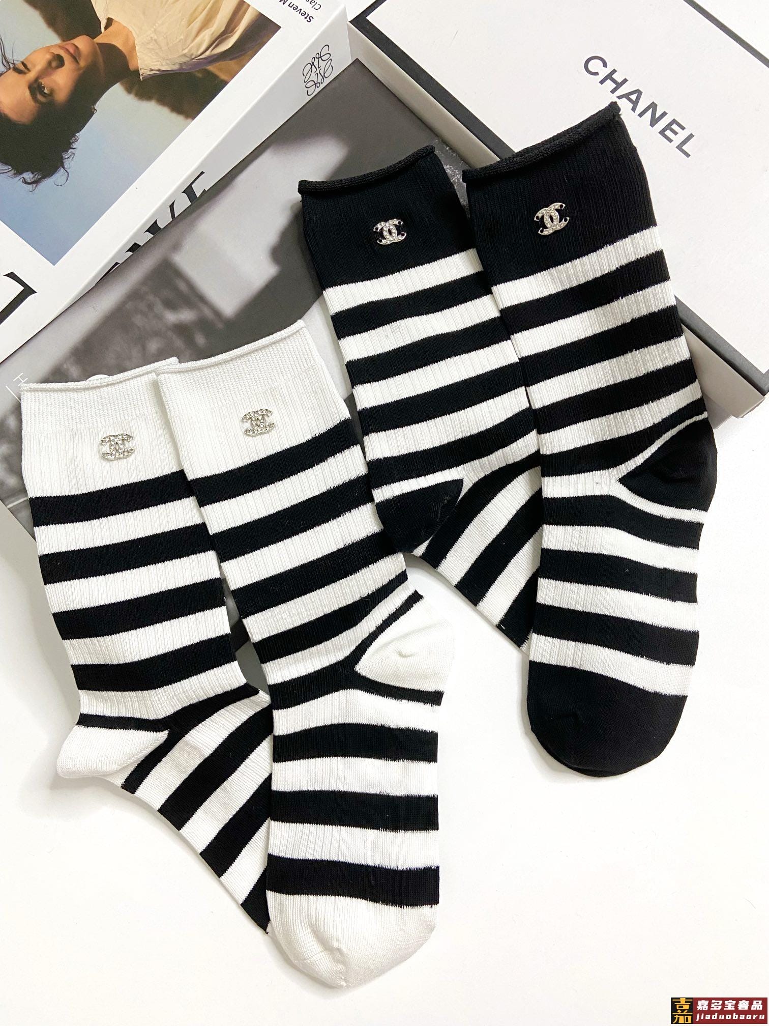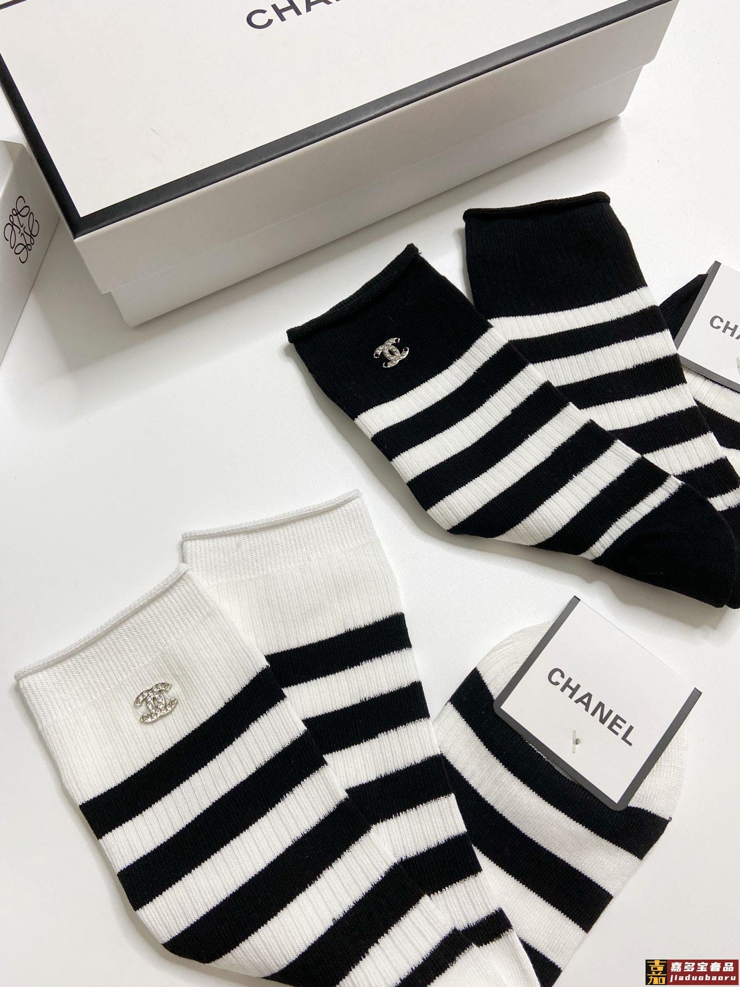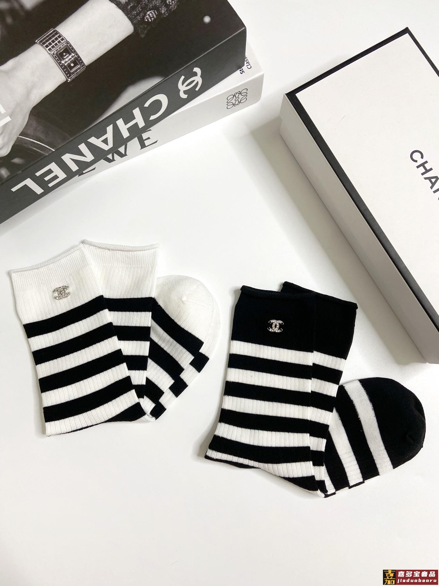 配包装一盒双香奈儿经典双字母纯棉中筒袜重工装饰个性时尚爆款专