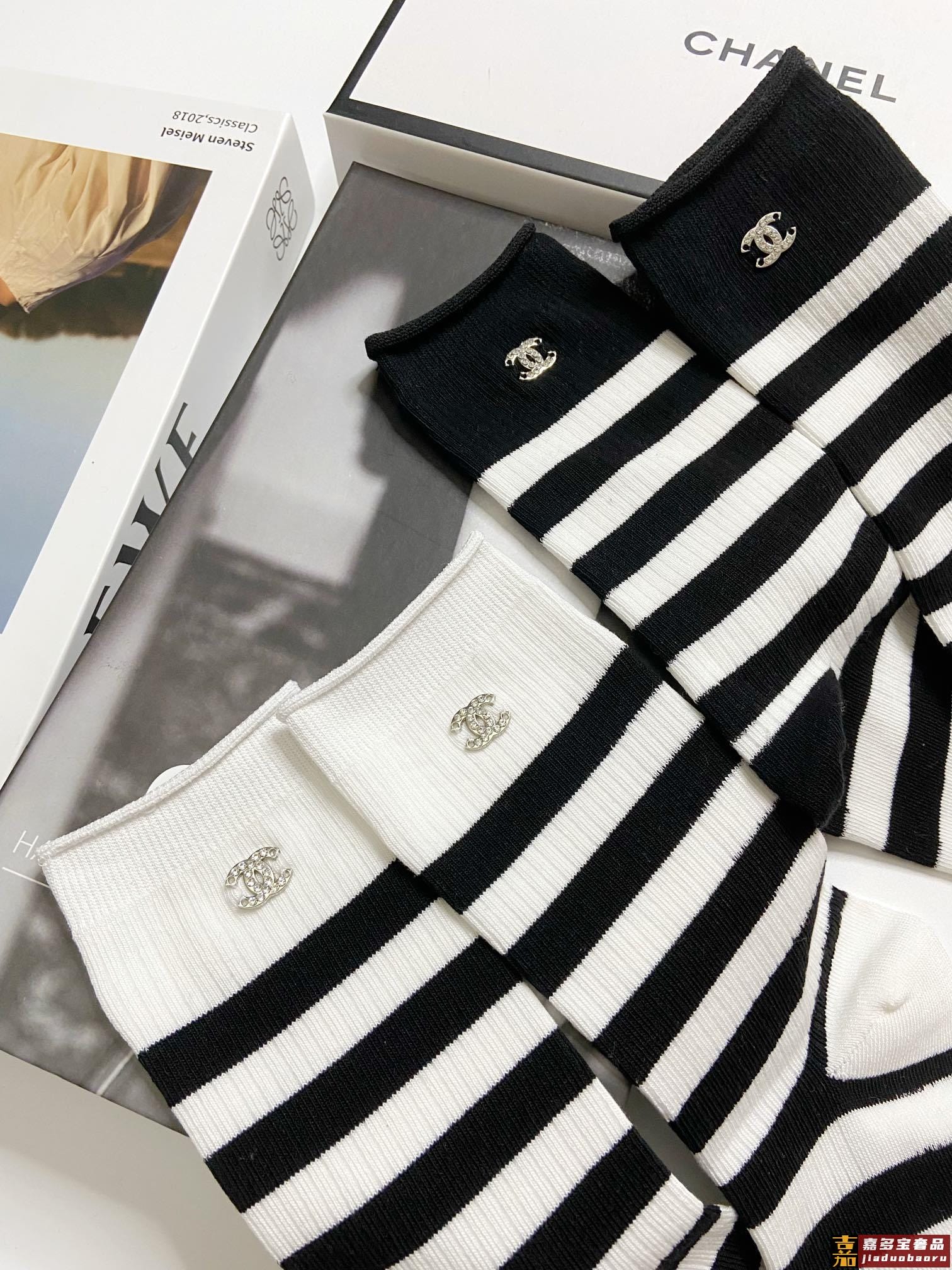 配包装一盒一双香奈儿经典字母别针纯棉长筒袜小腿袜重工装饰个性