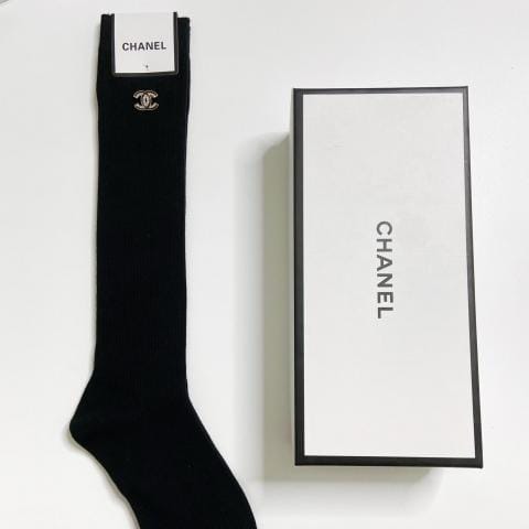配包装一盒一双香奈儿经典字母别针纯棉长筒袜小腿袜重工装饰个性