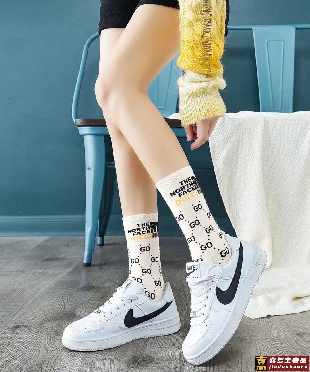 配包装一盒一双古奇经典字母别针纯棉长筒袜小腿袜重工装饰个性时