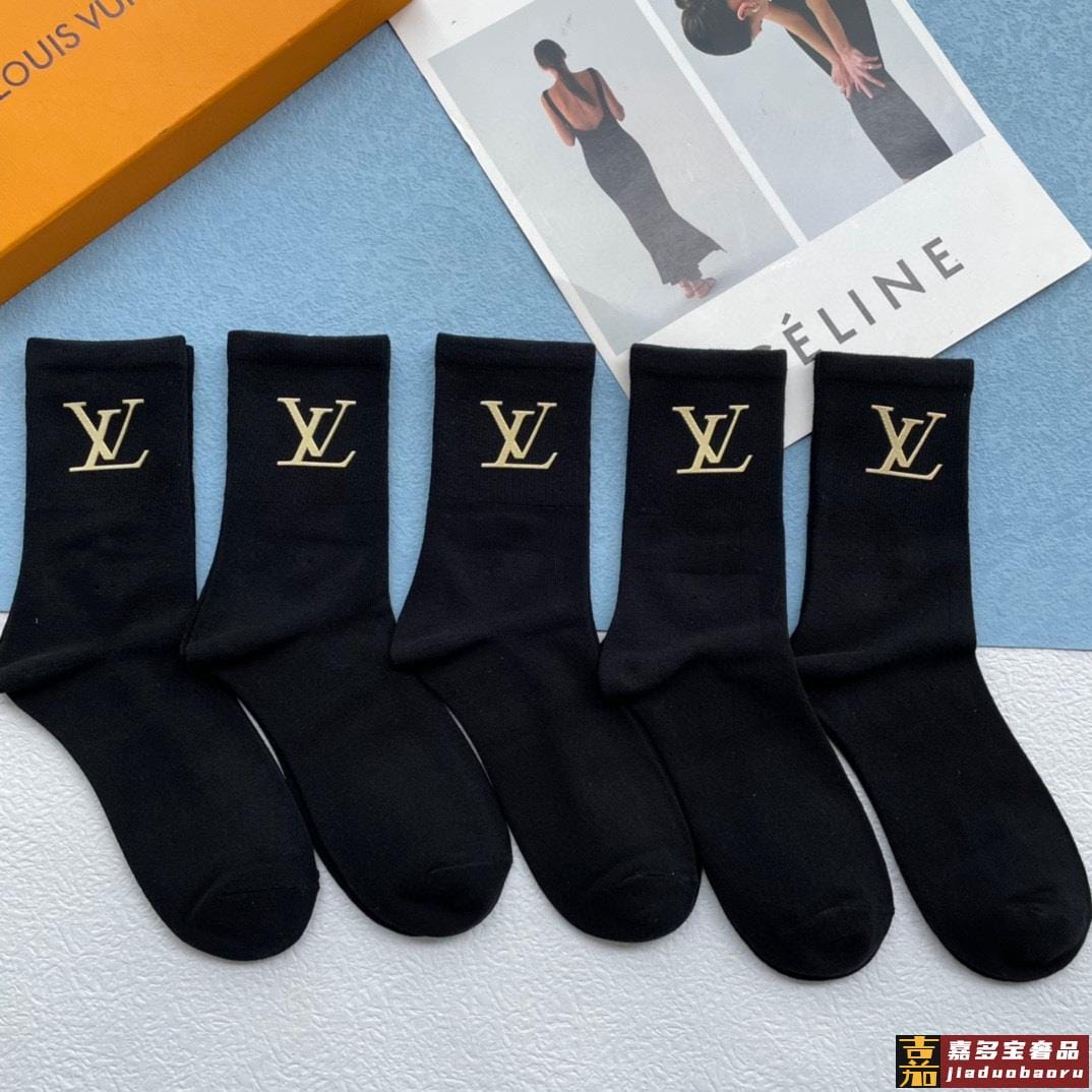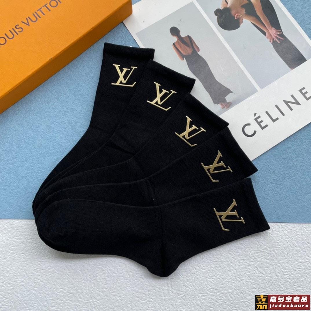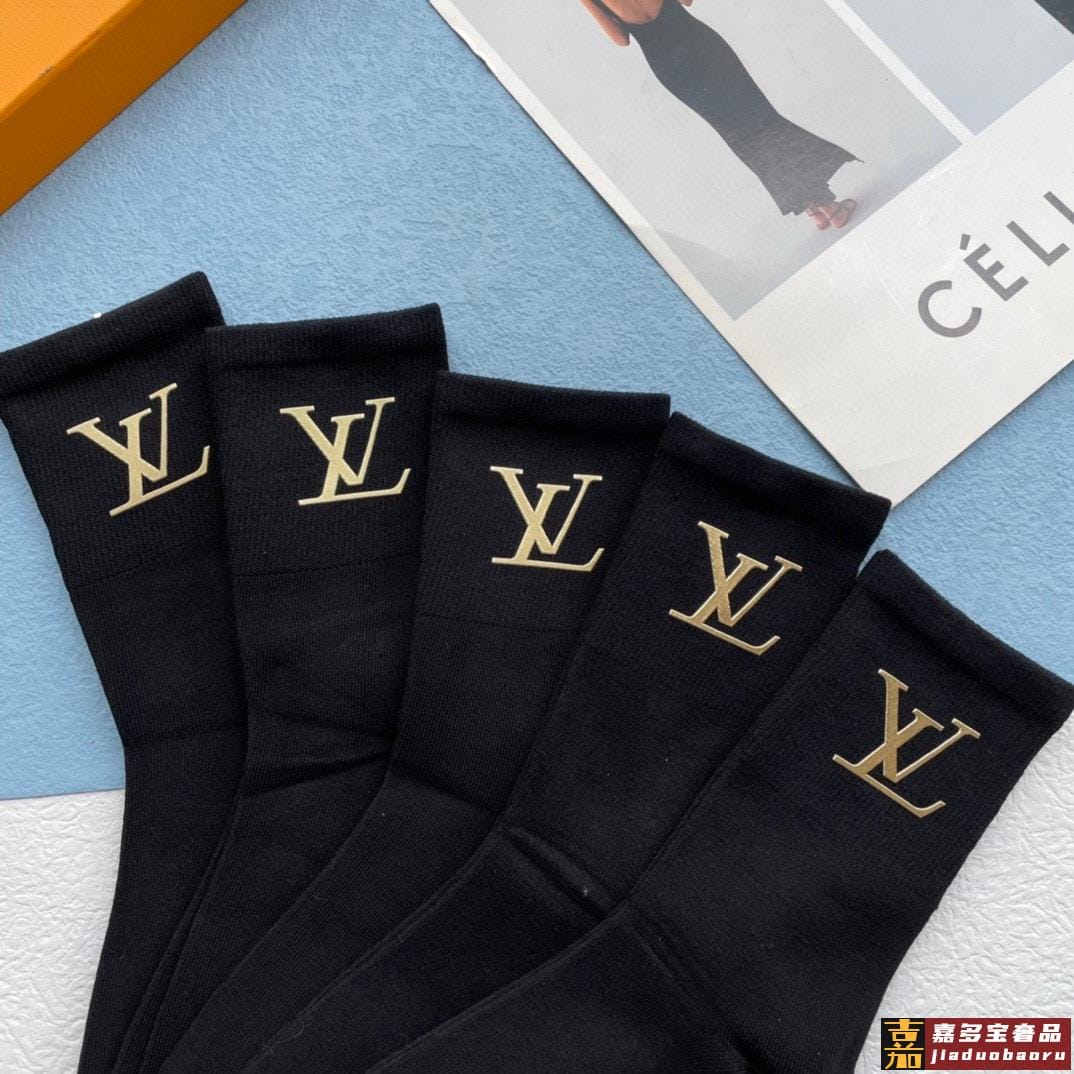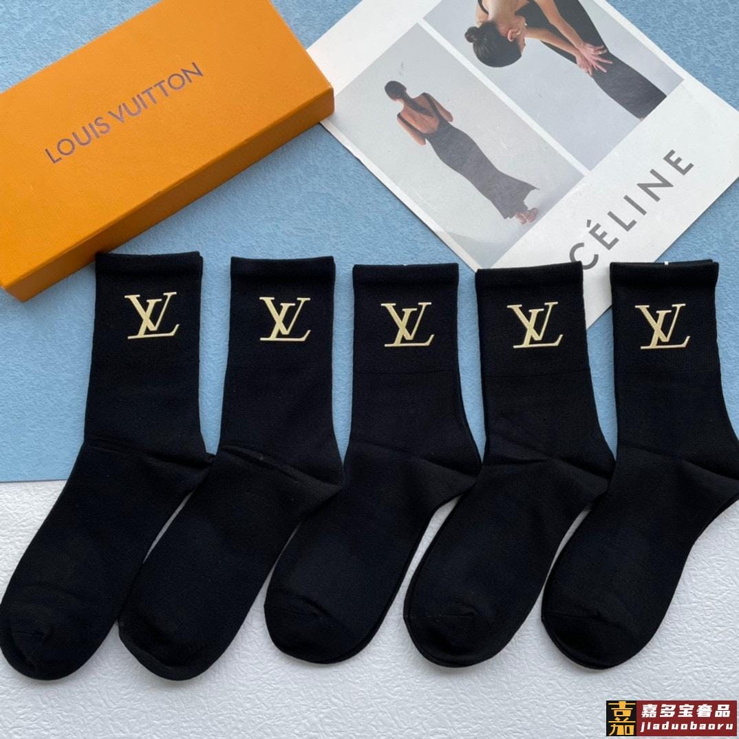 配包装一盒五双路易威登家新品烫金中筒女款袜子专柜同步长袜超级