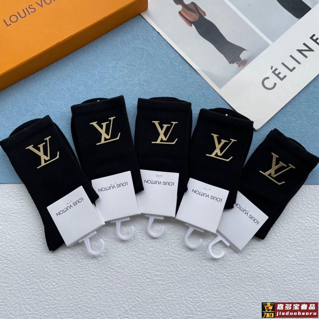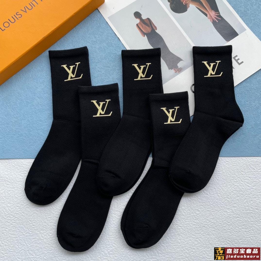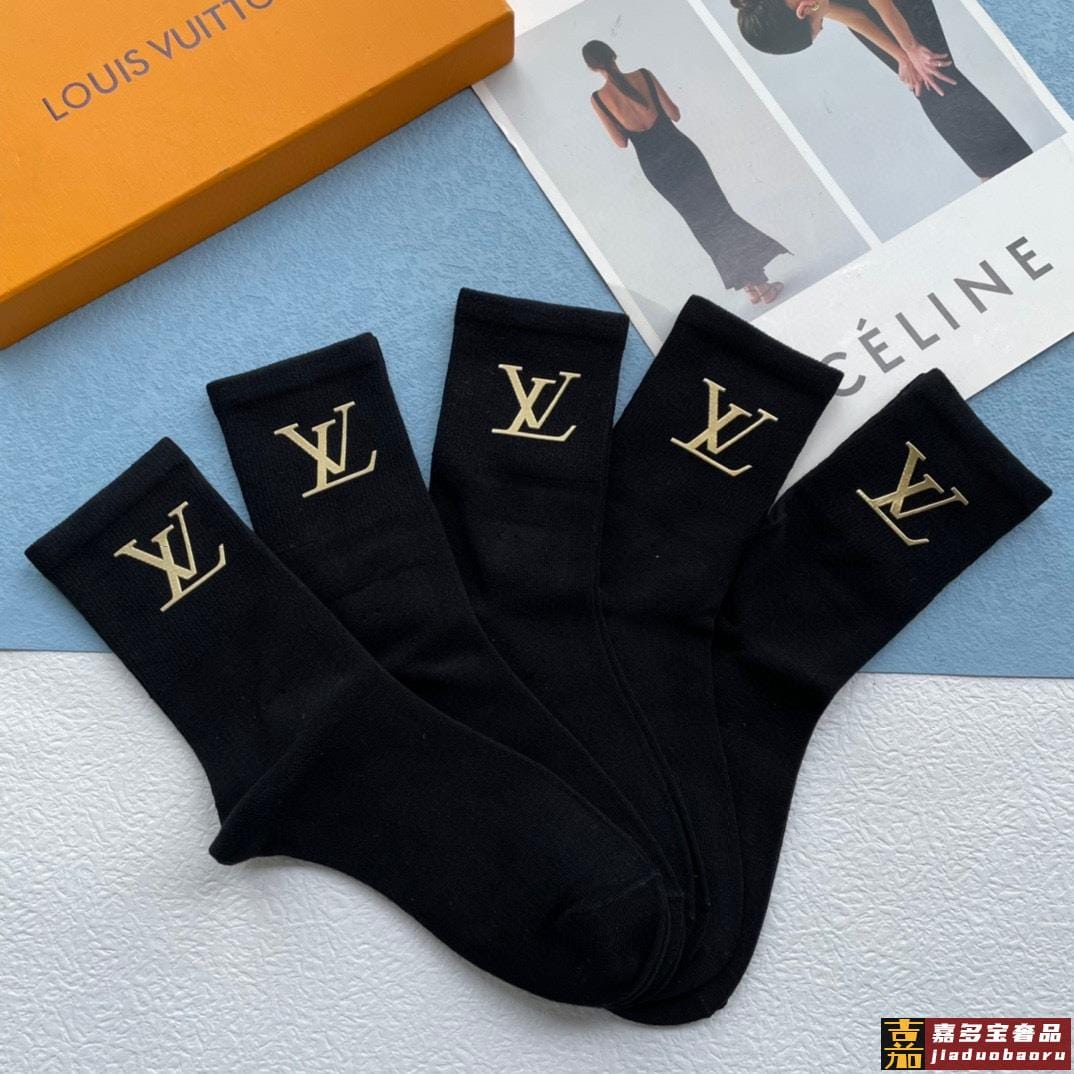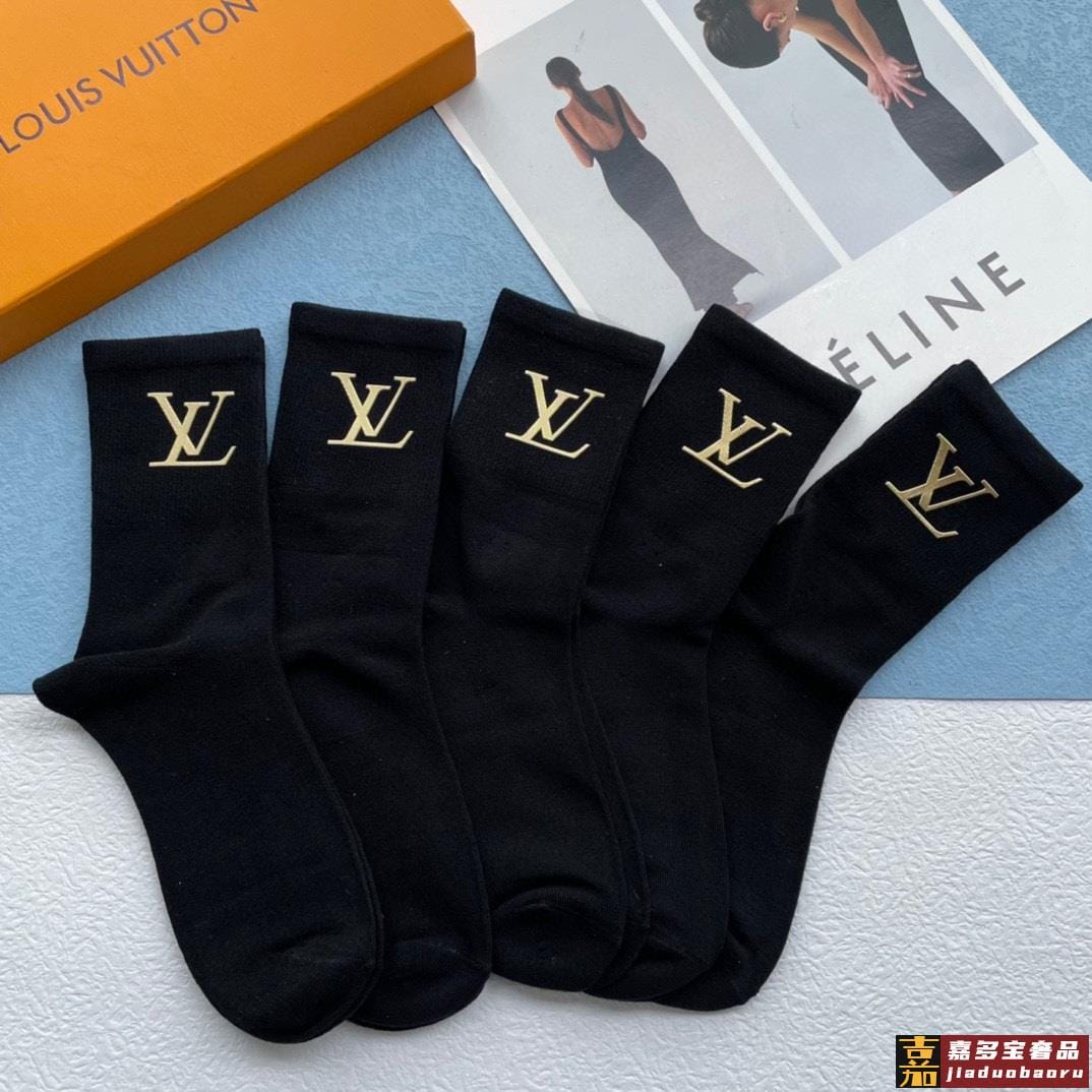 配包装一盒五双路易威登家新品烫金中筒女款袜子专柜同步长袜超级