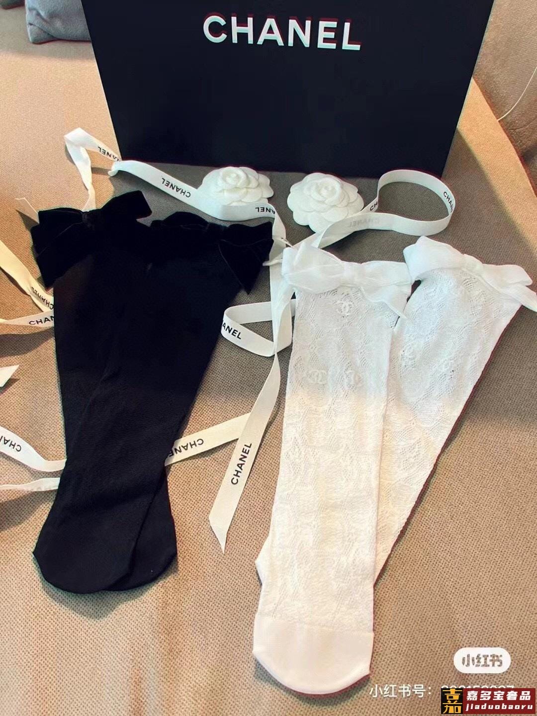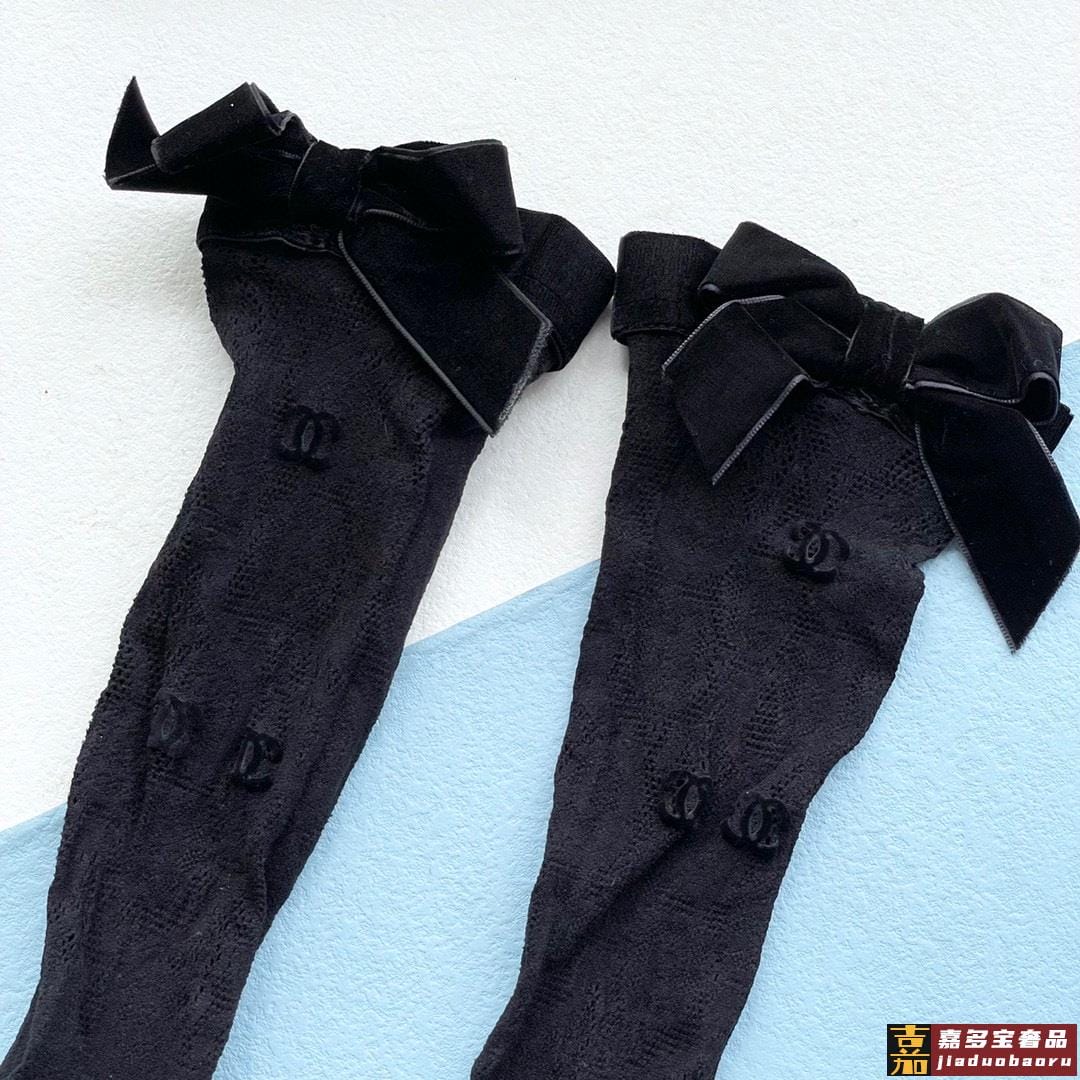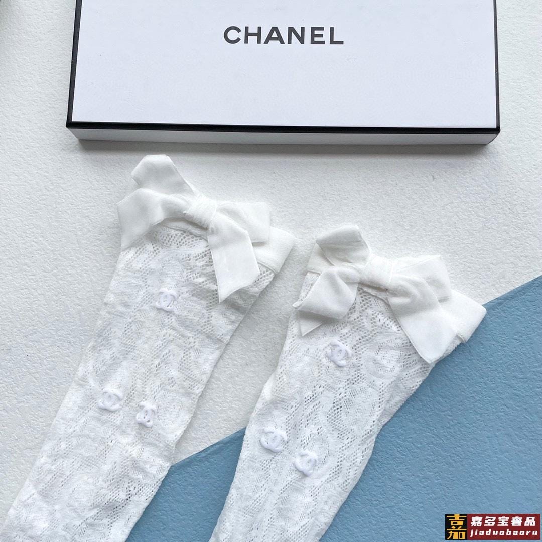 配包装一盒一双香奈儿双蕾丝蝴蝶结中筒袜爆款专柜在售原单货高版
