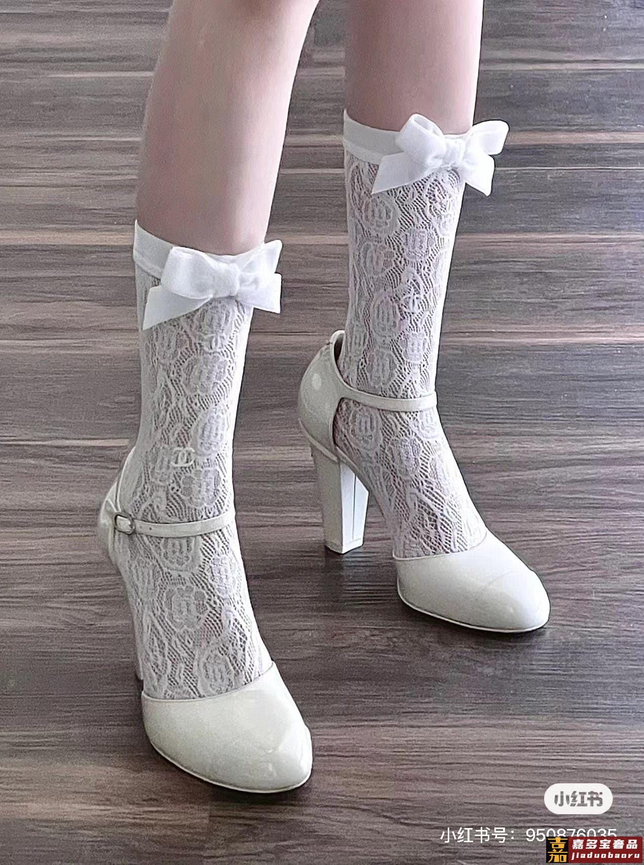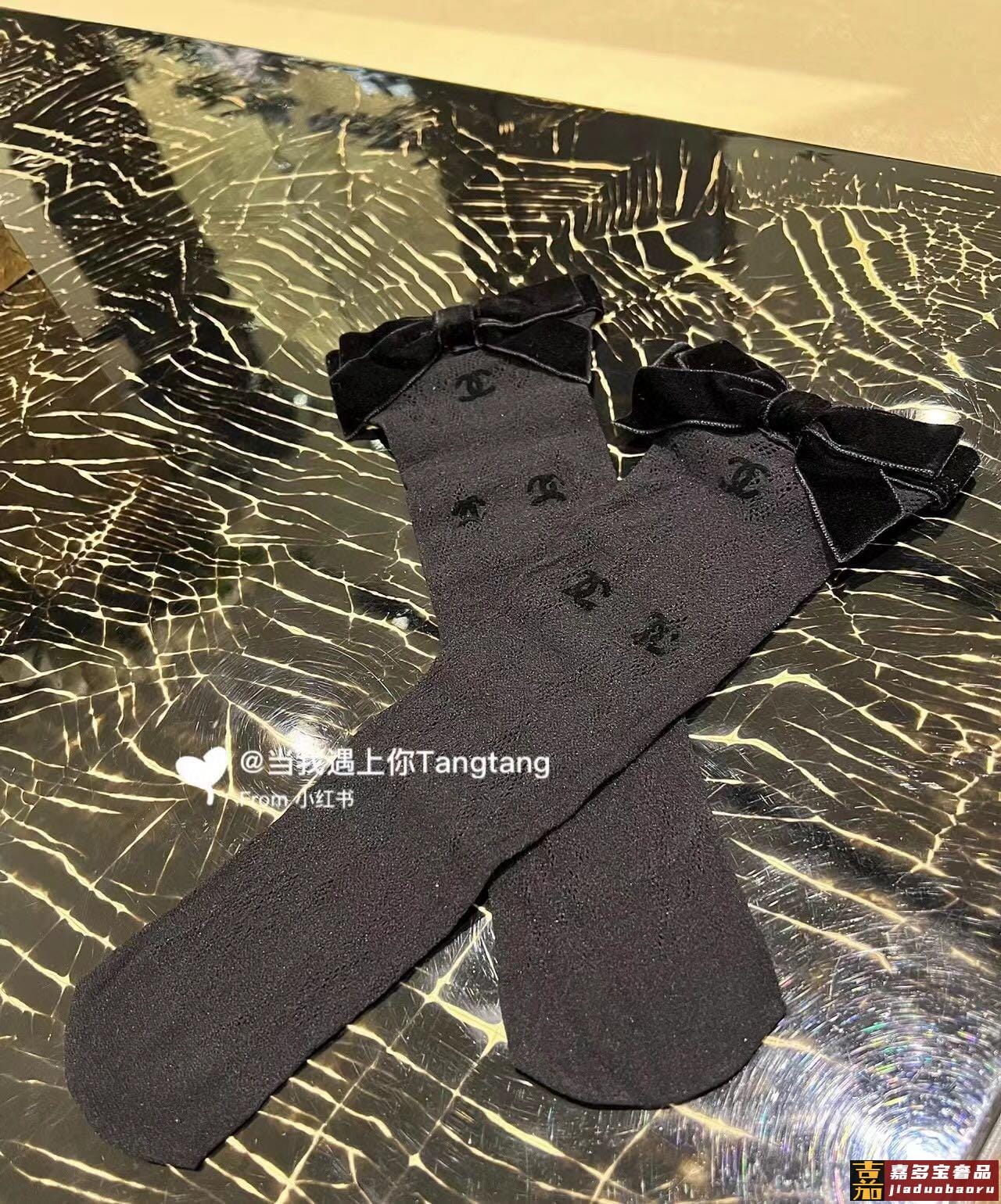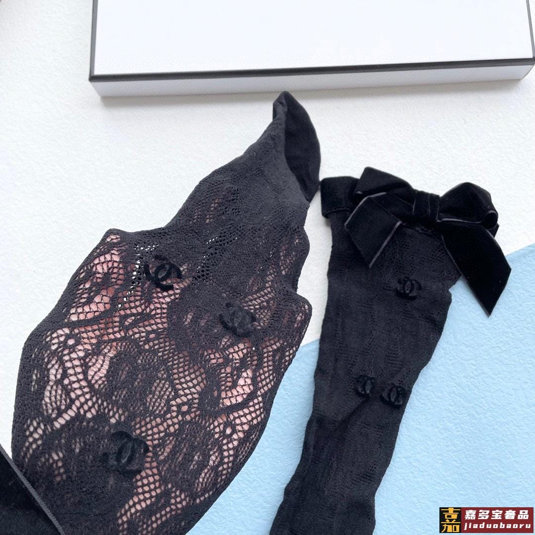 配包装一盒一双香奈儿双蕾丝蝴蝶结中筒袜爆款专柜在售原单货高版
