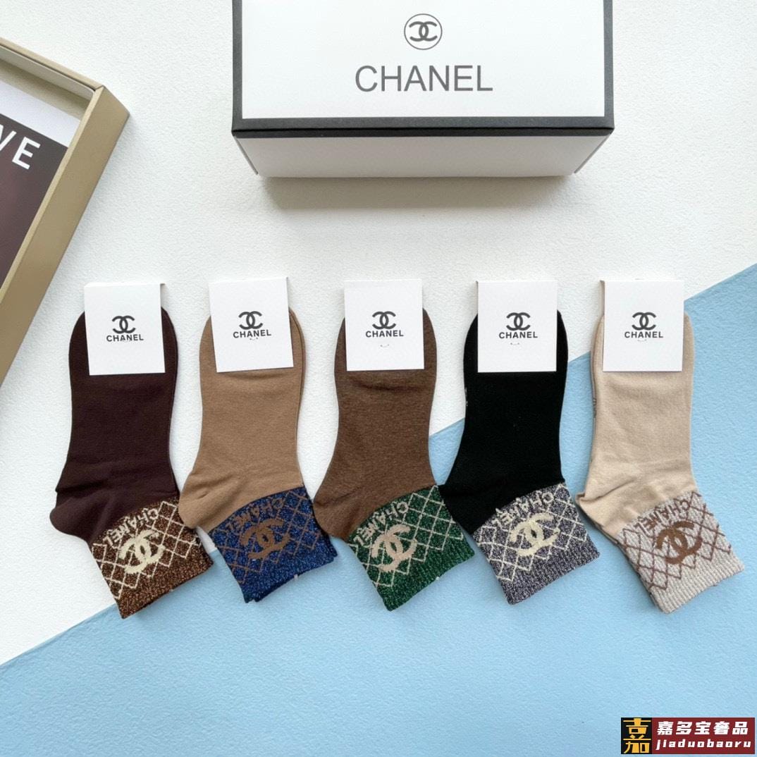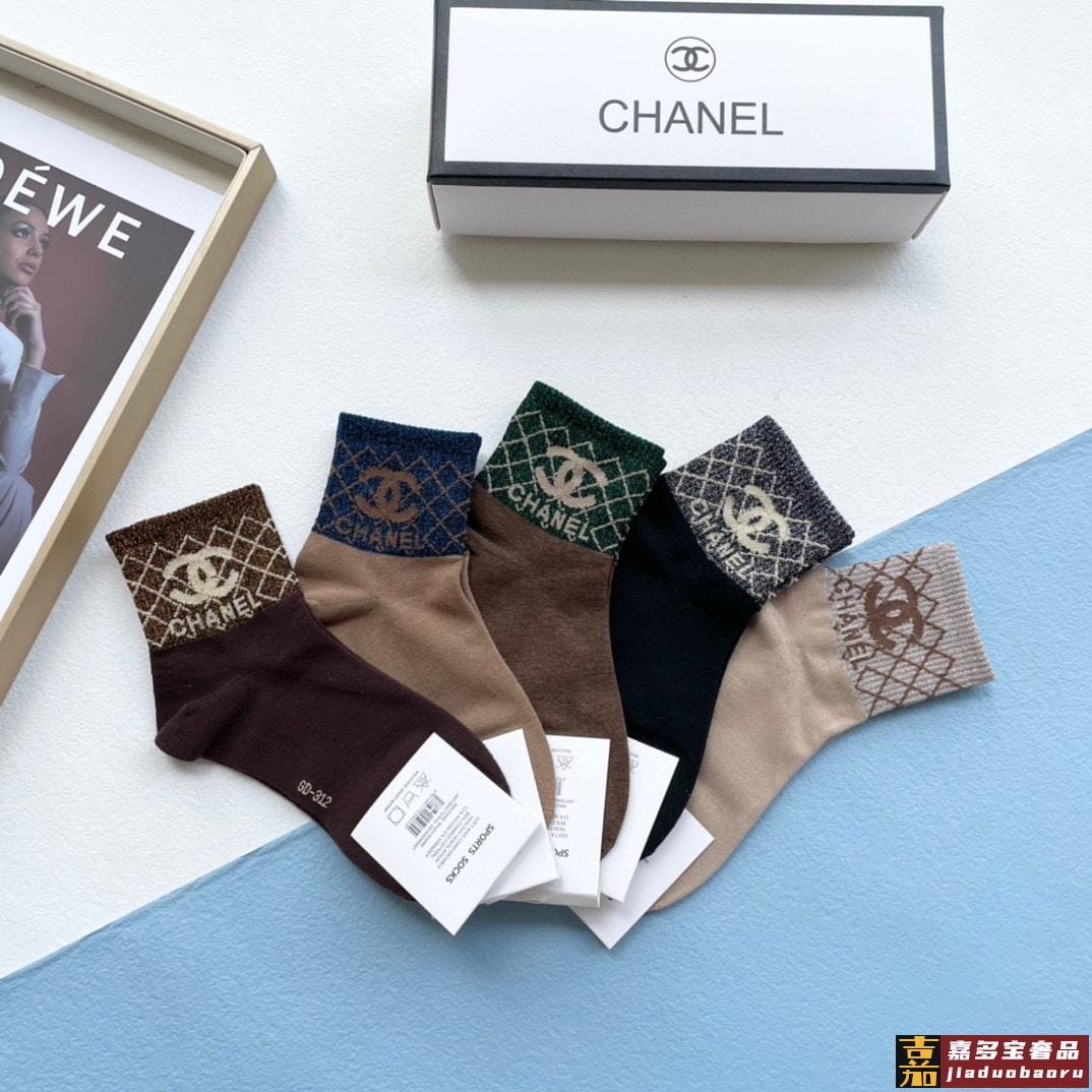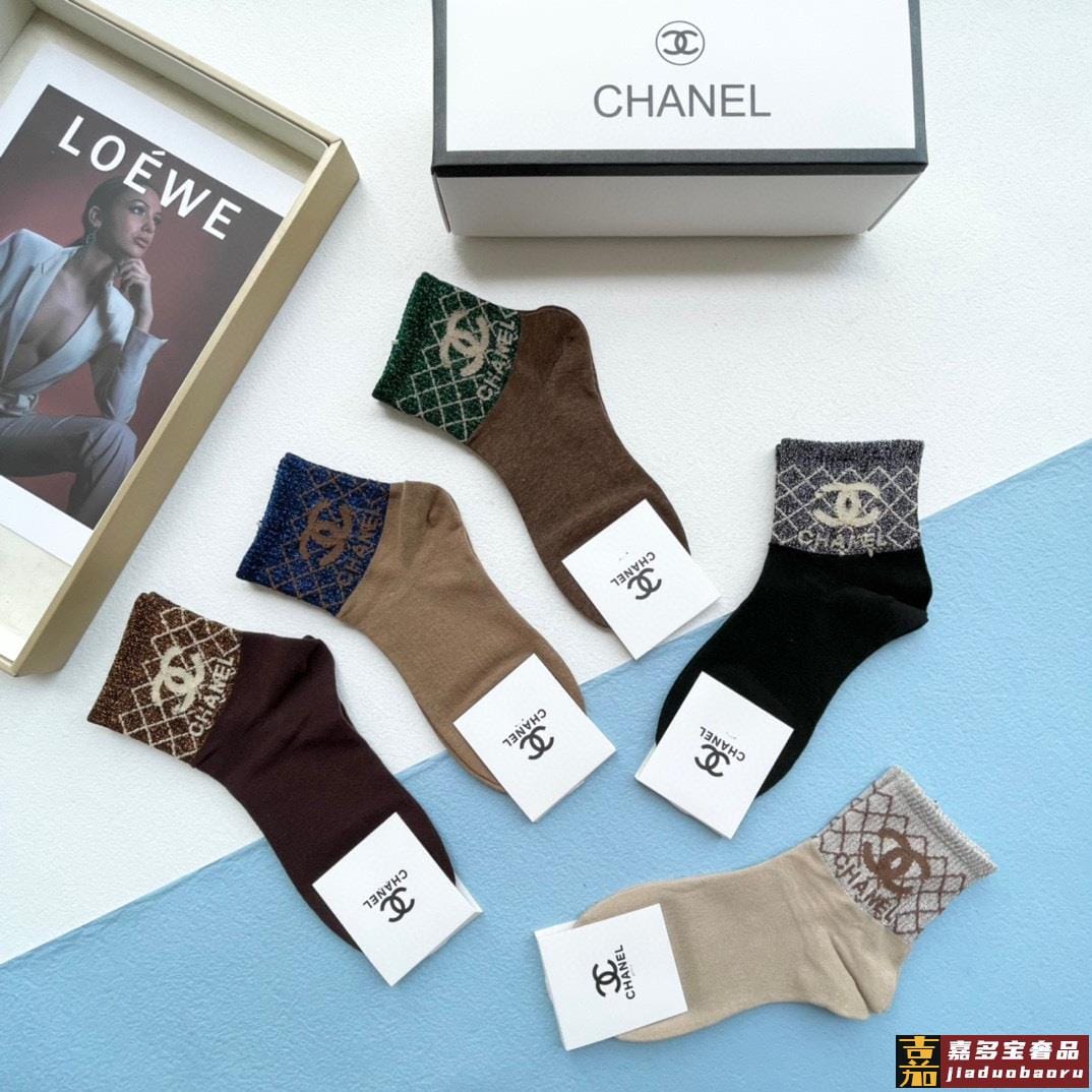 配包装一盒五双香奈儿小香家新品烫金纯黑短筒男女款袜子专柜同步