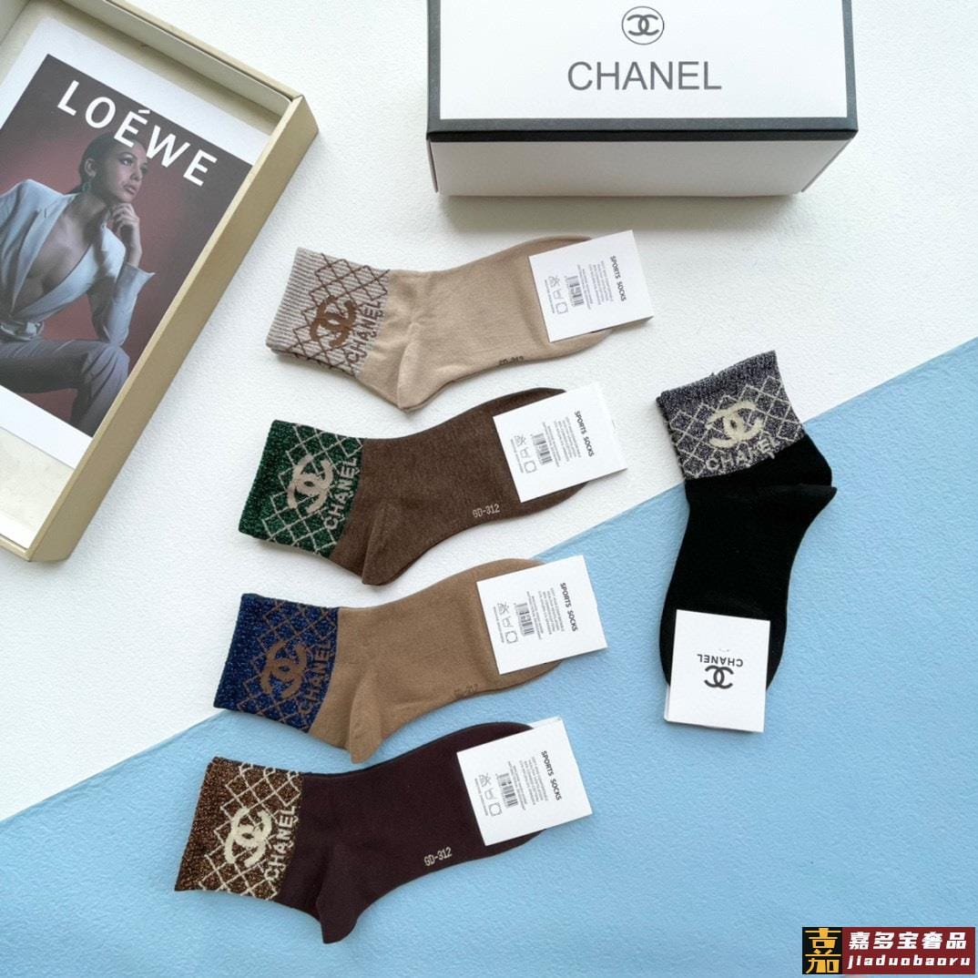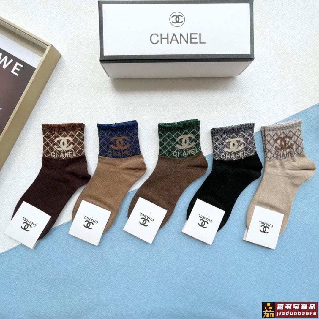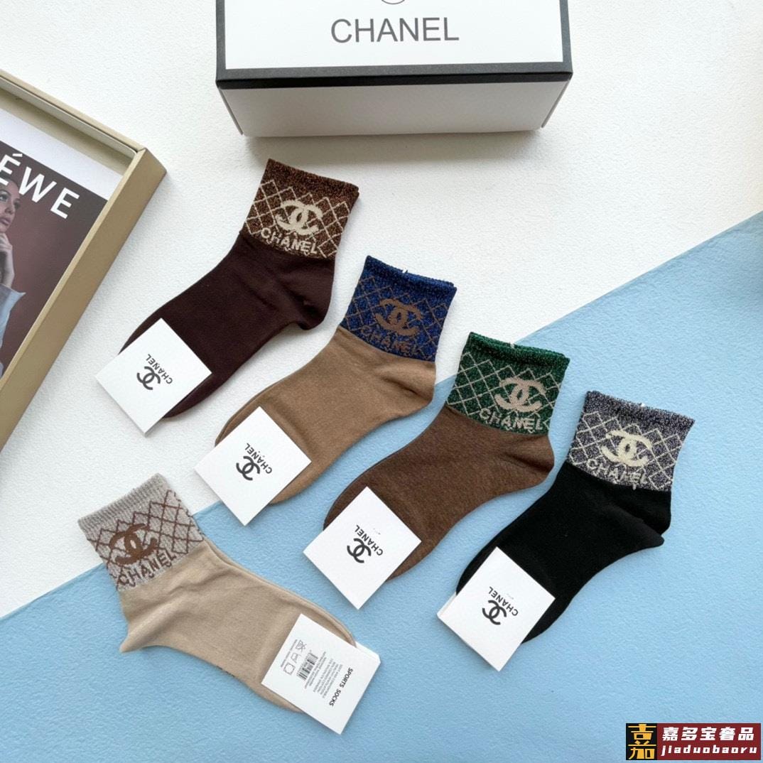 配包装一盒五双香奈儿小香家新品烫金纯黑短筒男女款袜子专柜同步