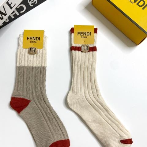 配包装一盒双芬迪经典字母粗线双针针织纯棉中筒袜重工装饰个性时