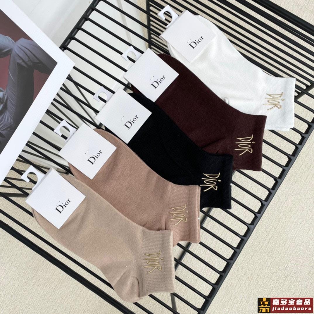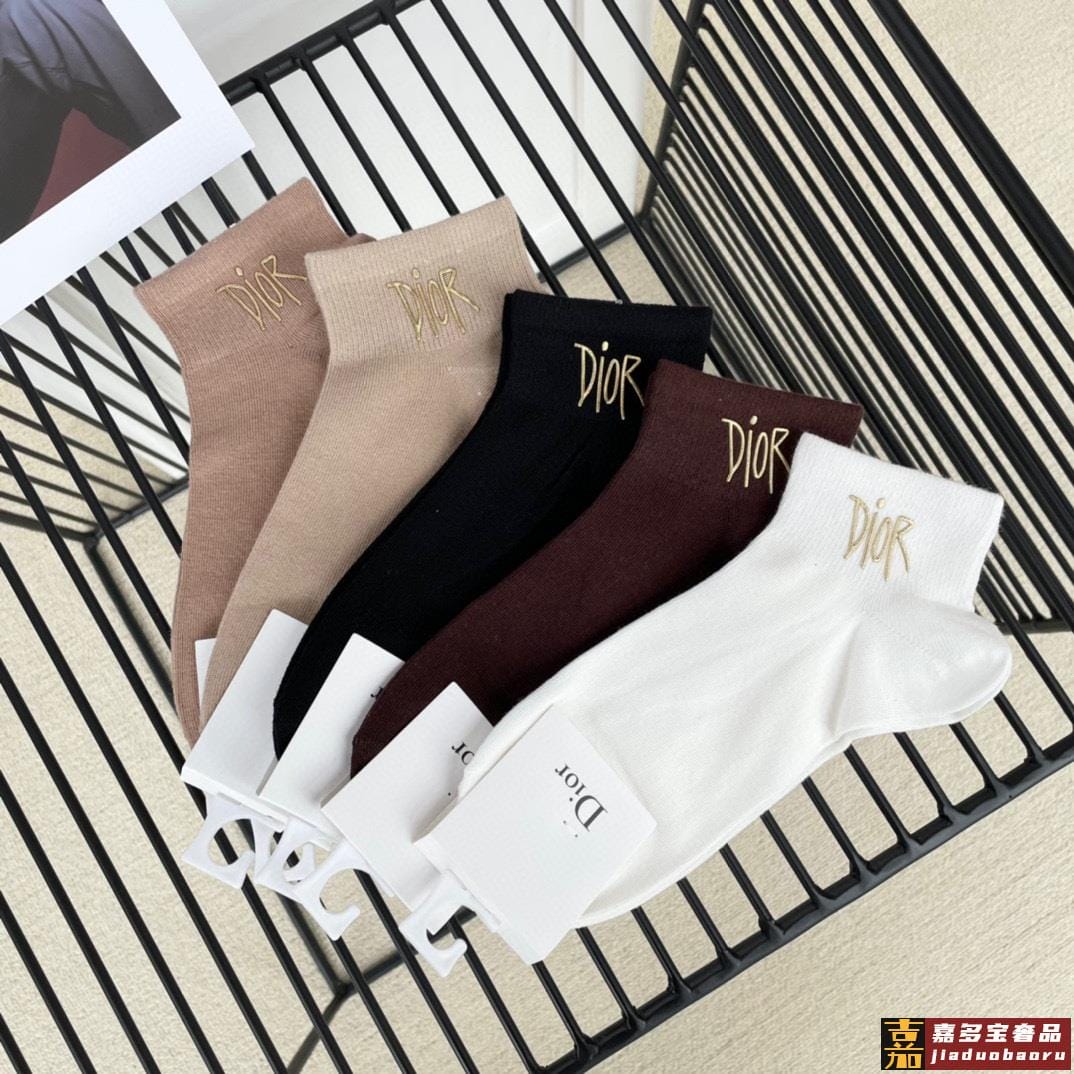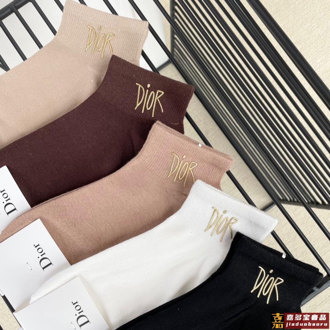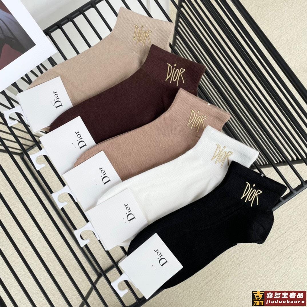 配包装一盒五双迪奥家新品烫金纯黑短筒男女款袜子专柜同步长袜超