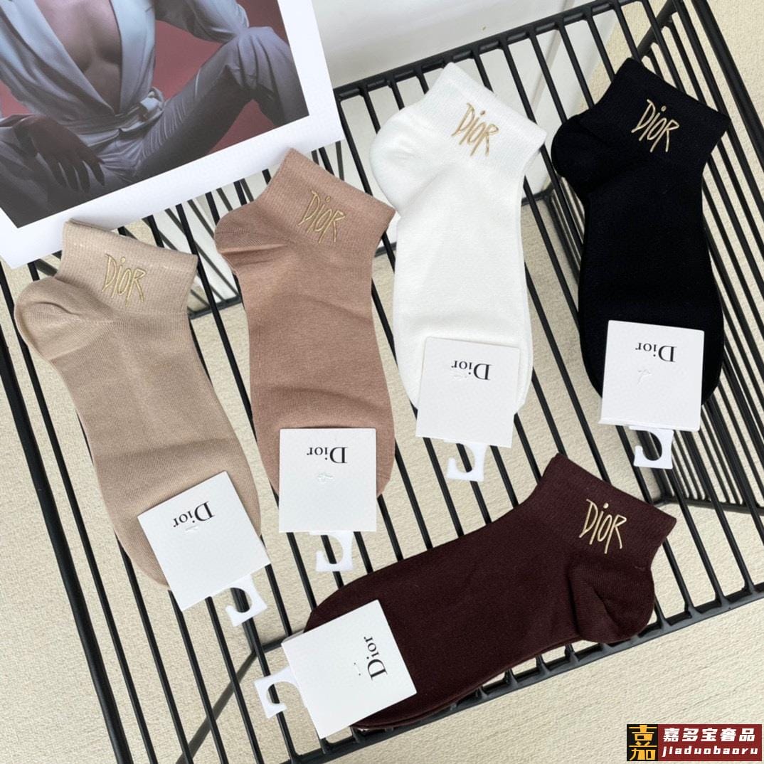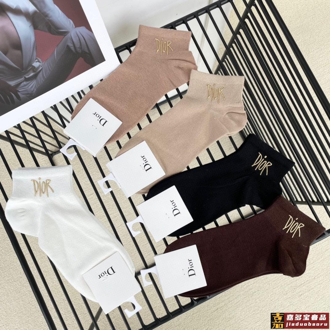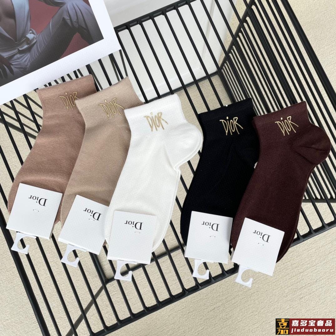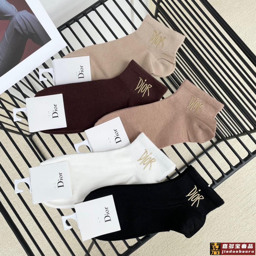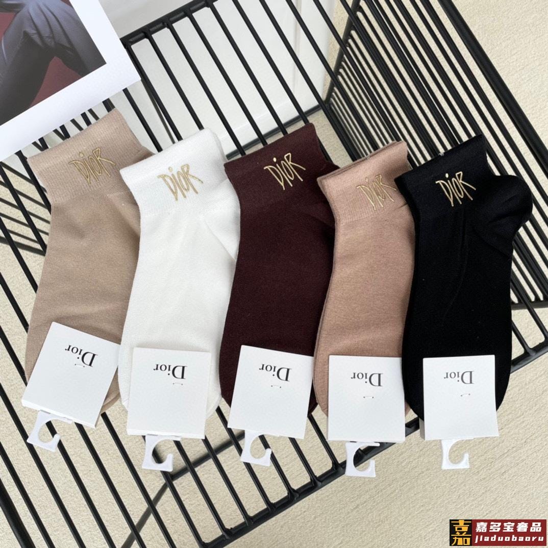 配包装一盒五双迪奥家新品烫金纯黑短筒男女款袜子专柜同步长袜超