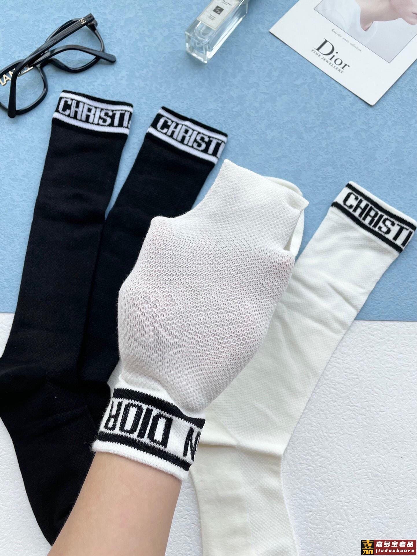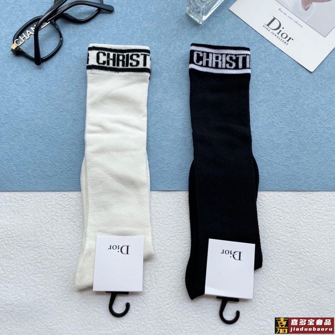 配包装一盒五双迪奥家新品烫金纯黑短筒男女款袜子专柜同步长袜超
