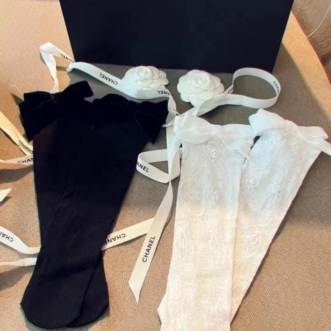 配包装一盒一双香奈儿双蕾丝蝴蝶结中筒袜爆款专柜在售原单货高版