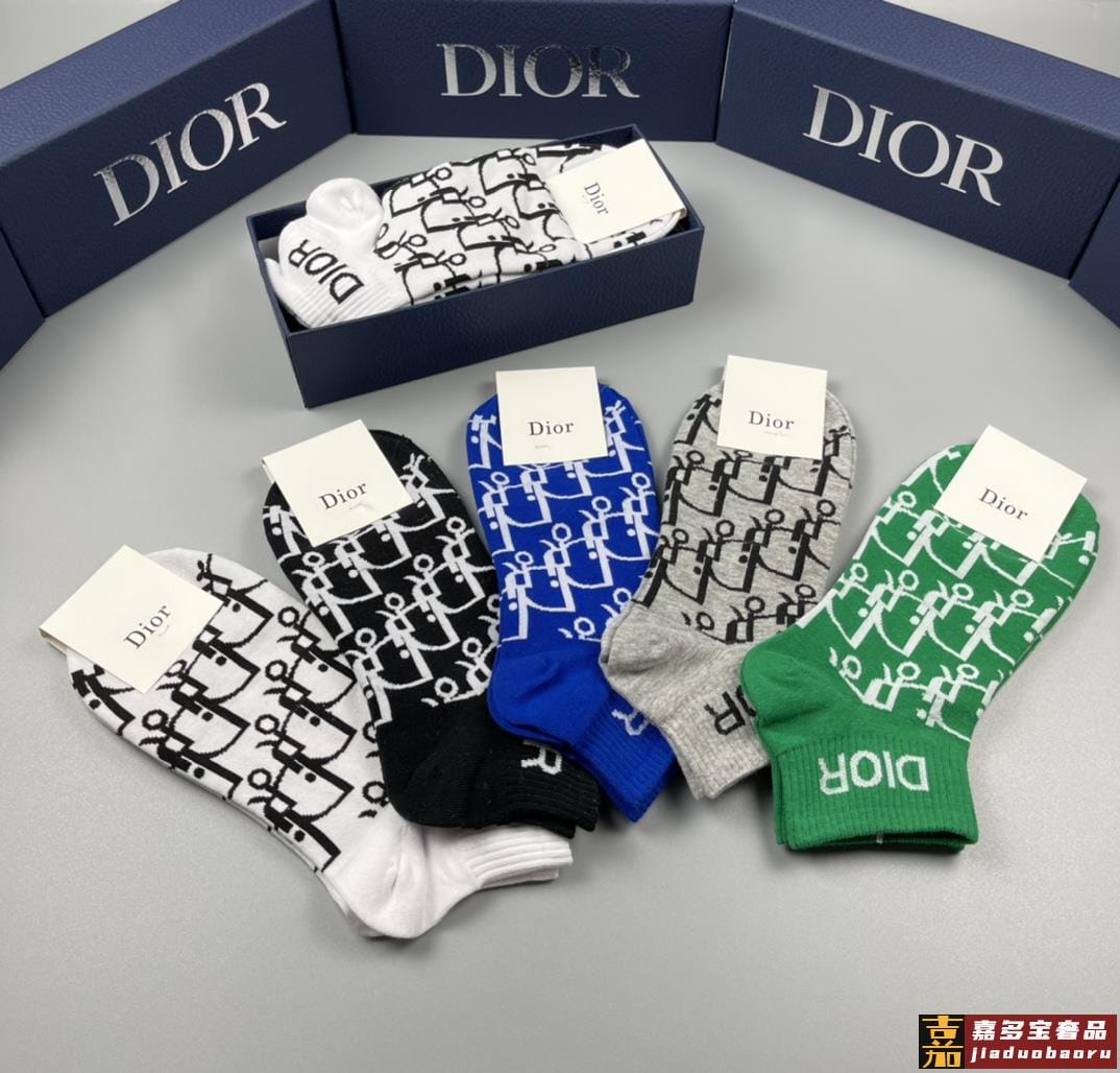配包装一盒五双迪奥新款短款男女款袜子专柜同步船袜系列简单大气