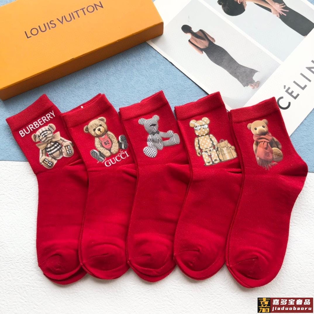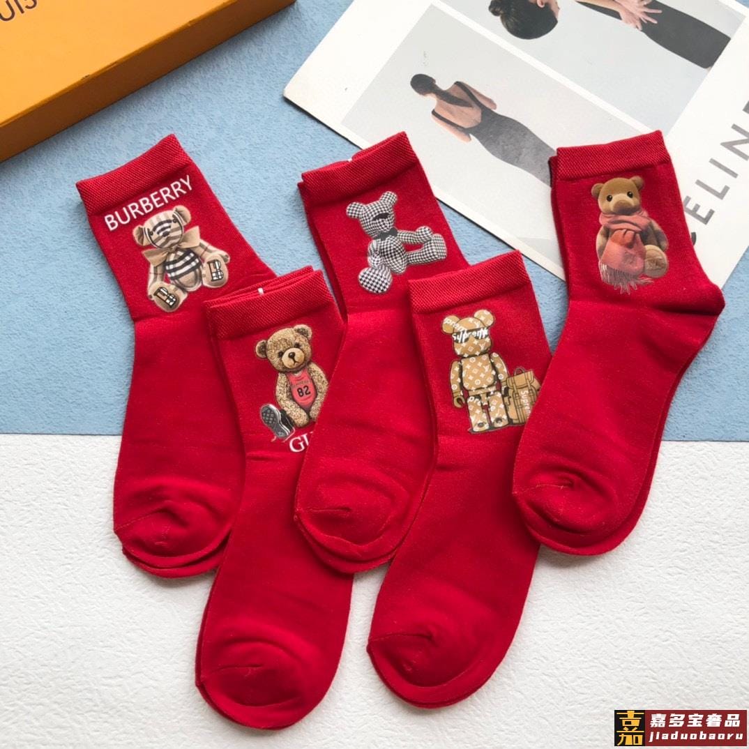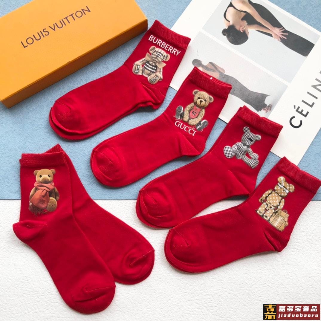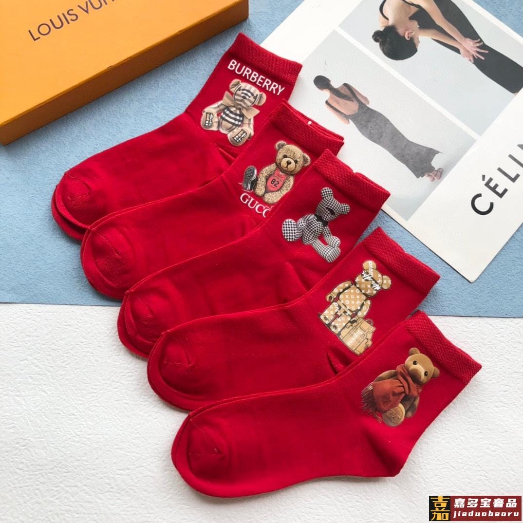 配包装一盒五双欧美大牌爆款红色过年长筒袜高版本好看到爆炸欧美