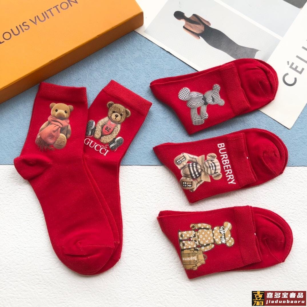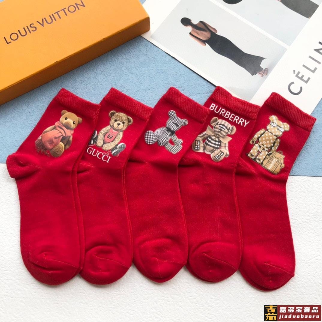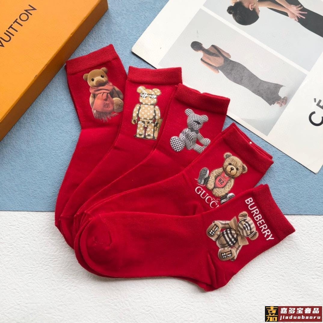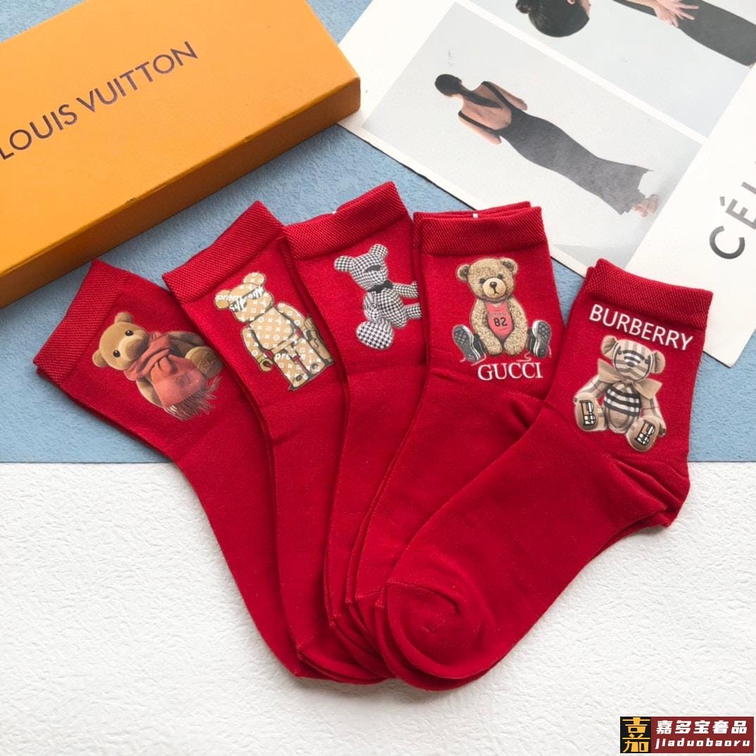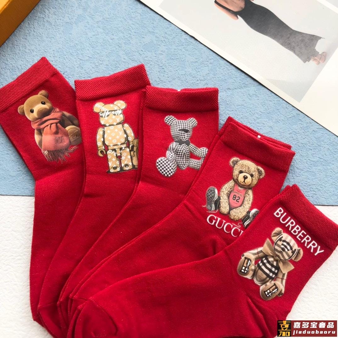 配包装一盒五双欧美大牌爆款红色过年长筒袜高版本好看到爆炸欧美