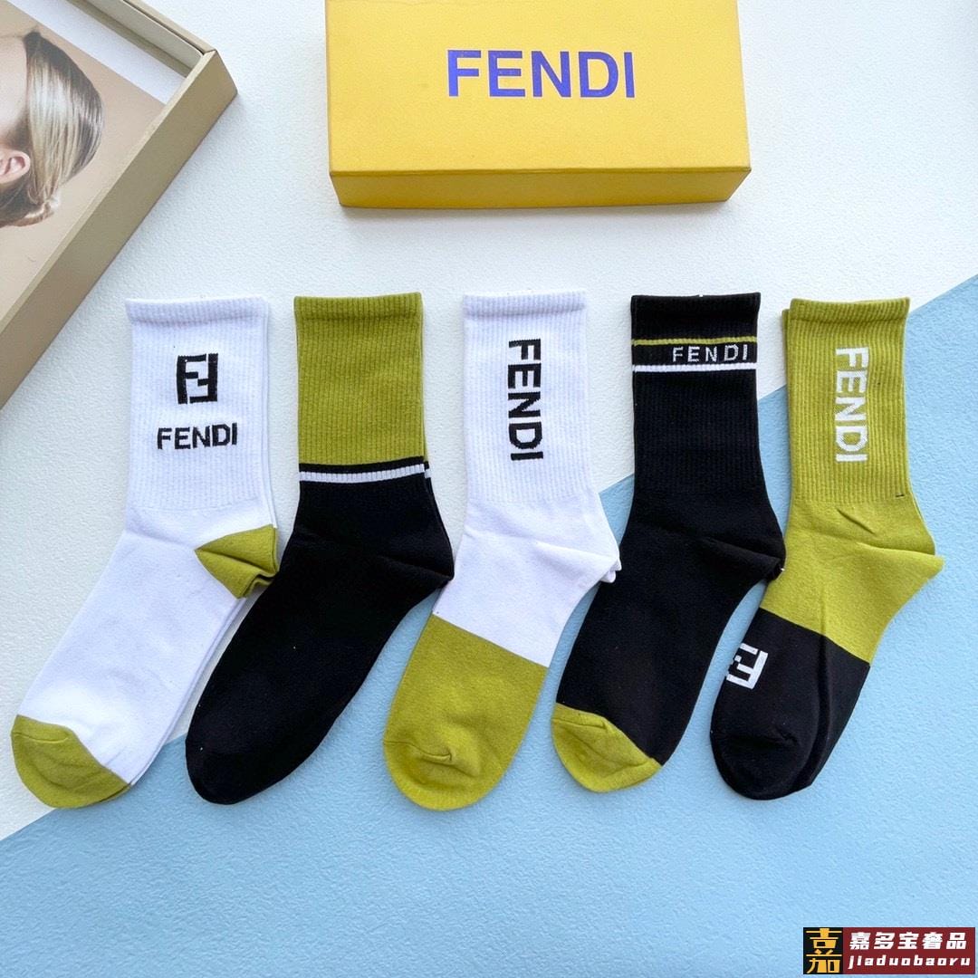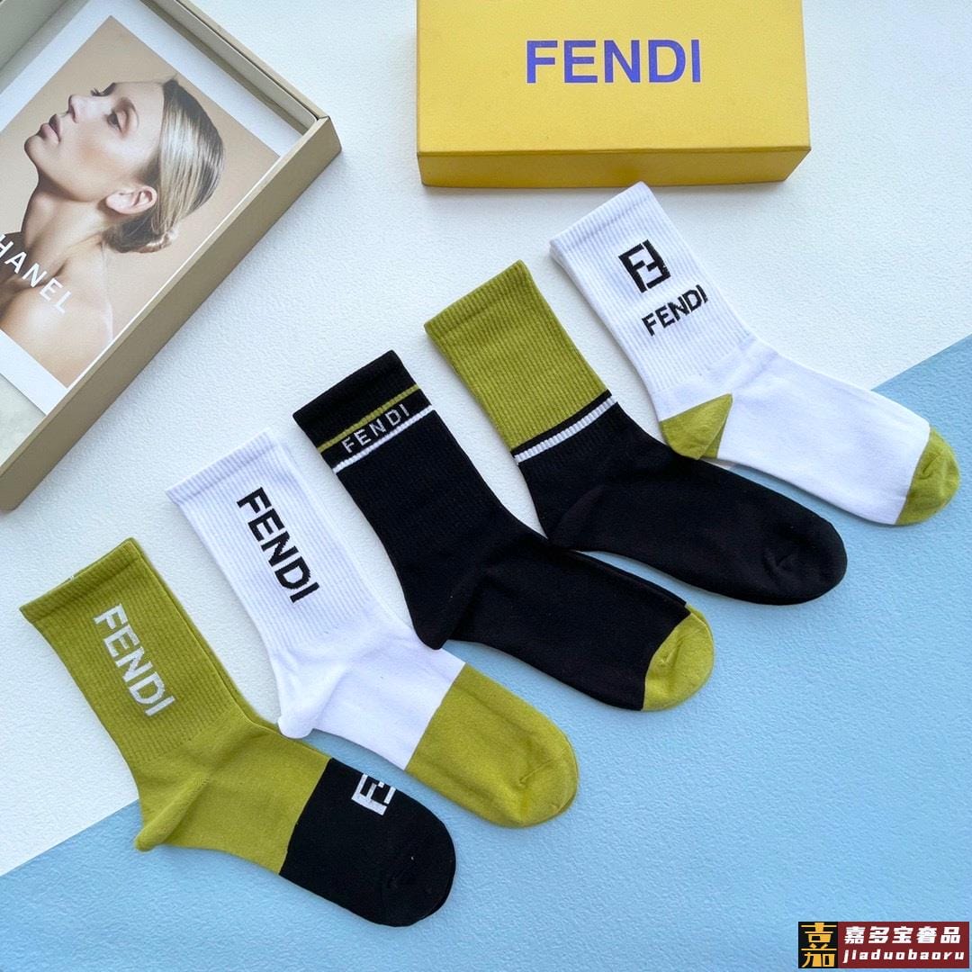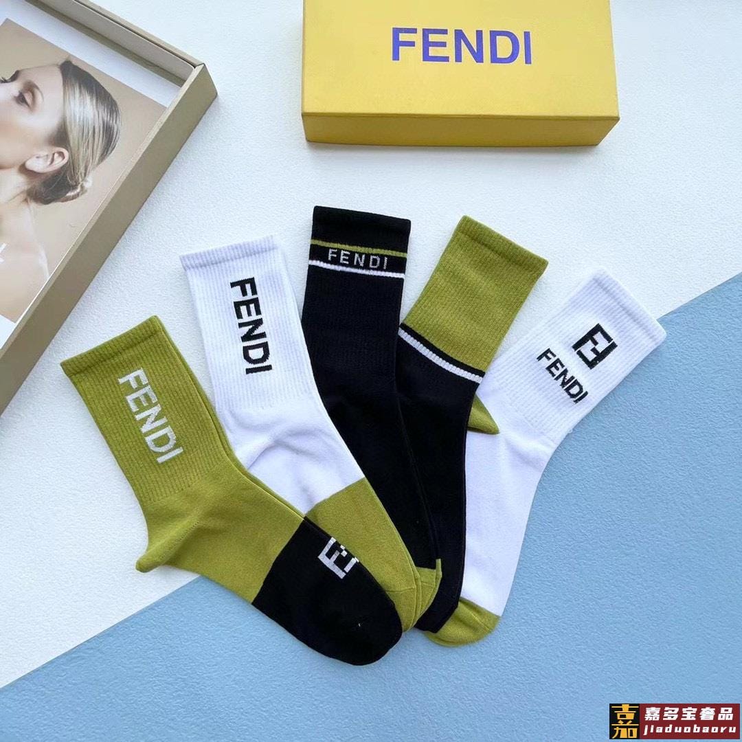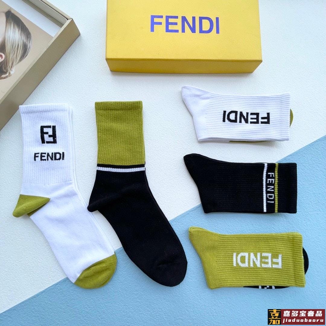 配包装一盒五双芬迪大新品高筒袜子超级经典的双标志纯棉材质制造