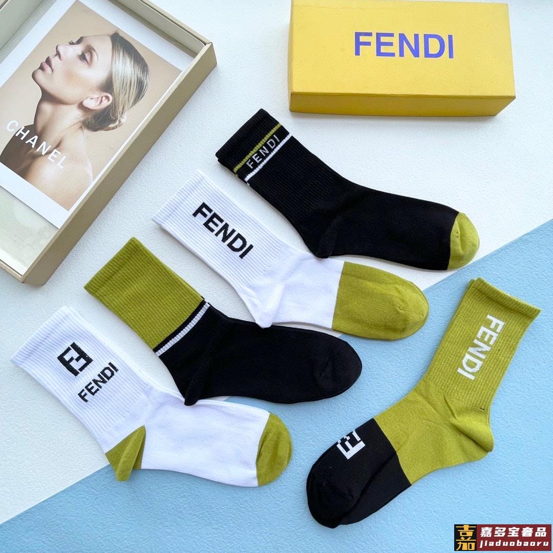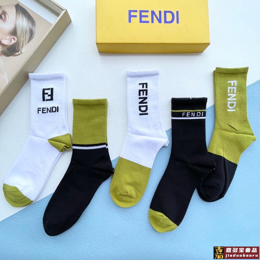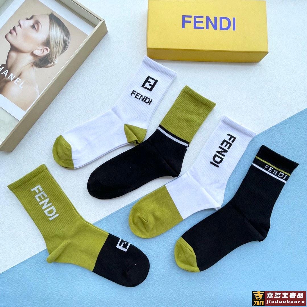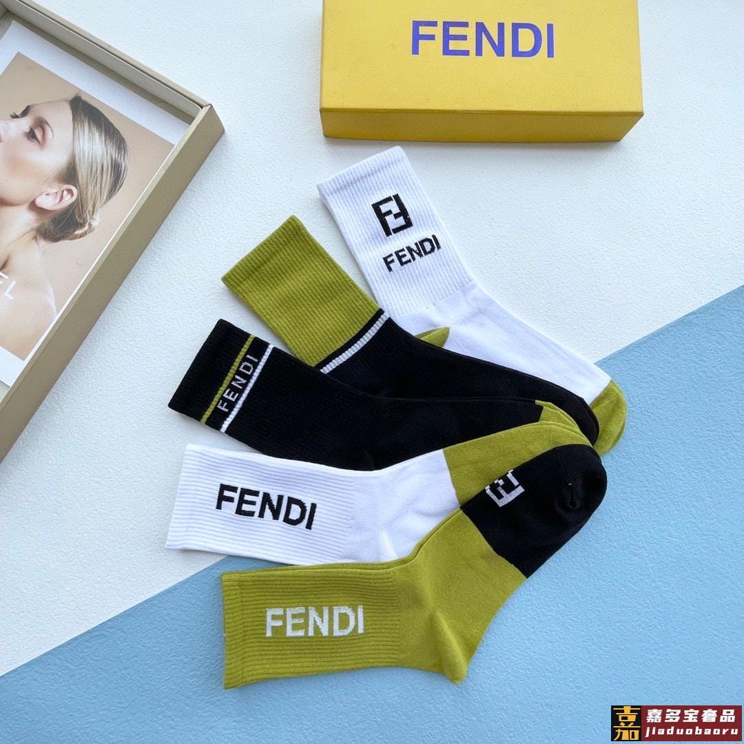 配包装一盒五双芬迪大新品高筒袜子超级经典的双标志纯棉材质制造