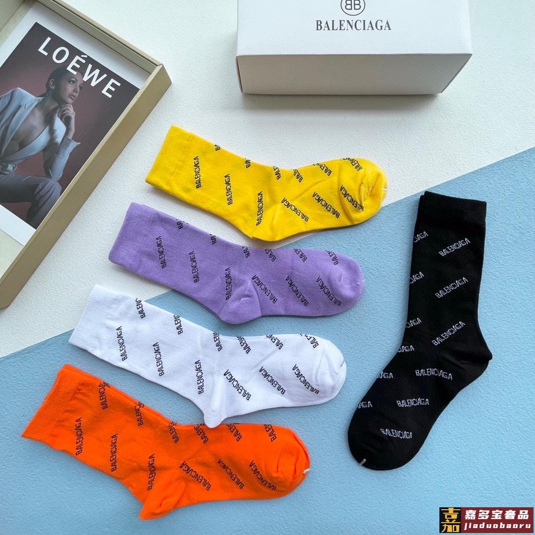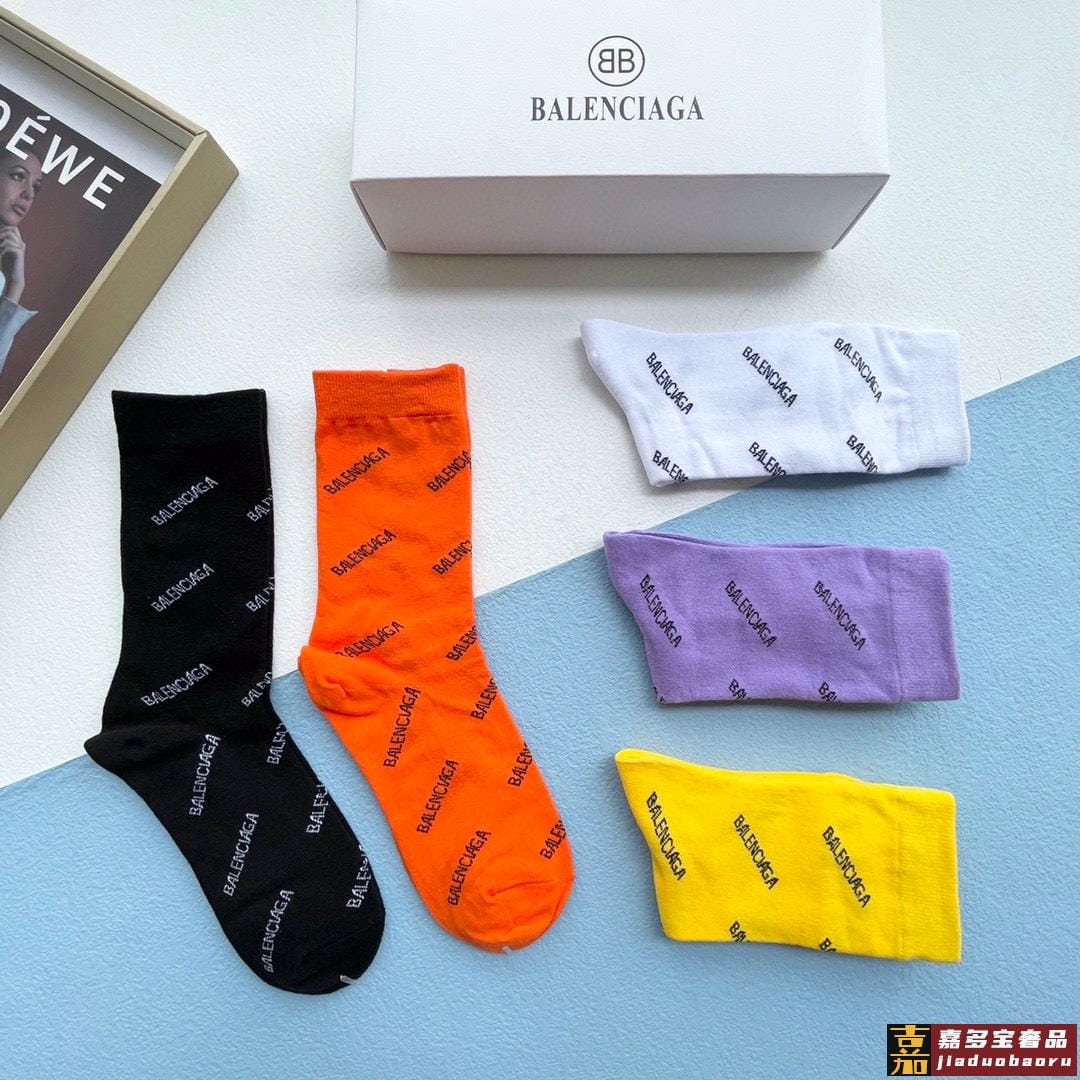 配包装一盒五双欧美大牌巴黎世家好看到爆炸欧美大牌高筒袜男女款