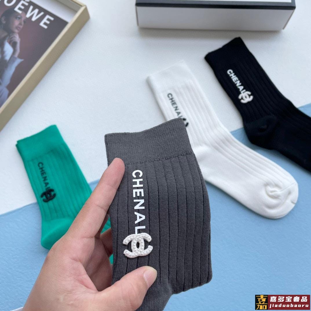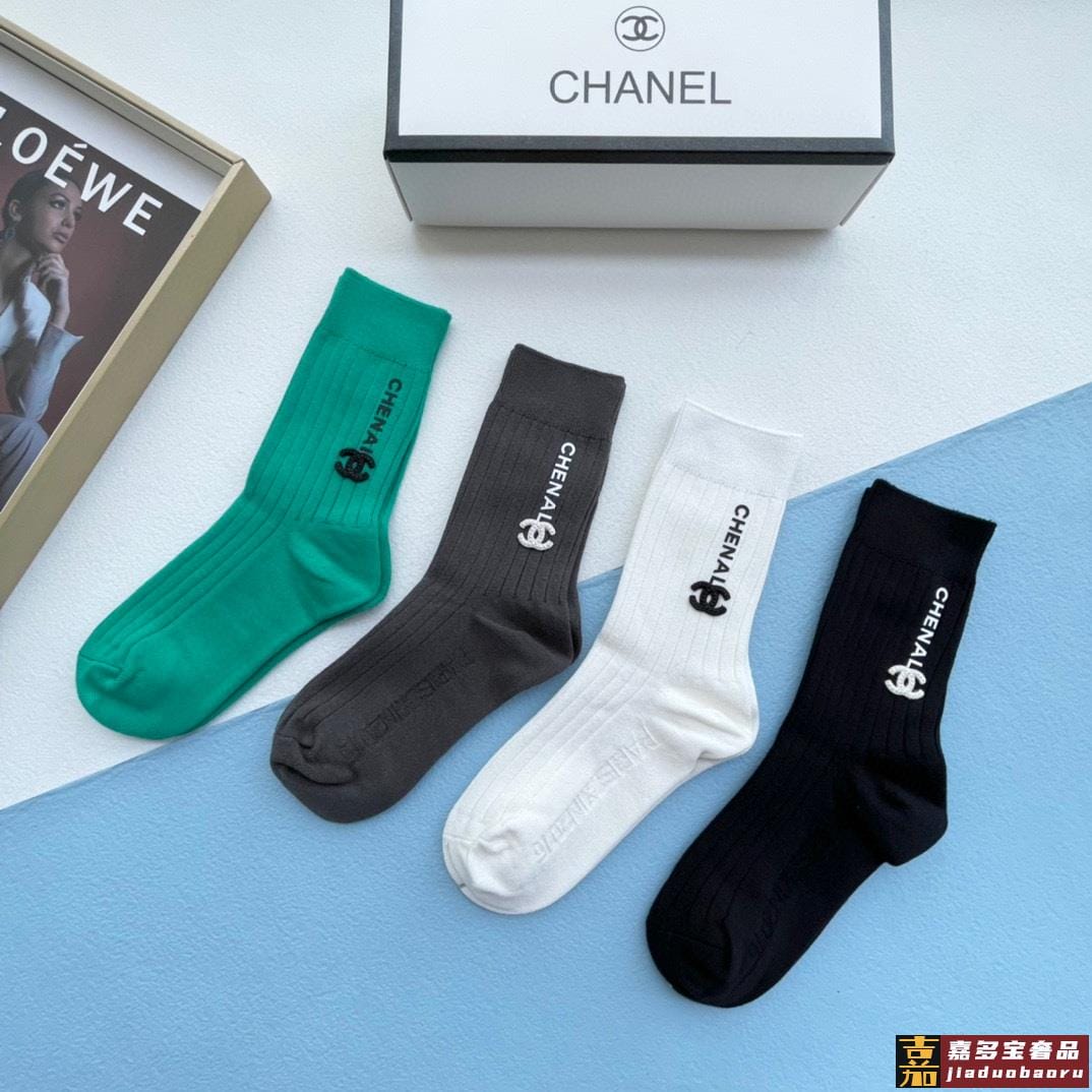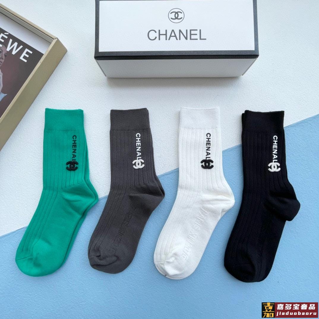 配包装一盒四双香奈儿高品质超级爆款网红袜子小香家官网同步刺绣