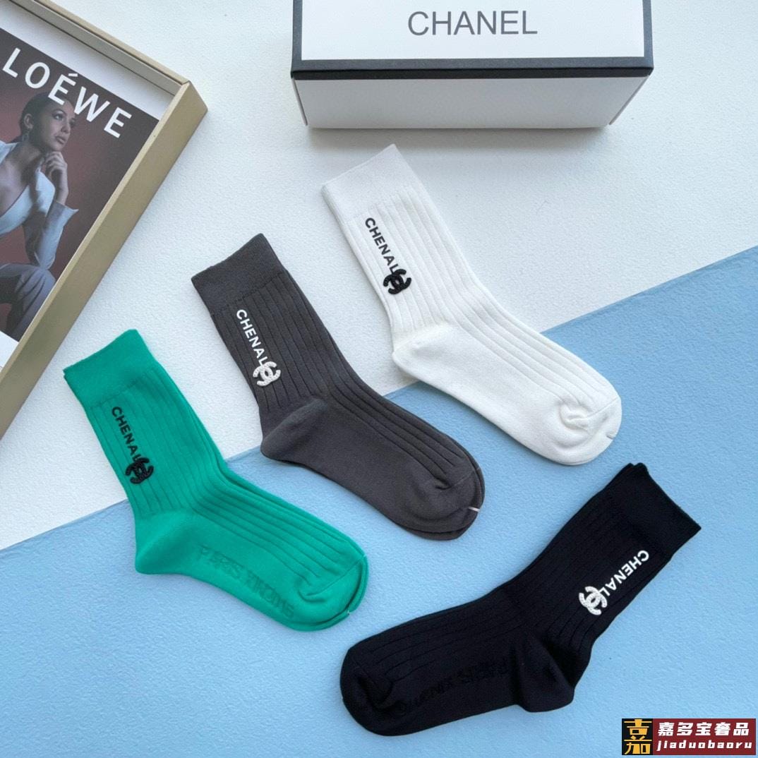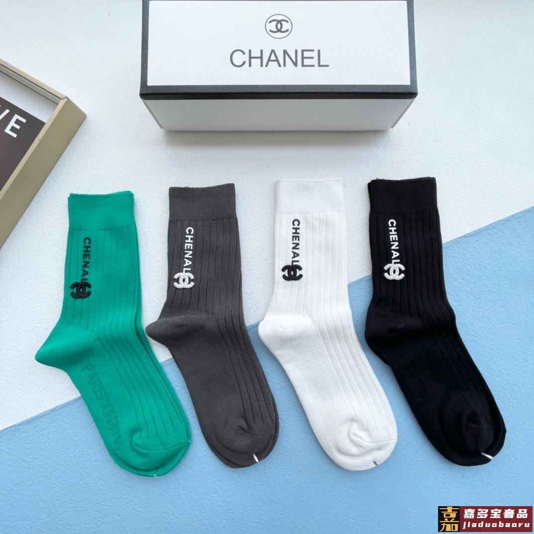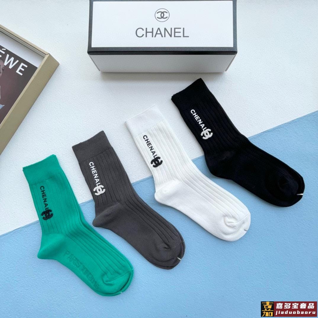 配包装一盒四双香奈儿高品质超级爆款网红袜子小香家官网同步刺绣