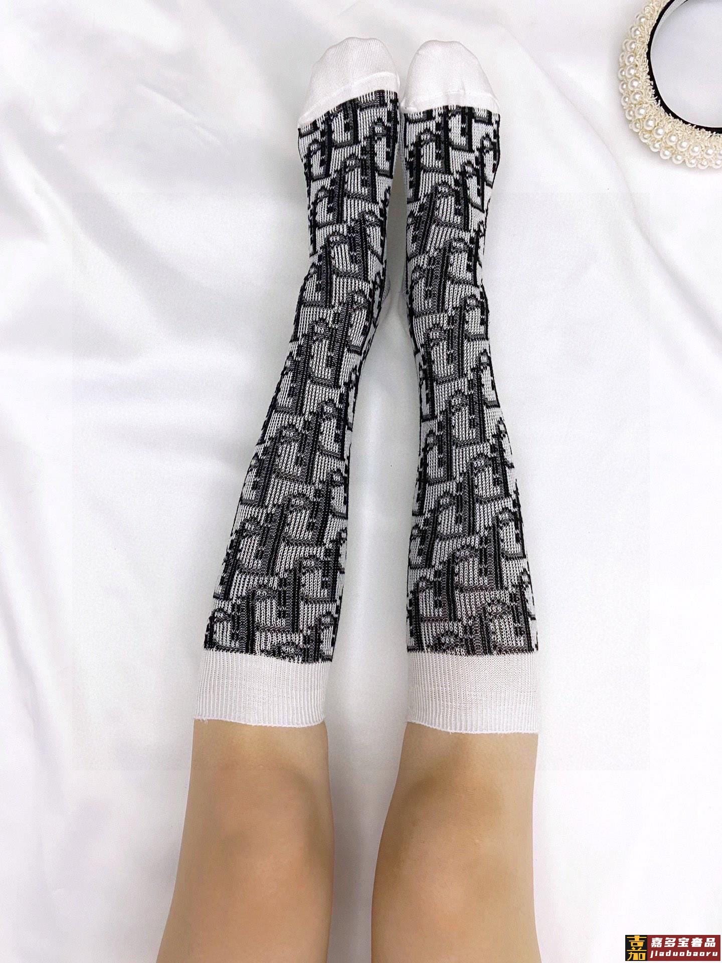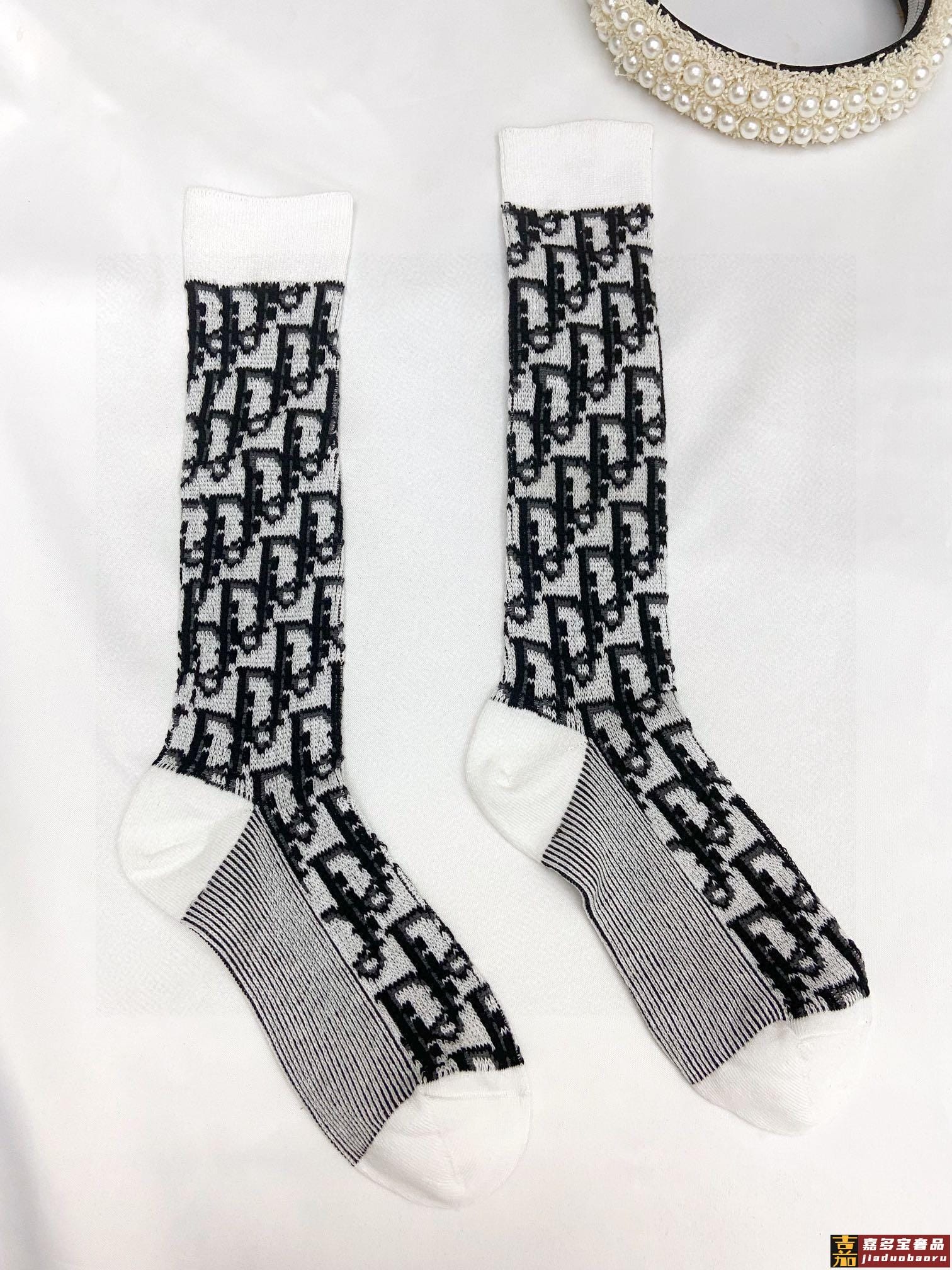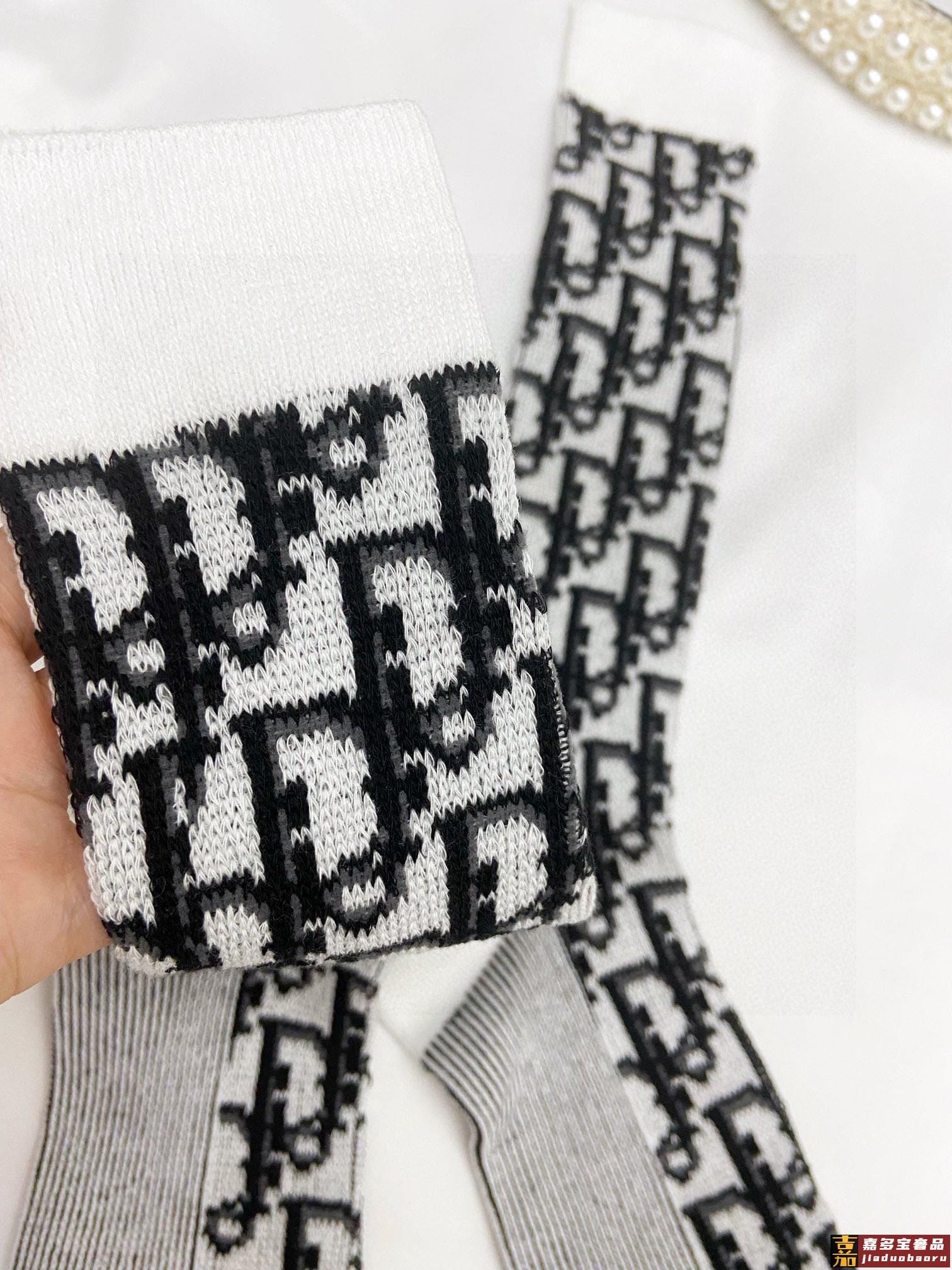 配包装一盒一双迪奥棉混纺双针针织老花中筒袜爆款专柜在售原单货