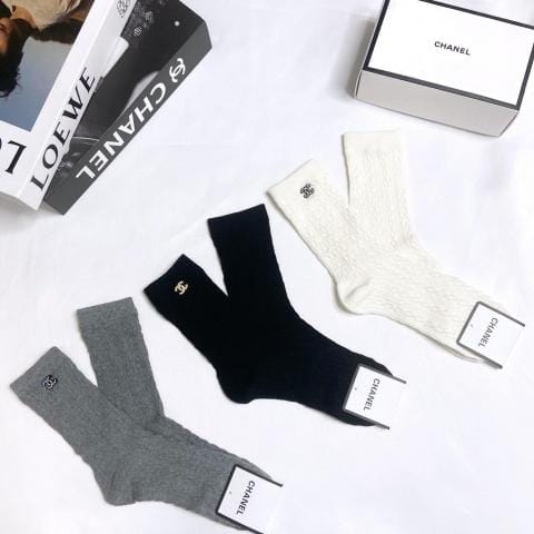 配包装一盒双香奈儿双水钻纯棉立体浮雕中筒袜堆堆袜手缝配饰重工