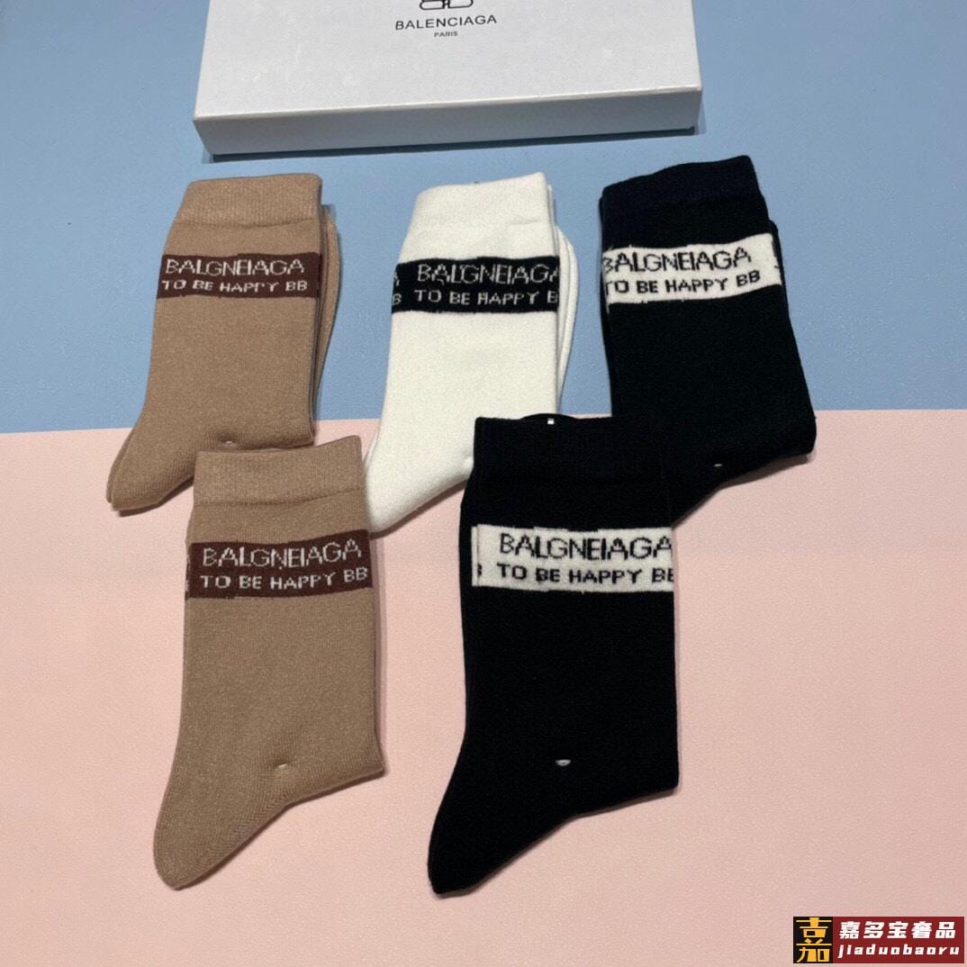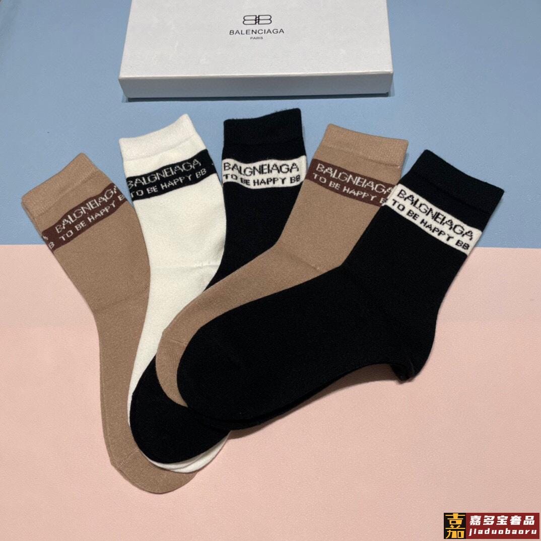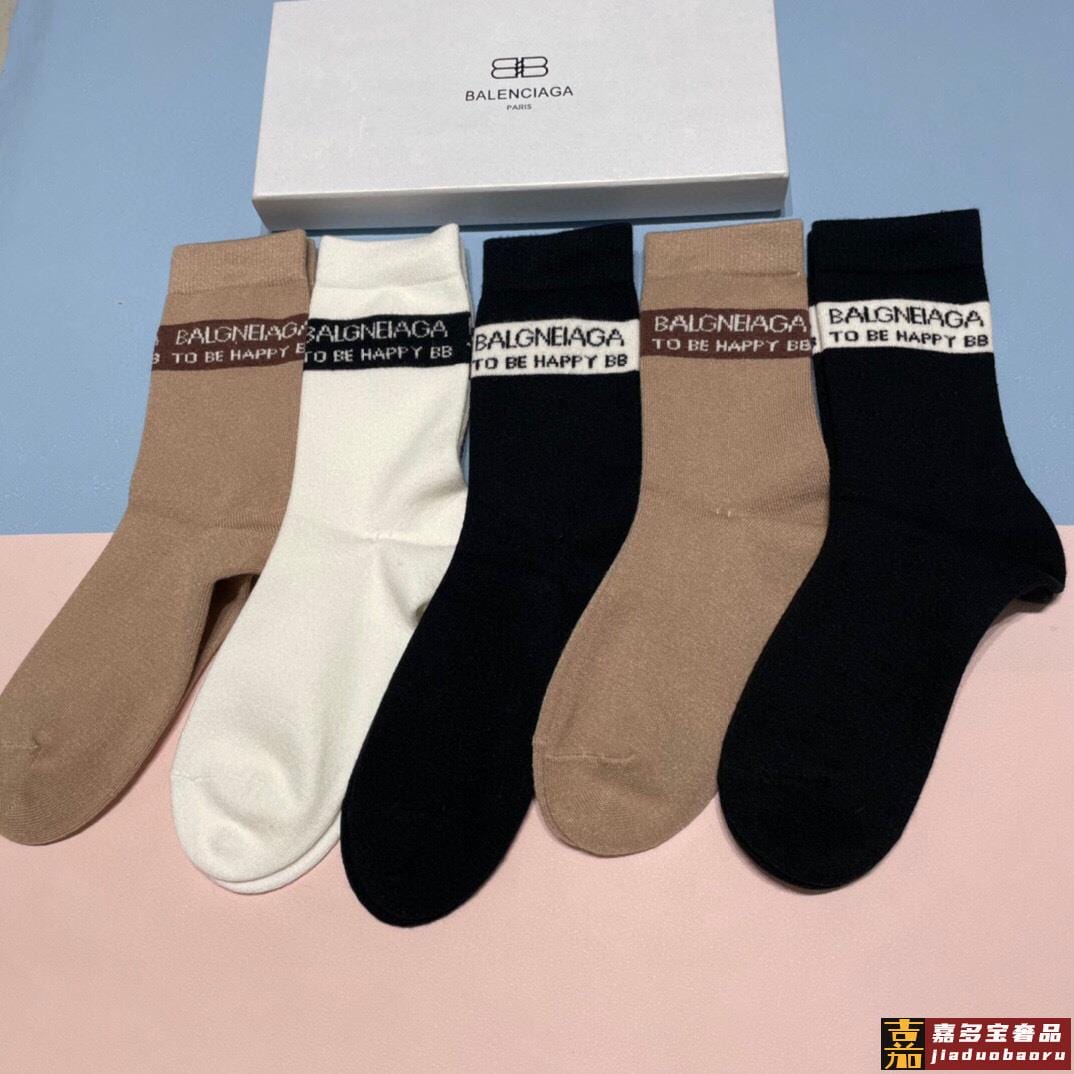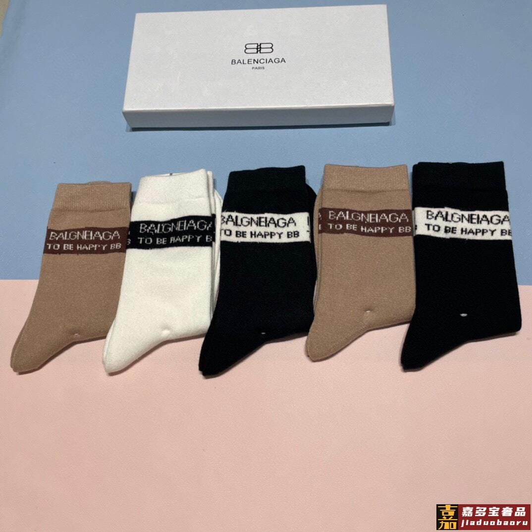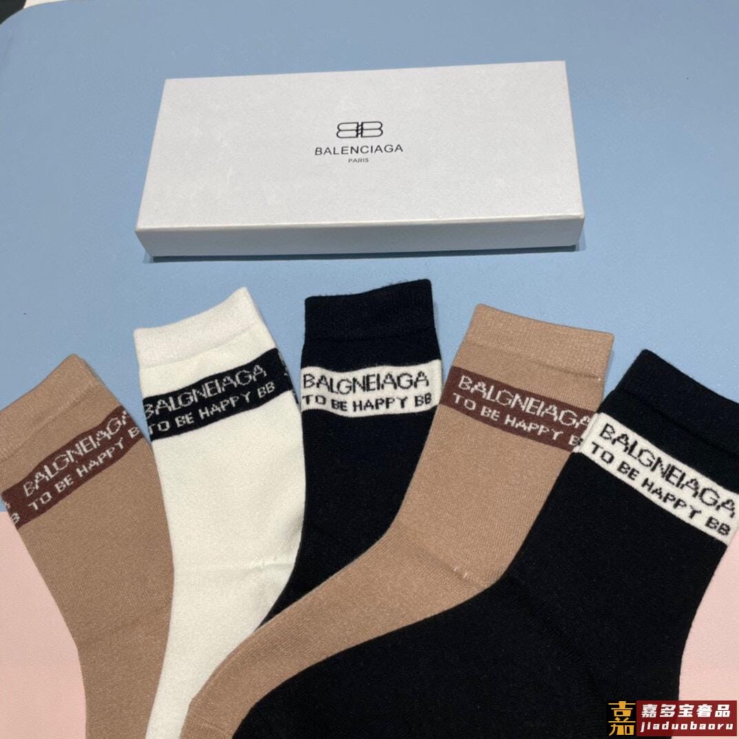 配包装一盒五双欧美羊毛大牌巴黎世家好看到爆炸欧美大牌高筒袜男